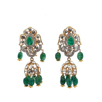 Emerald & Polki Diamond Jhumka Earrings