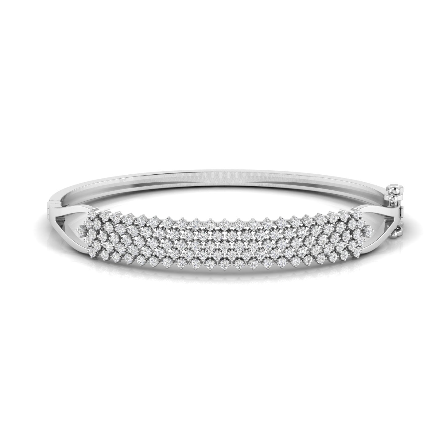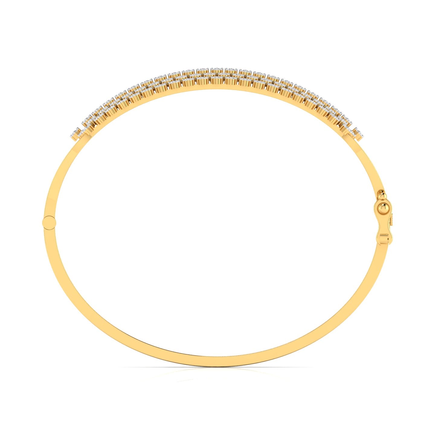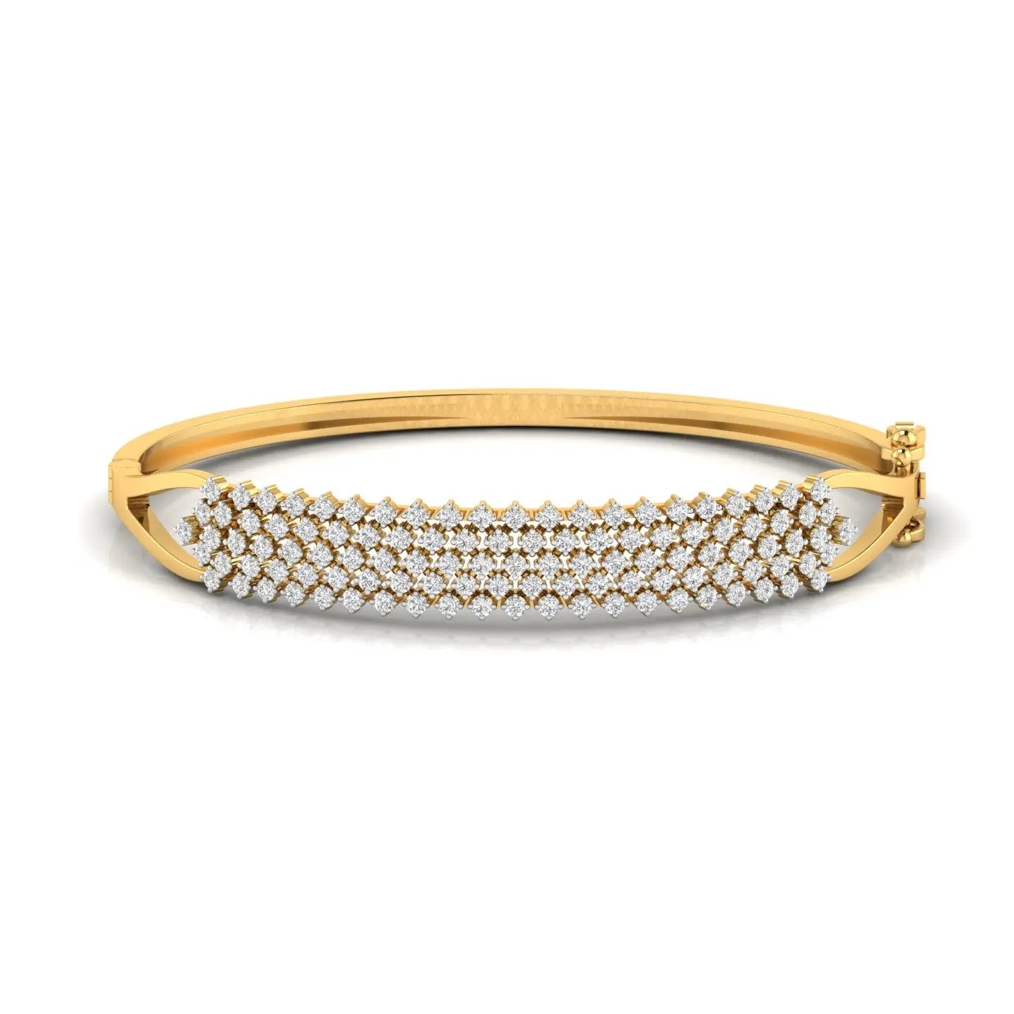 Elevate your elegance with this exquisite multi-row diamond bangle, meticulously crafted in gleaming gold. Featuring pavé-set diamonds, this statement piece adds a timeless sparkle that complements both traditional and contemporary styles. Perfect for any occasion, it enhances your ensemble with refined luxury and graceful sophistication. A stunning addition to any woman's fine jewellery collection.