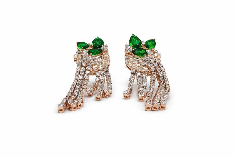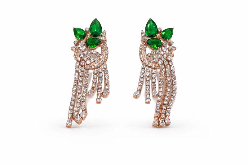 Exquisite Emerald & Diamond Tassel Drop Earrings - Pear Cut Green Gemstone Statement