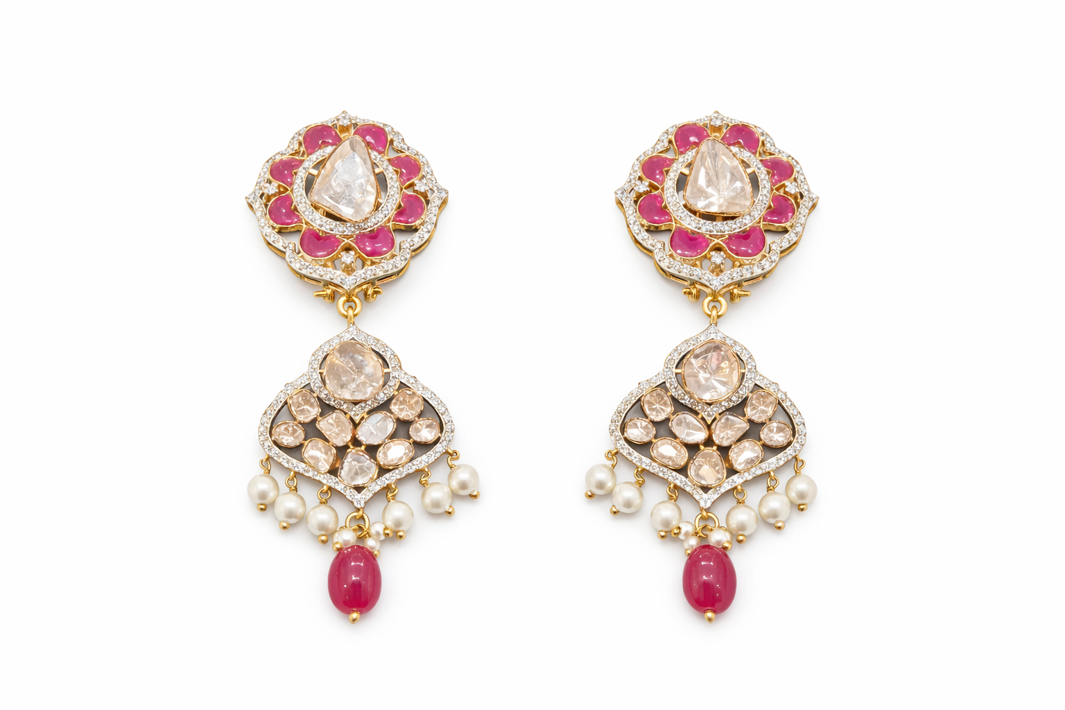 Exquisite Floral Polki Dimaond Dangle Earrings