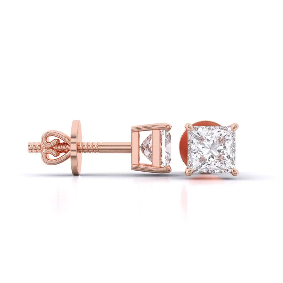 These 0.5 carat each princess-cut diamond studs feature lab grown diamonds that combine brilliance with ethical craftsmanship. Their sharp lines and radiant sparkle provide a modern, sophisticated accent, making them an exquisite choice for enhancing any outfit with understated luxury.