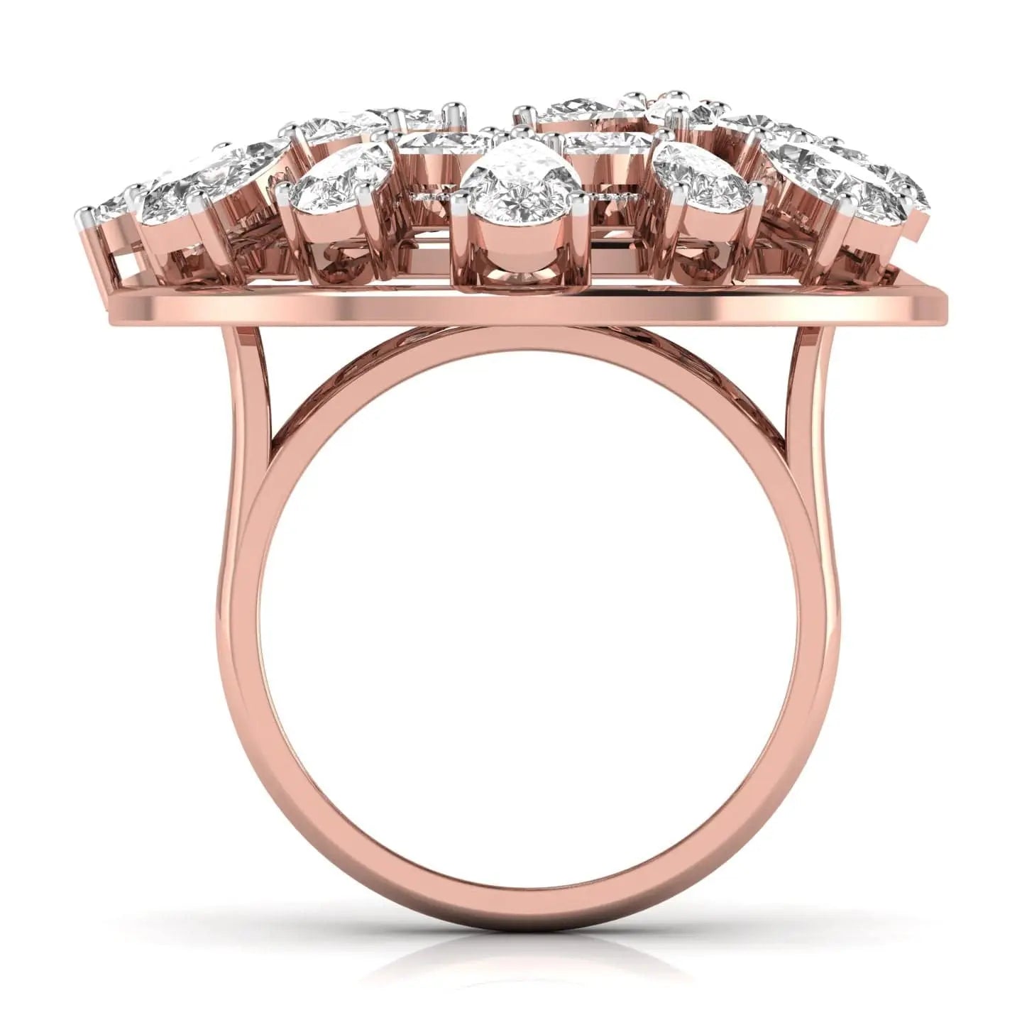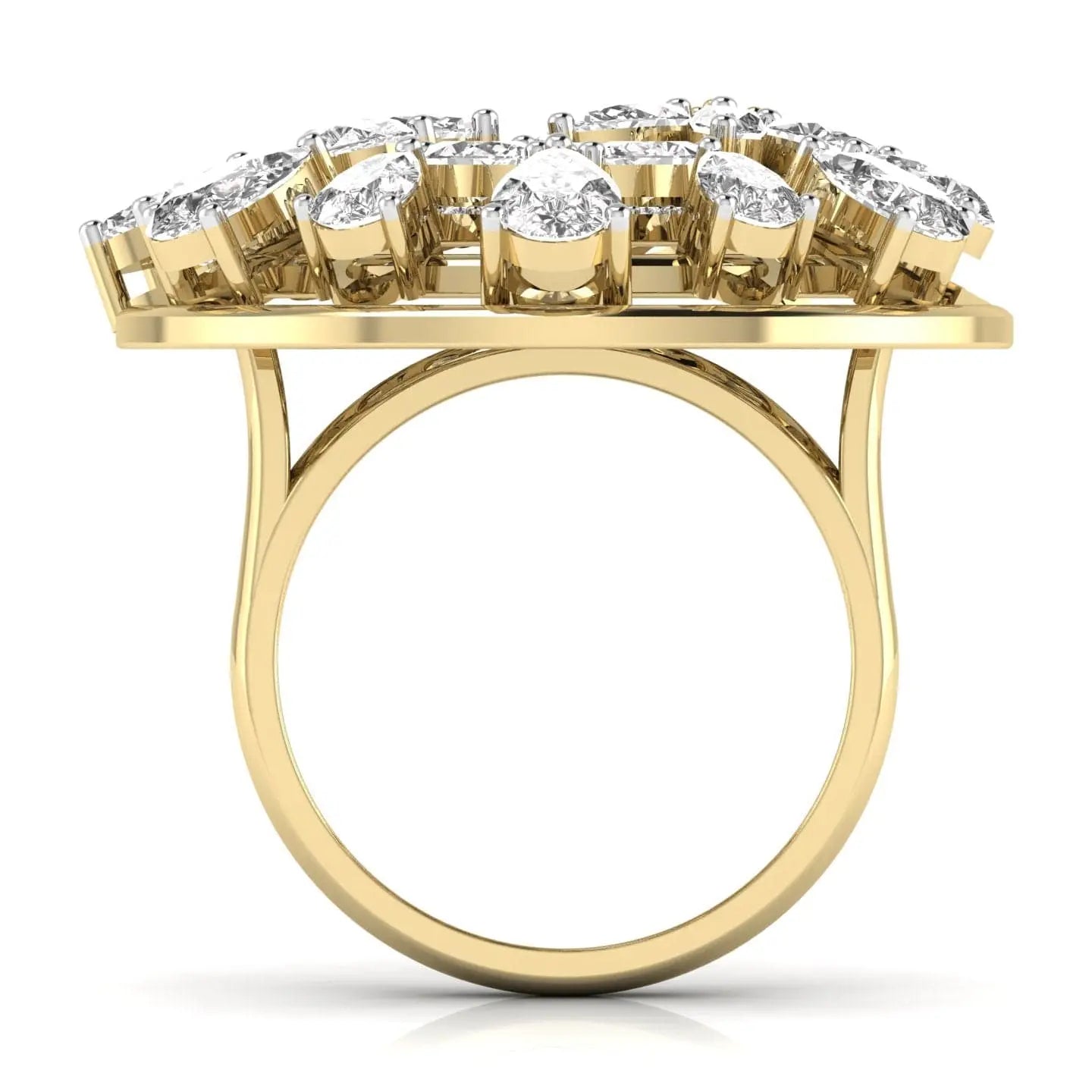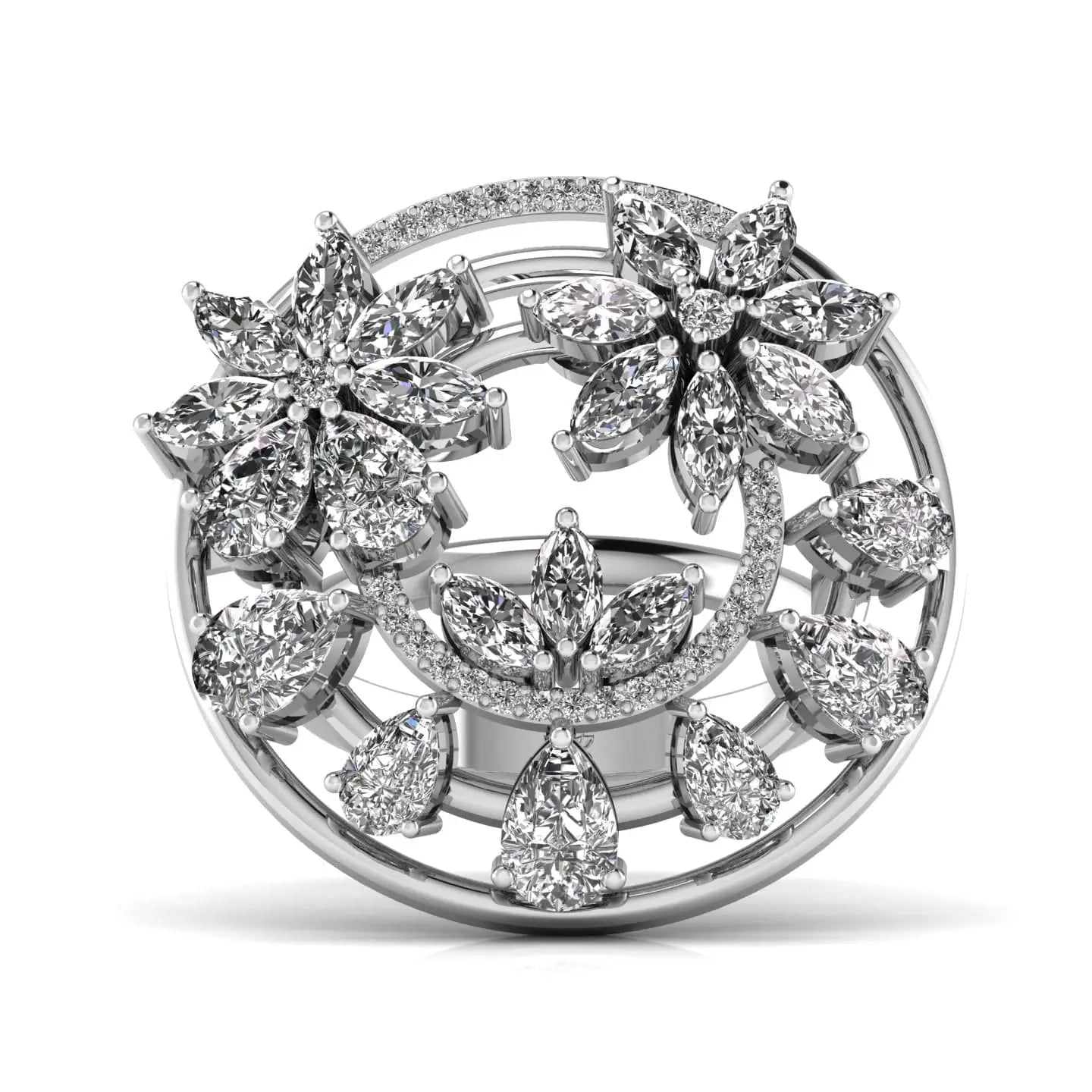 The Fancy Pear & Marquise Flower Ring showcases the brilliance of lab grown diamonds in an elegant floral arrangement. Crafted with precision, this ring offers a sophisticated blend of ethical luxury and timeless design, perfect for those seeking refined beauty with a conscious touch.