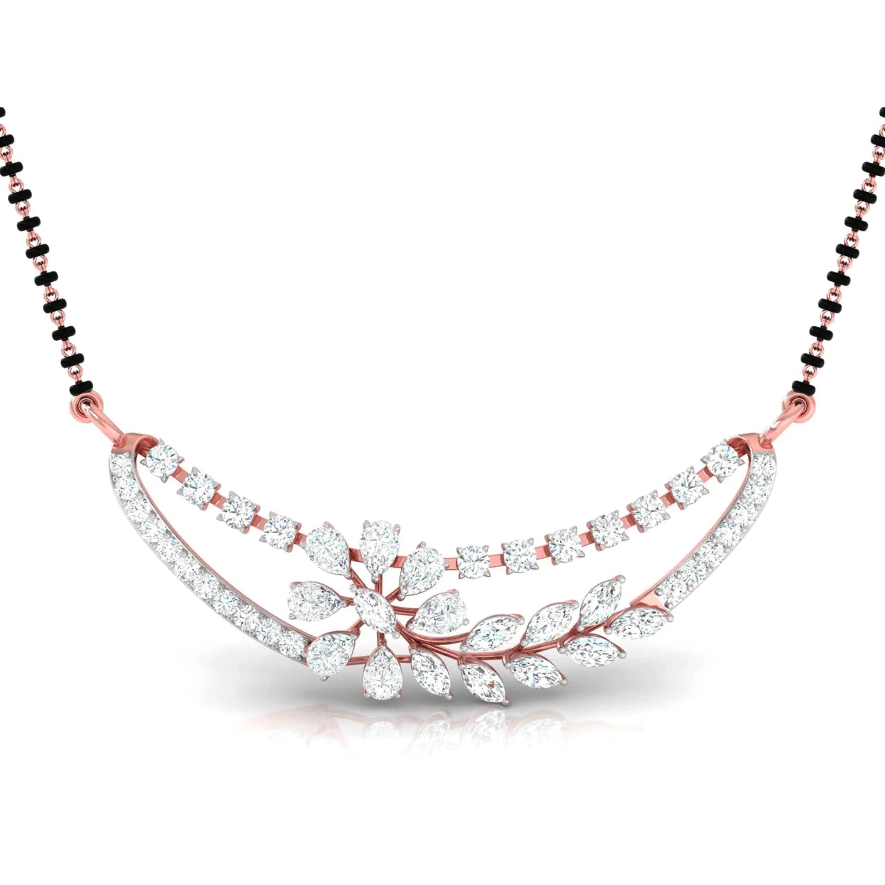 The Fancy & Round Diamond Crescent Moon Mangalsutra showcases the brilliance of lab grown diamonds in a refined crescent moon design. This sophisticated piece blends tradition with modern elegance, offering a sustainable and radiant symbol of love and commitment. Ideal for those who appreciate timeless beauty with an ethical touch.