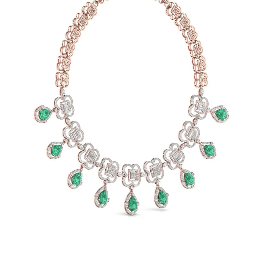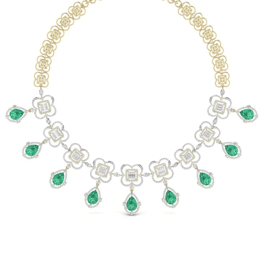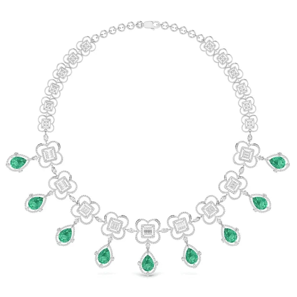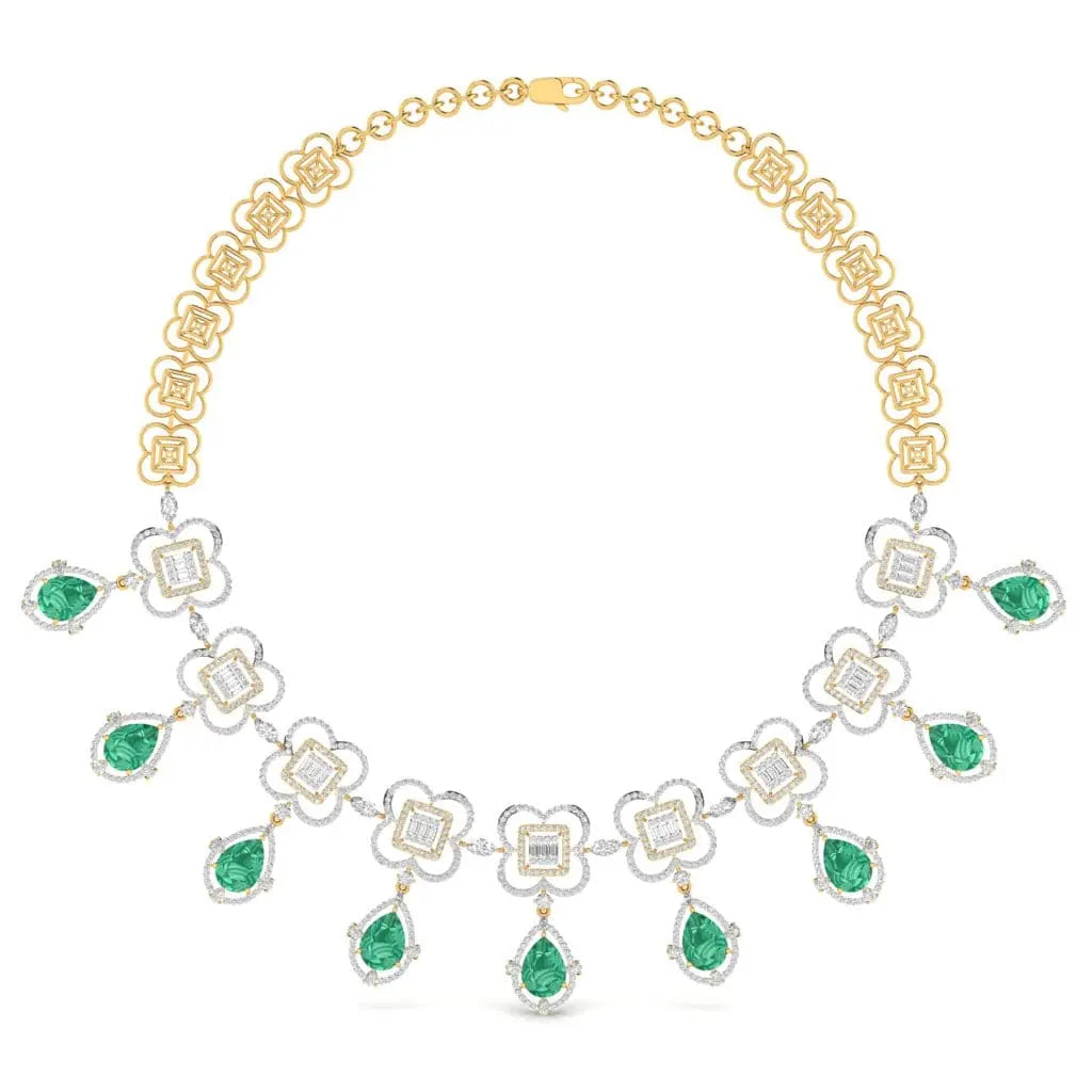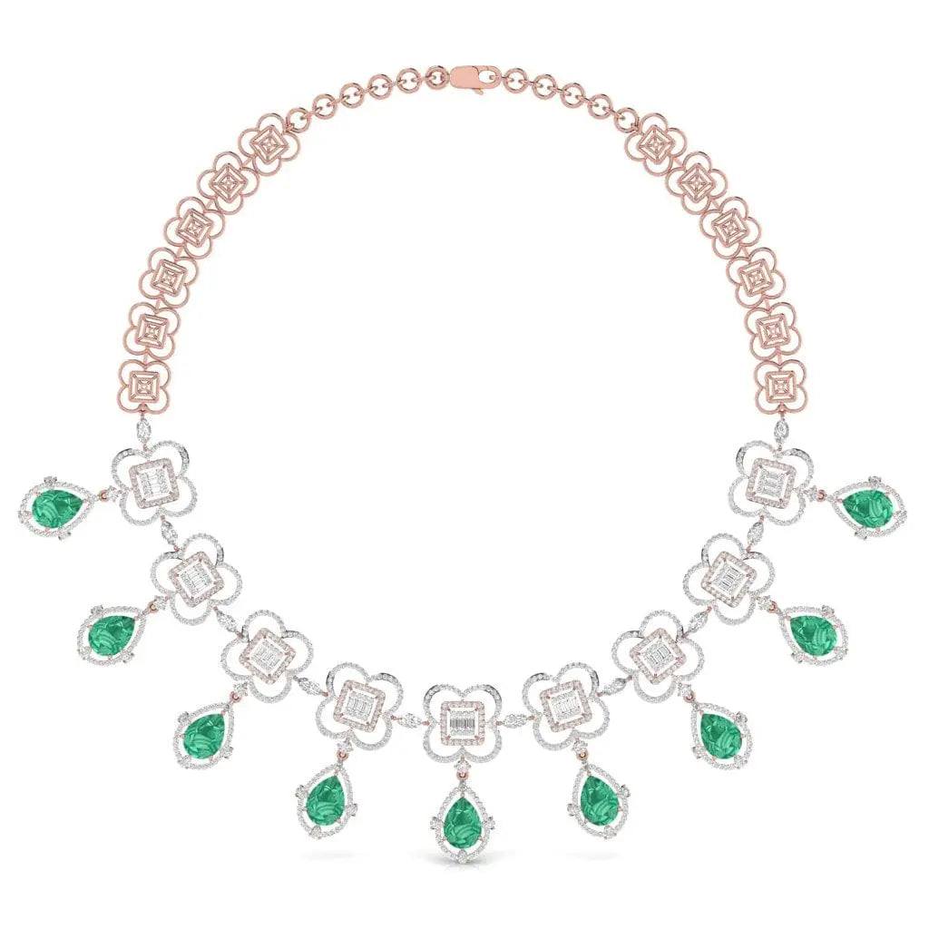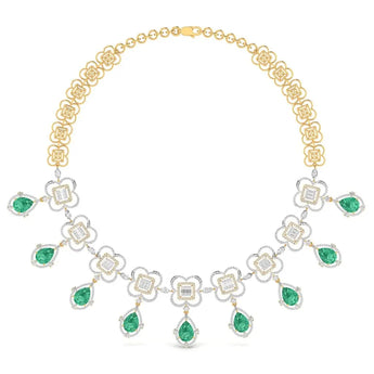 This elegant necklace features a refined arrangement of fancy and round-shaped lab grown diamonds, offering a brilliant sparkle with ethical craftsmanship. Its sophisticated design makes it a perfect statement piece for those who appreciate timeless beauty and responsible luxury.