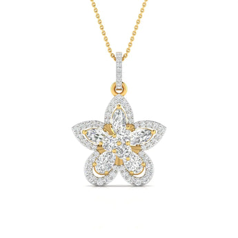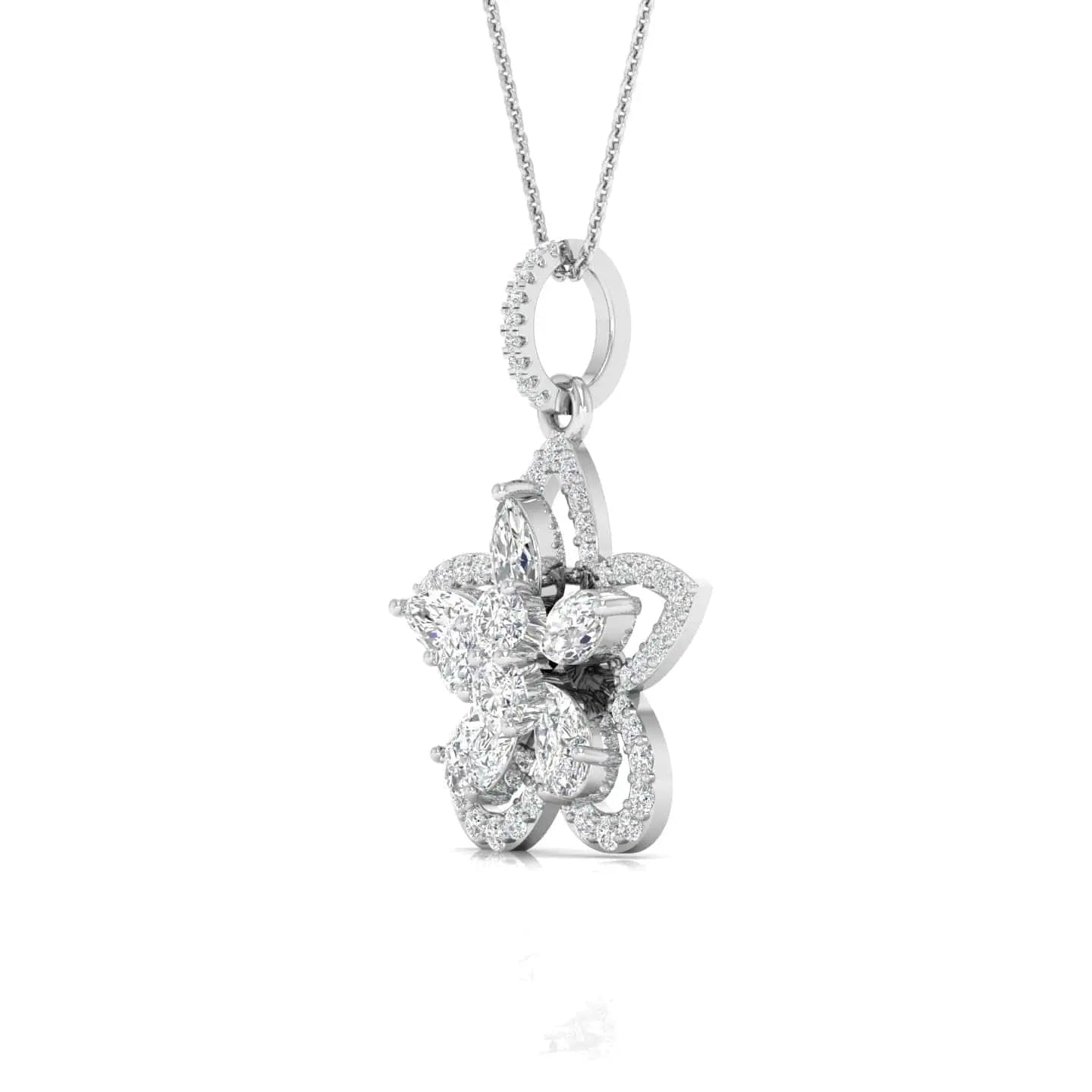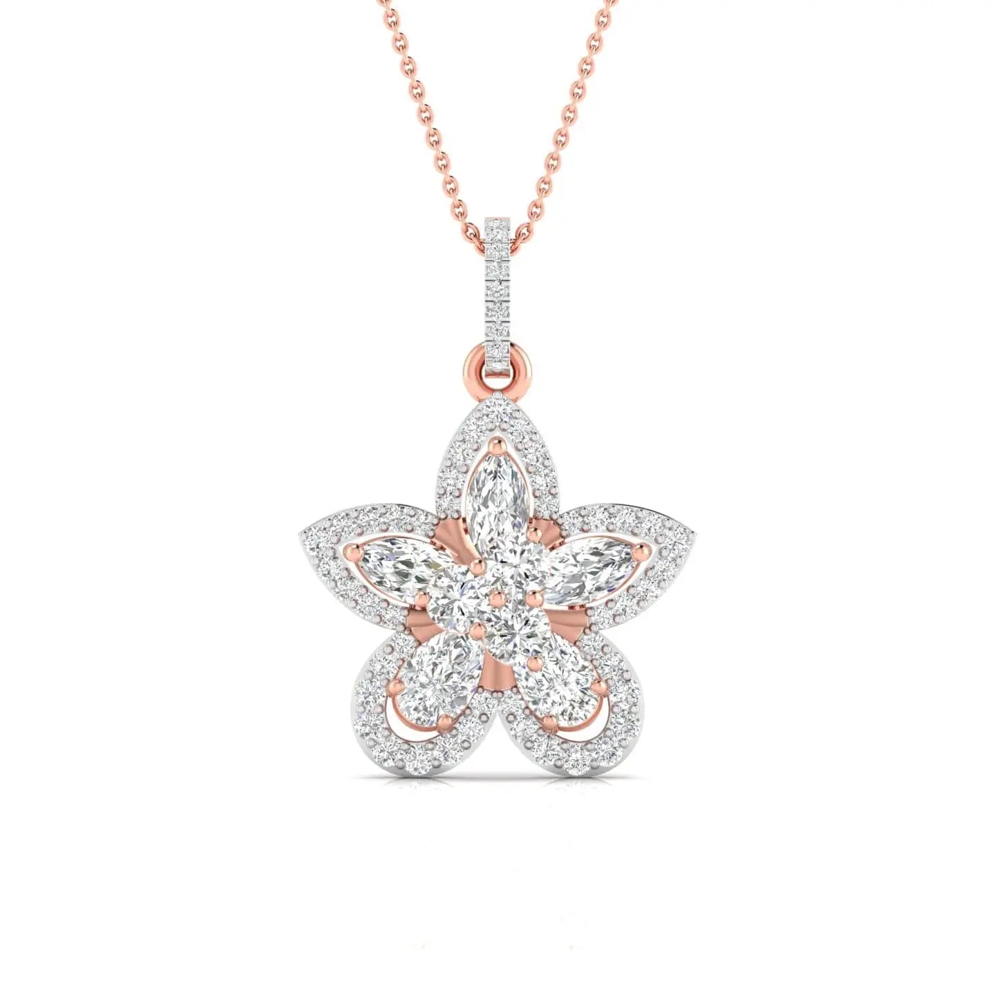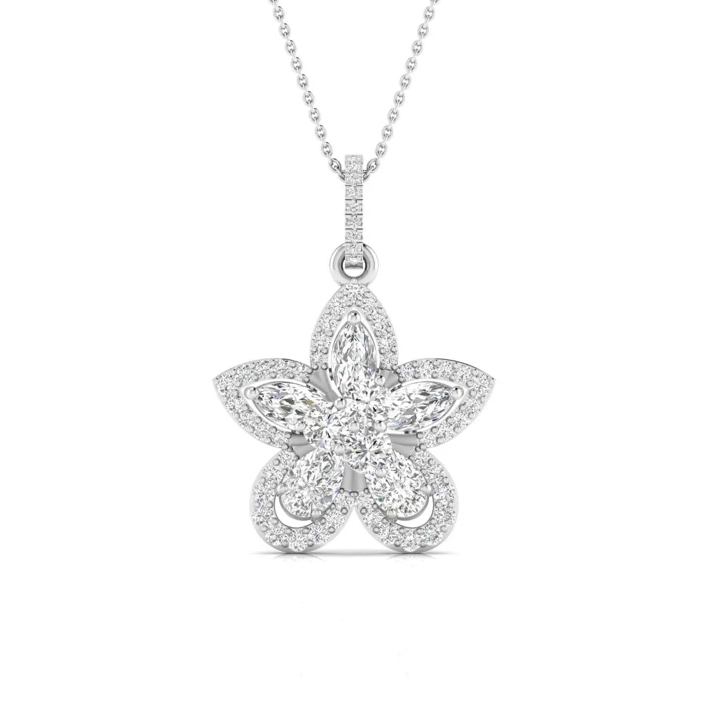 The Fancy & Round Cut Diamonds Blossom of Brilliance Pendant features ethically sourced lab grown diamonds expertly cut to maximize brilliance. Its elegant blossom design offers a timeless and sophisticated accessory, perfect for adding a subtle yet striking sparkle to any outfit. This pendant blends modern sustainability with classic beauty.