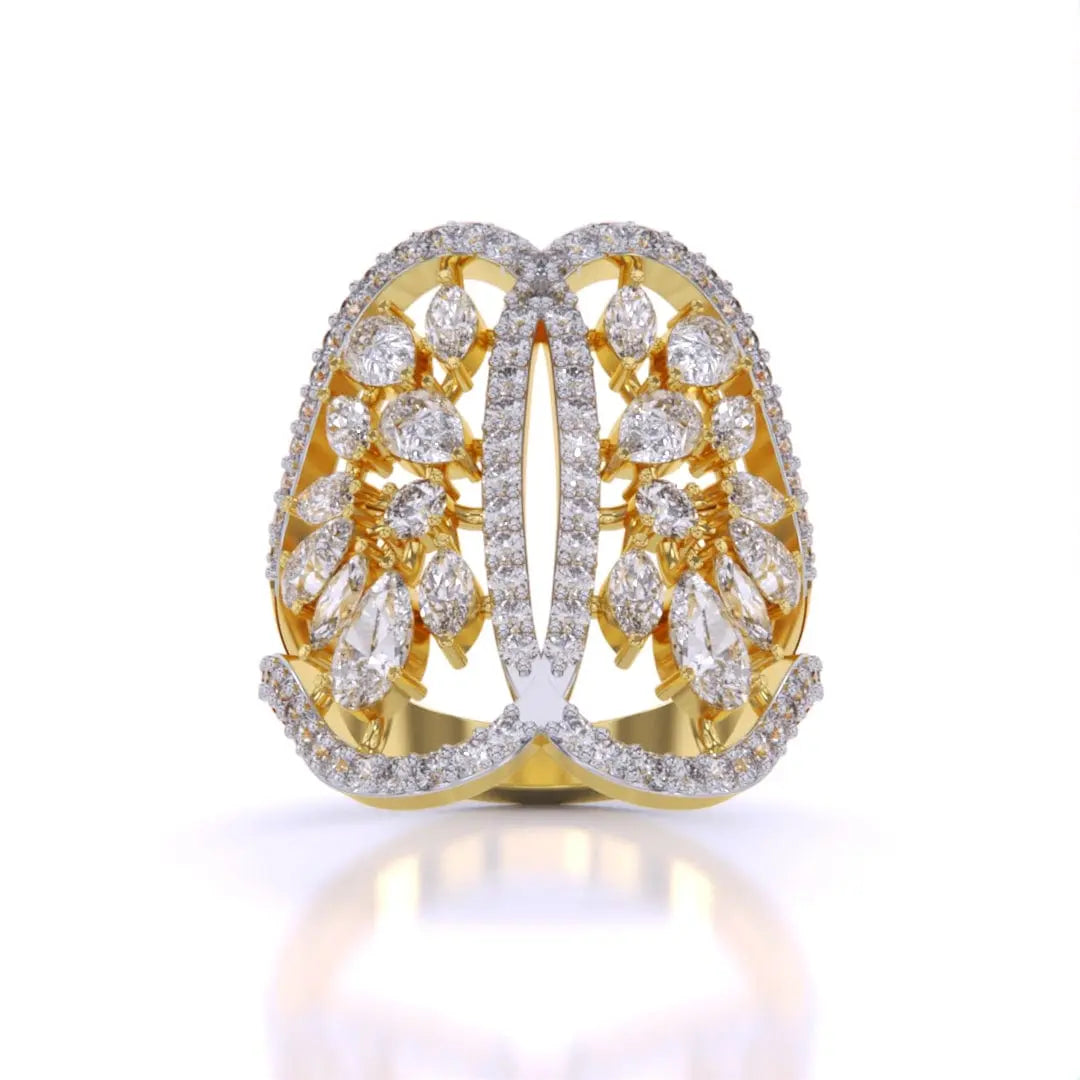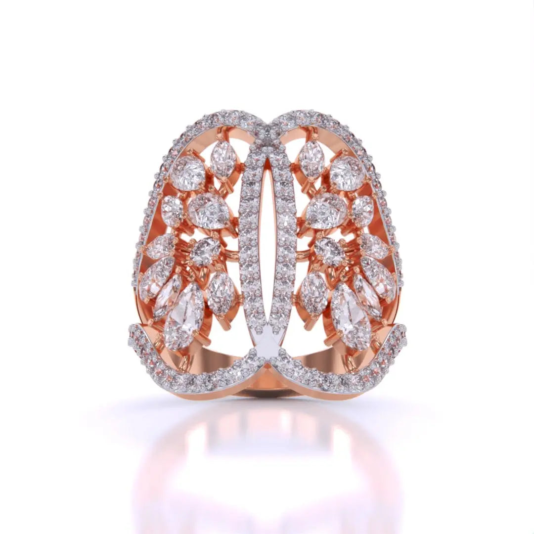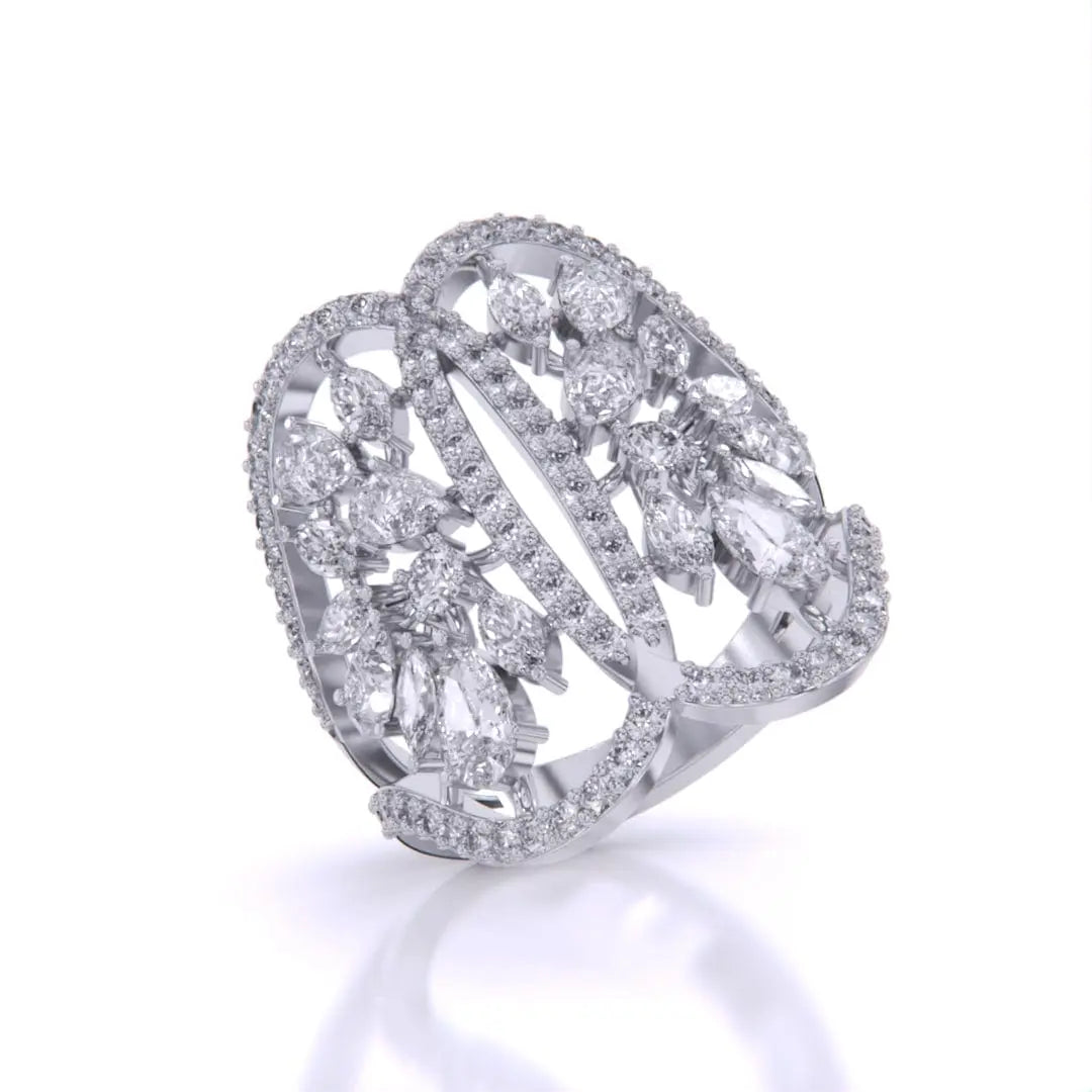 This lab grown diamond cocktail ring features a brilliant center stone, blending ethical craftsmanship with timeless elegance. Its refined design adds sophistication to any ensemble.