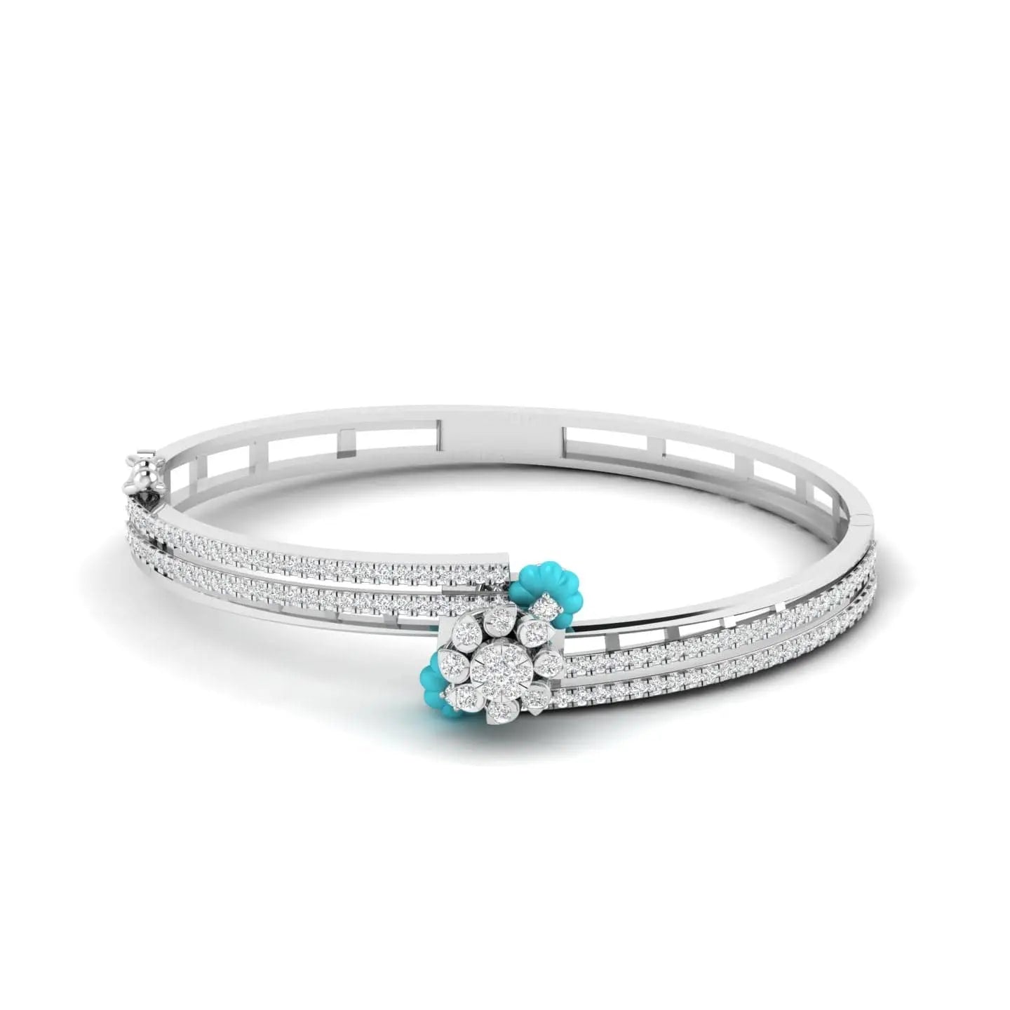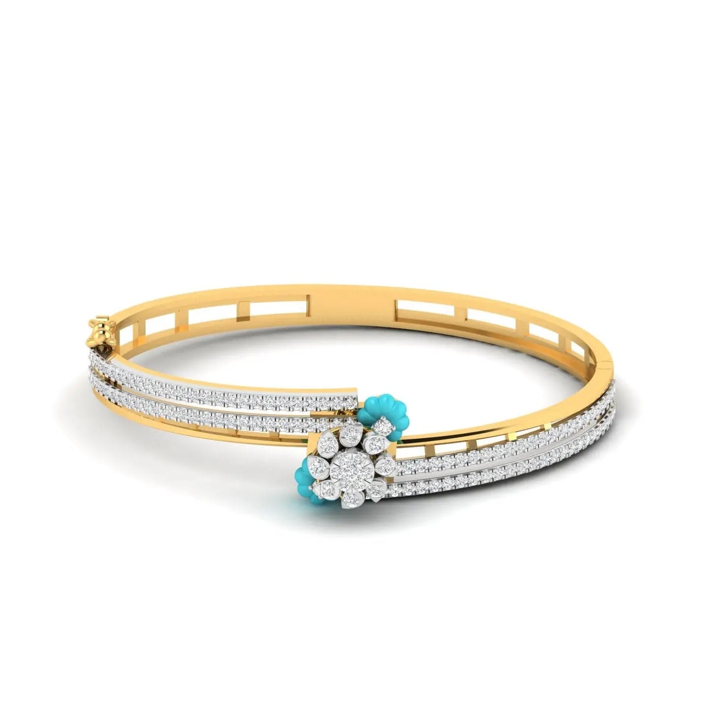 The Floral Blue Stone Kada Bracelet showcases the brilliance of lab grown diamonds paired with elegant blue stones in a refined floral design. This sophisticated bracelet offers a timeless accessory that enhances your style with ethical luxury and delicate craftsmanship, perfect for adding a subtle yet striking touch to any outfit.