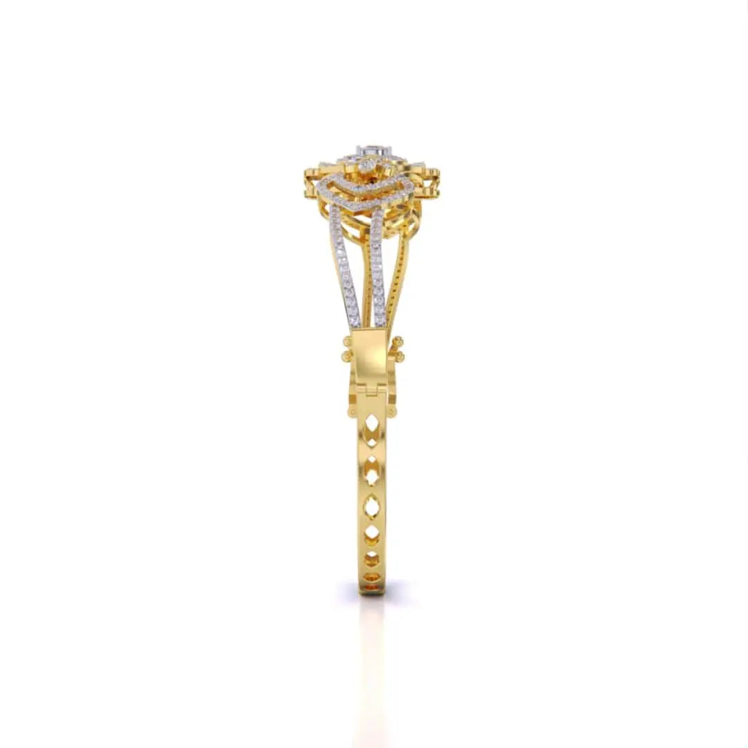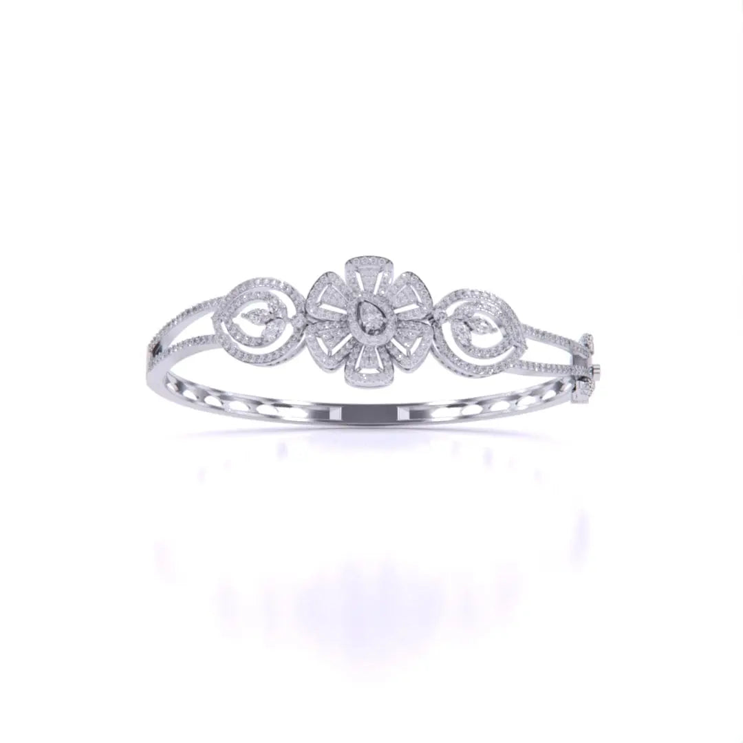This Floral Design Lab Grown Diamond Bangle combines ethical craftsmanship with exquisite style. Featuring sparkling lab grown diamonds arranged in an elegant floral pattern, it offers a sophisticated touch to any ensemble. Perfect for those who appreciate timeless beauty and sustainable luxury.