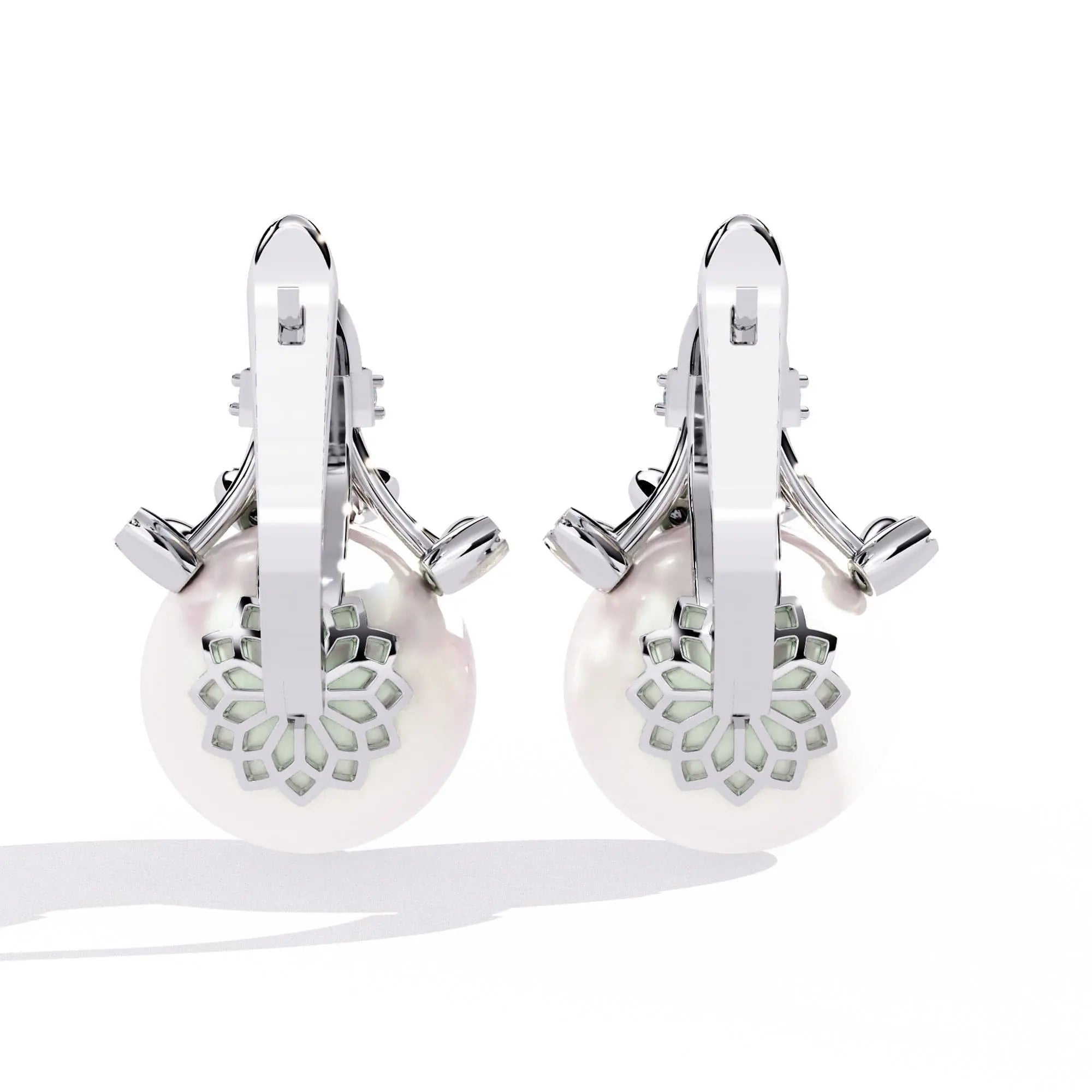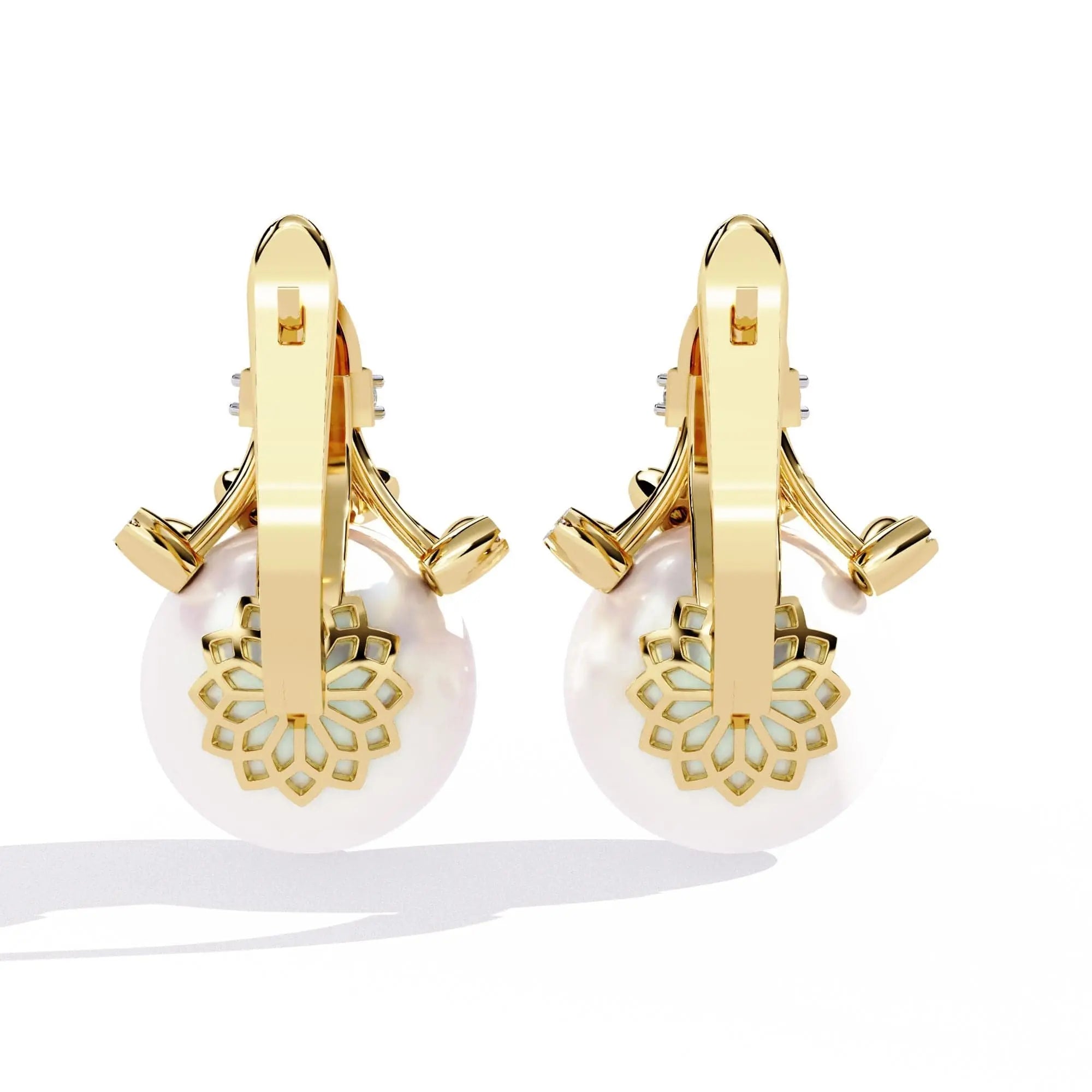 These Floral Pearl Lab Grown Diamond Drop Earrings blend the brilliance of ethical diamonds with the elegance of pearls. Featuring a delicate floral motif, they offer sustainable luxury and timeless charm, perfect for sophisticated gatherings and special occasions.