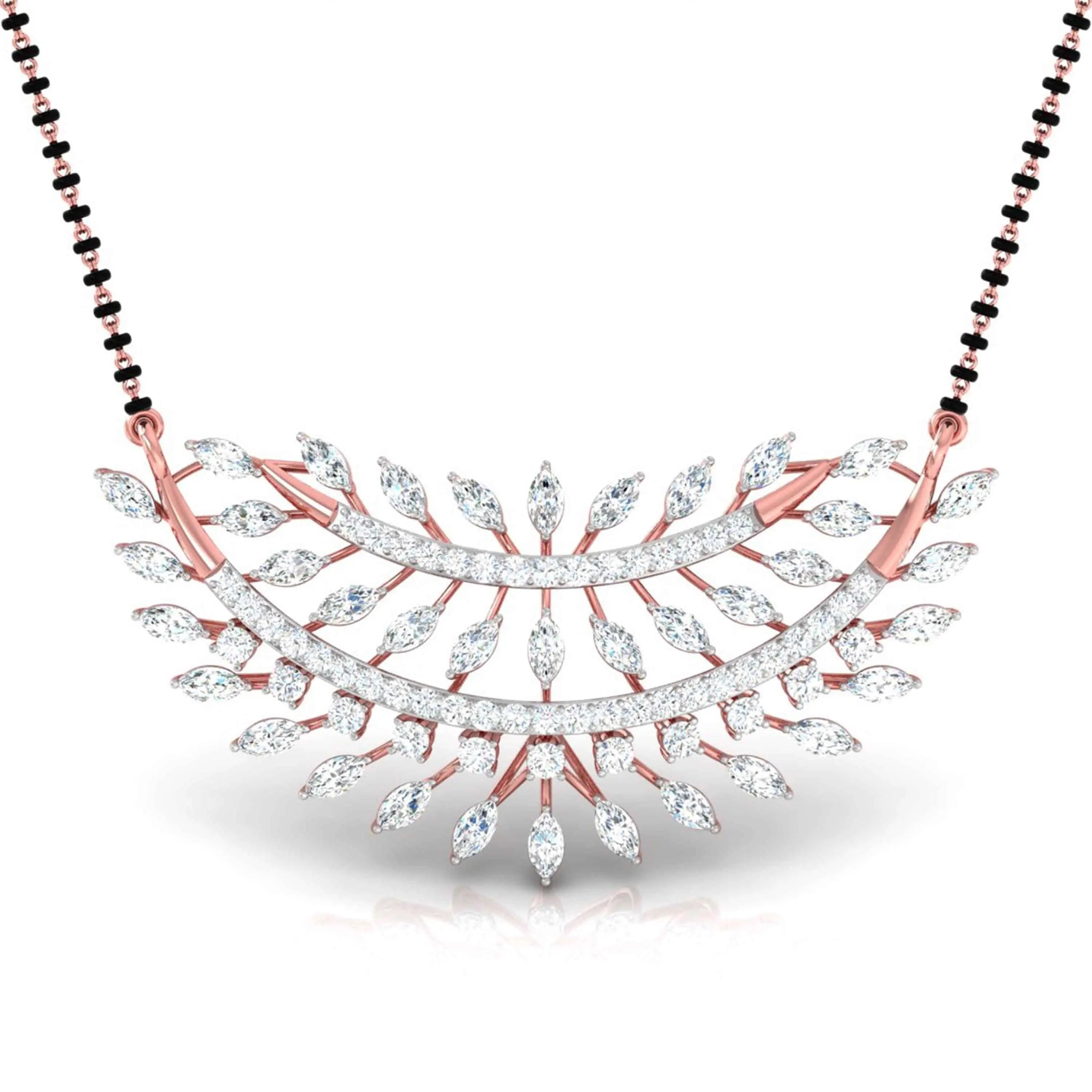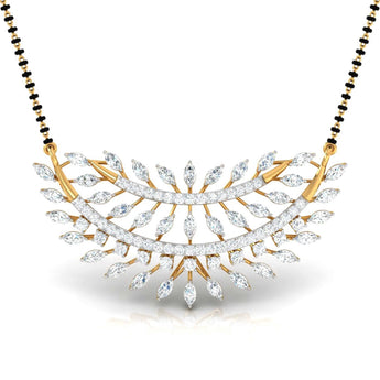 The Marquise & Round Diamond Foliage Mangalsutra showcases stunning lab grown diamonds arranged in an elegant foliage pattern. This sophisticated piece combines ethical craftsmanship with timeless design, offering a graceful symbol of love and commitment. Perfect for those who appreciate refined beauty and sustainable luxury.