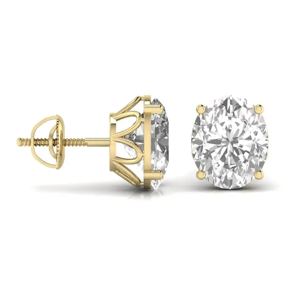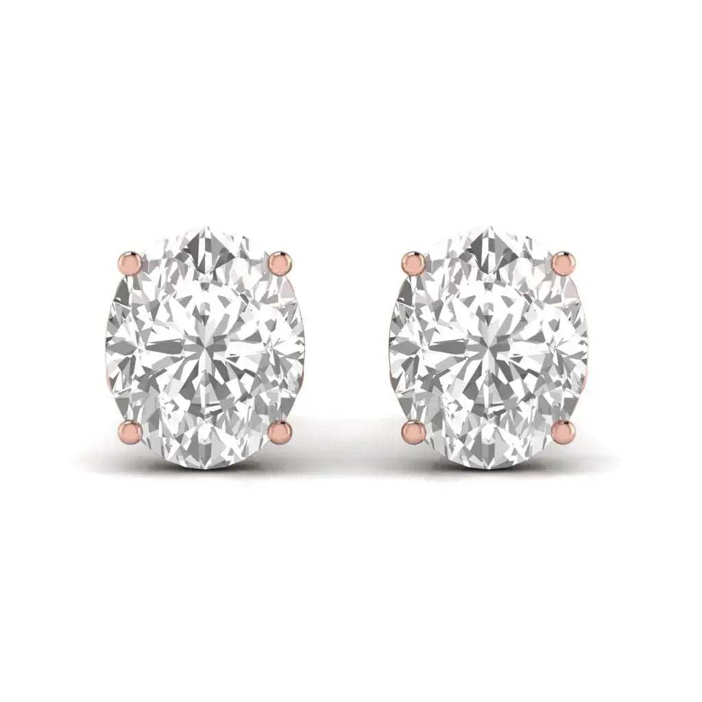 These 3 carat each oval-shaped solitaire earrings feature stunning lab grown diamonds that offer remarkable brilliance and a sophisticated appeal. Their classic design effortlessly adds a touch of elegance to any outfit, combining ethical luxury with timeless beauty. Perfect for those who appreciate quality and conscious craftsmanship.