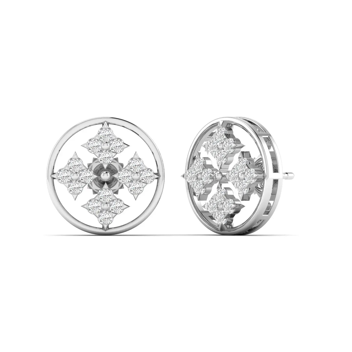 Geometric Floral Diamond Stud Earrings blend modern structure with delicate floral inspiration. Each earring features a graceful swirl of petal-shaped diamonds, creating a refined sparkle that enhances any look. Perfect for adding a subtle yet elegant touch, they bring a sophisticated charm suitable for both day and evening wear.