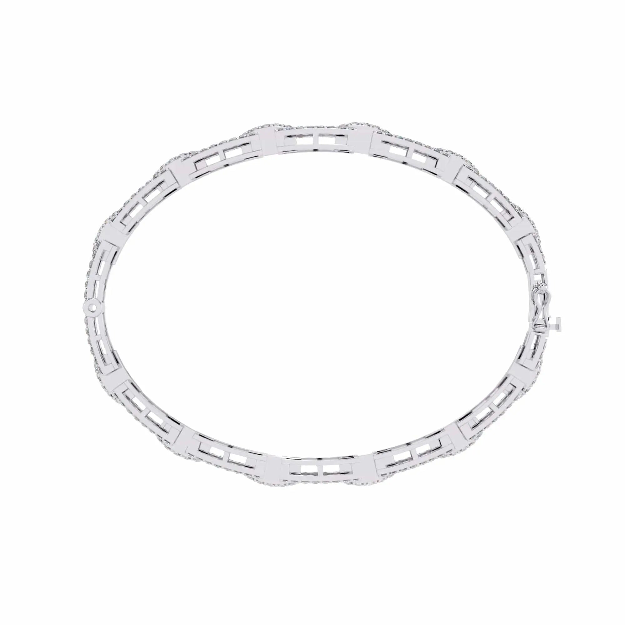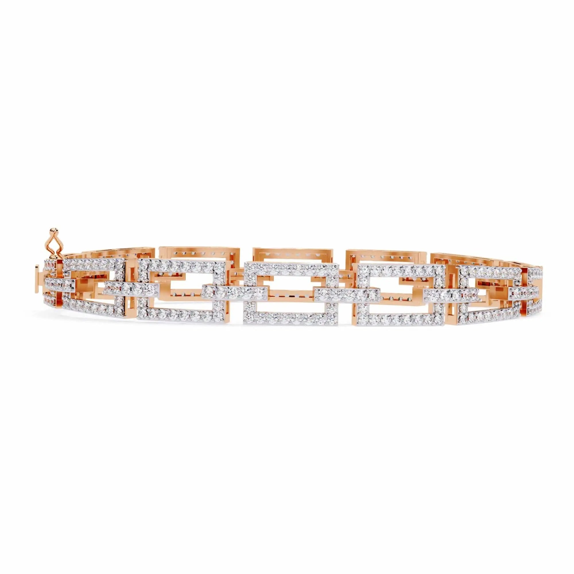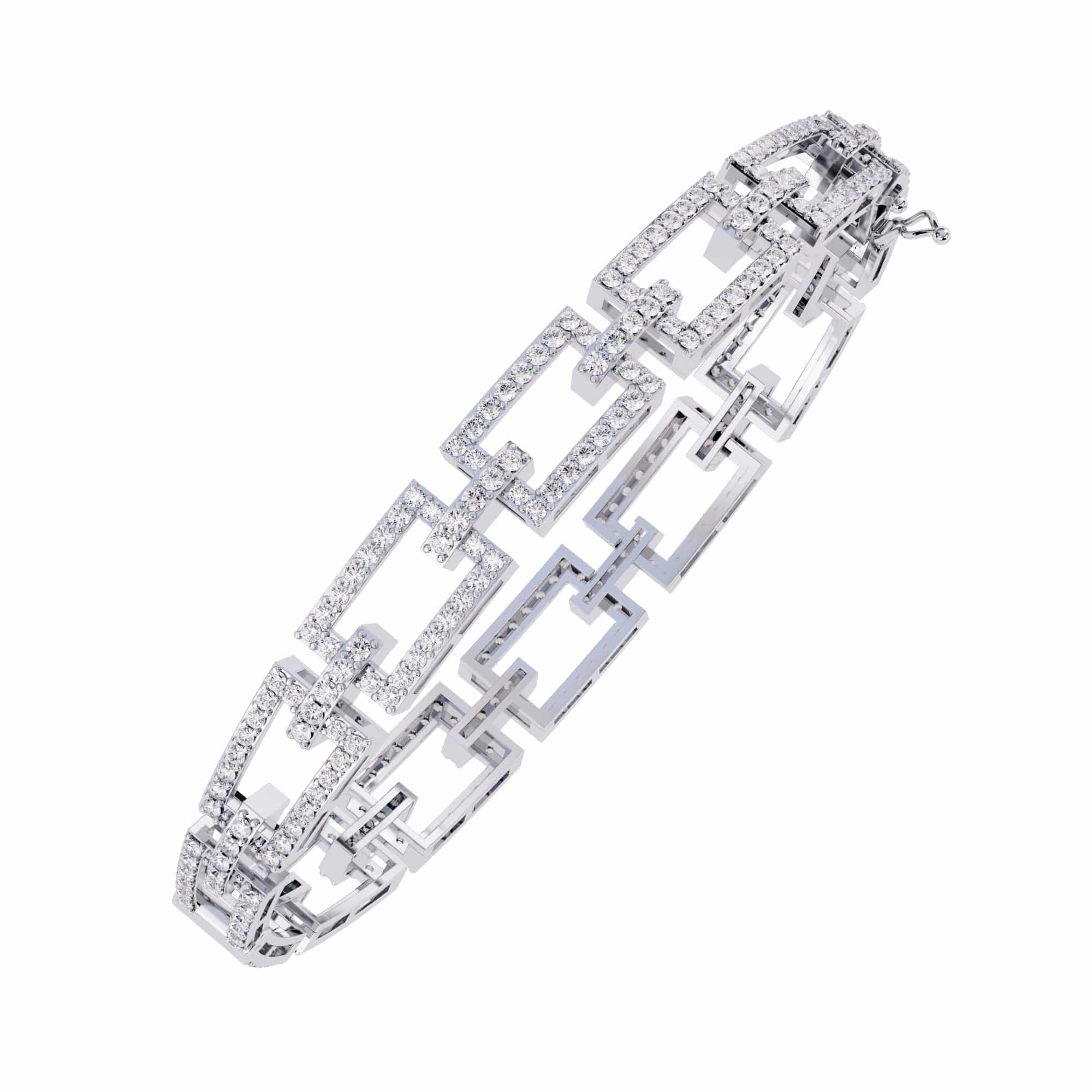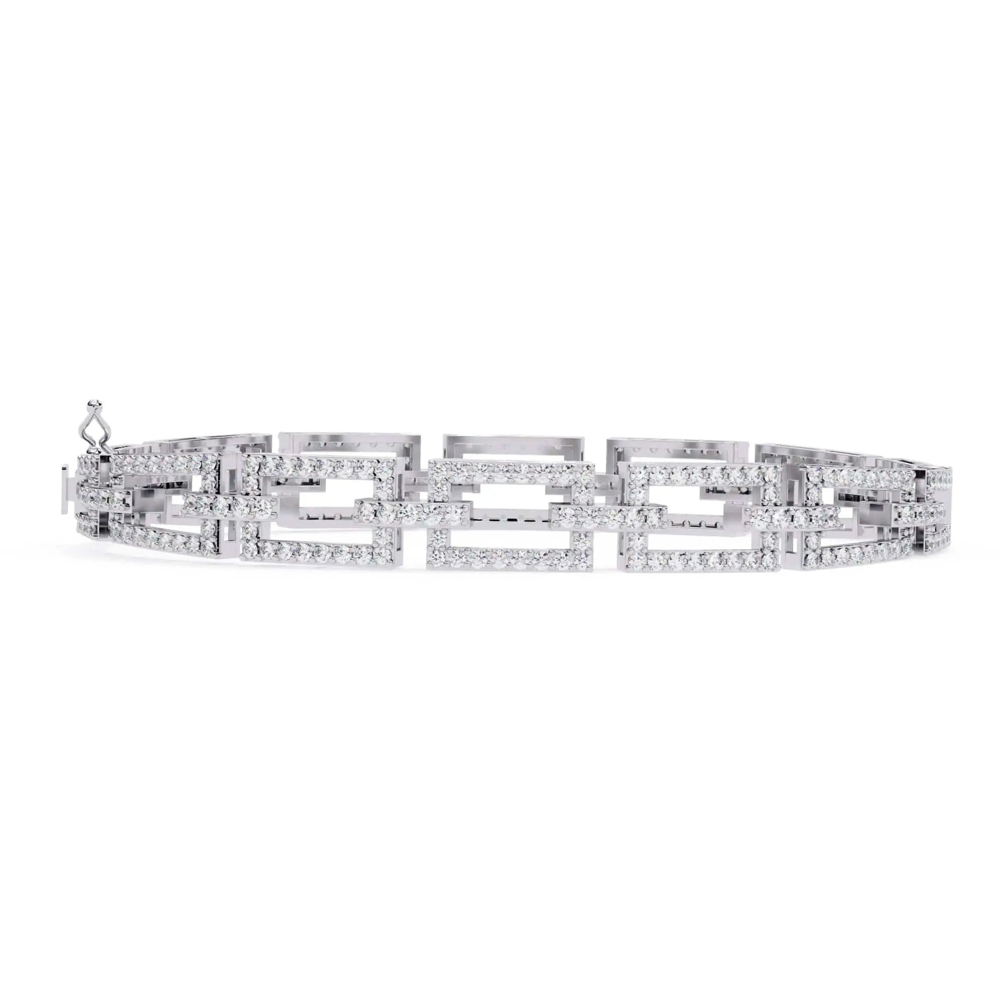 This Geometric Lab Grown Diamond Link Bracelet features brilliant lab-created diamonds in a sleek, modern design. With clean lines and refined craftsmanship, it offers a sophisticated look for any outfit. A perfect choice for those who value contemporary elegance and ethical luxury.