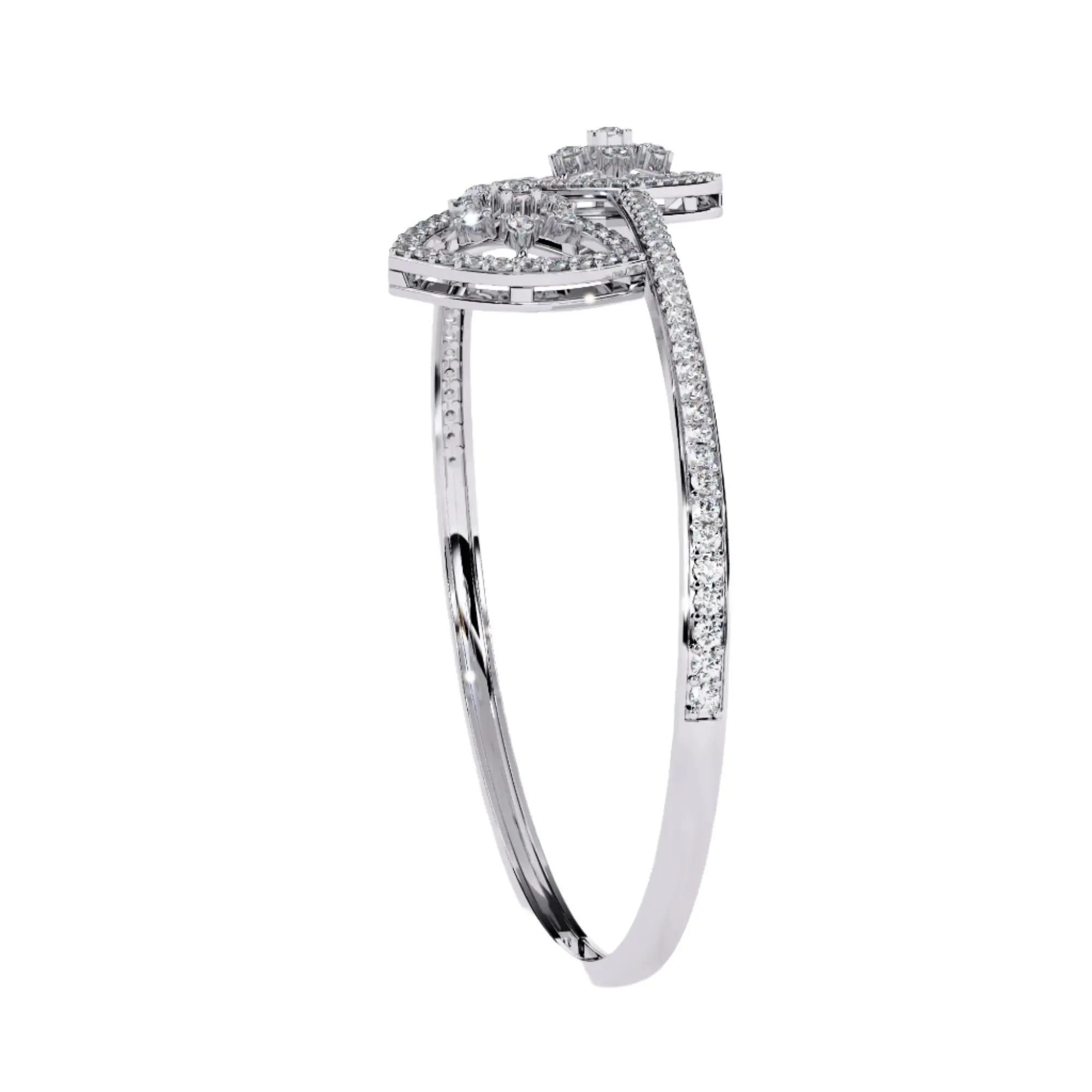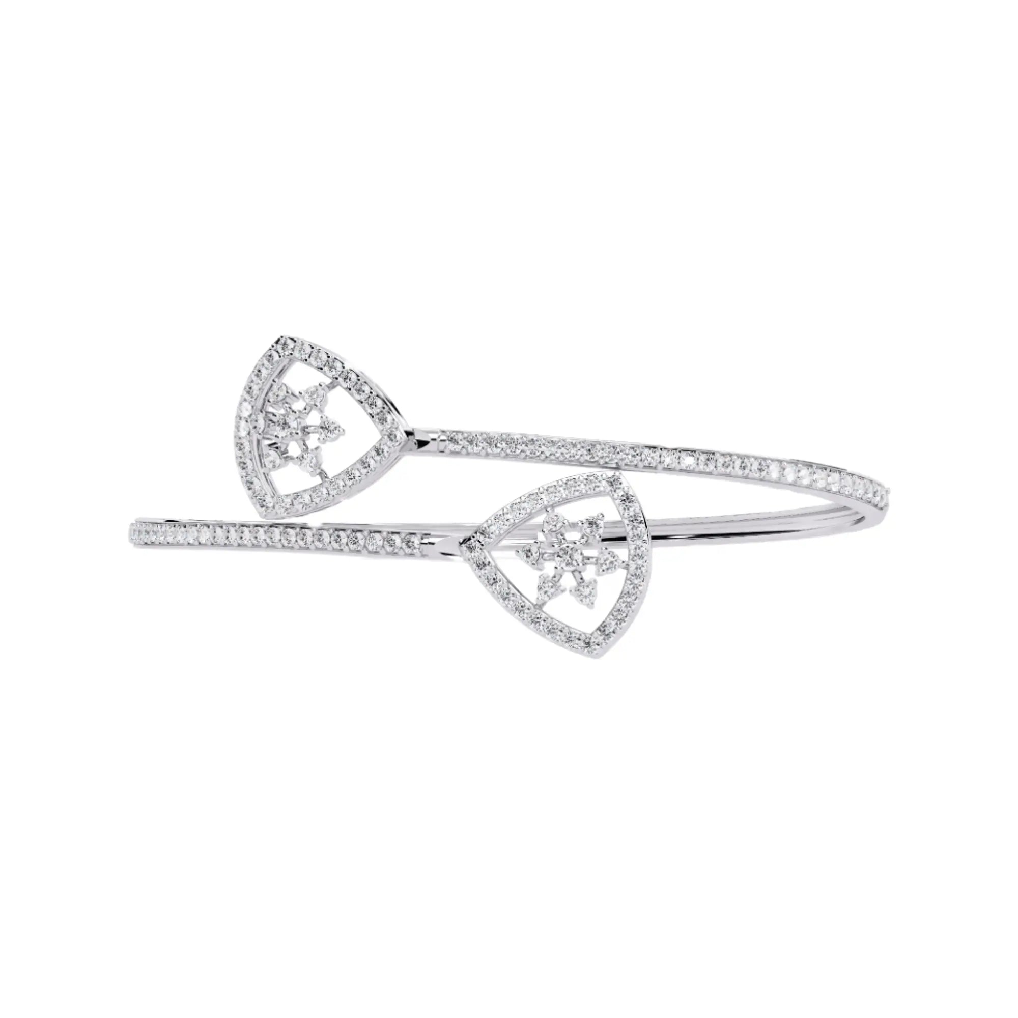 Elevate your elegance with this Geometric Open Diamond Bangle, featuring meticulously crafted lab grown diamonds that offer brilliance with a sustainable touch. Its modern open design adds a refined edge to any ensemble, making it a timeless accessory for sophisticated occasions. Perfectly balanced to highlight your style while embracing ethical luxury.