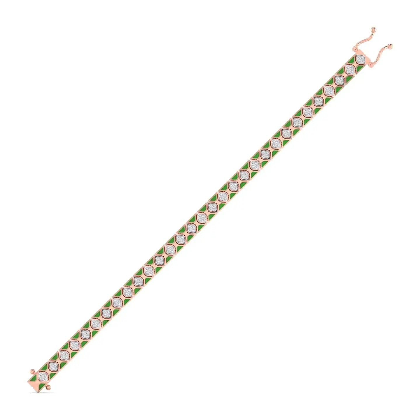 This Geometric Oval Diamond Bangle showcases the brilliance of lab grown diamonds set in a sleek, modern design. Its elegant oval shape and precise craftsmanship offer a sophisticated accessory that complements any ensemble, combining sustainable luxury with timeless style. Perfect for those who appreciate refined beauty and conscious choices.