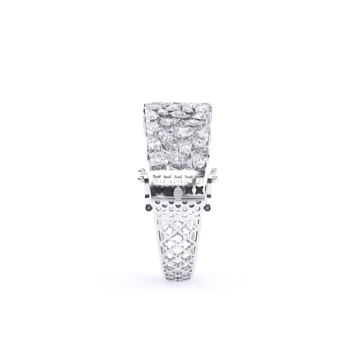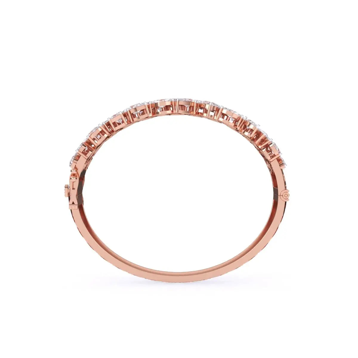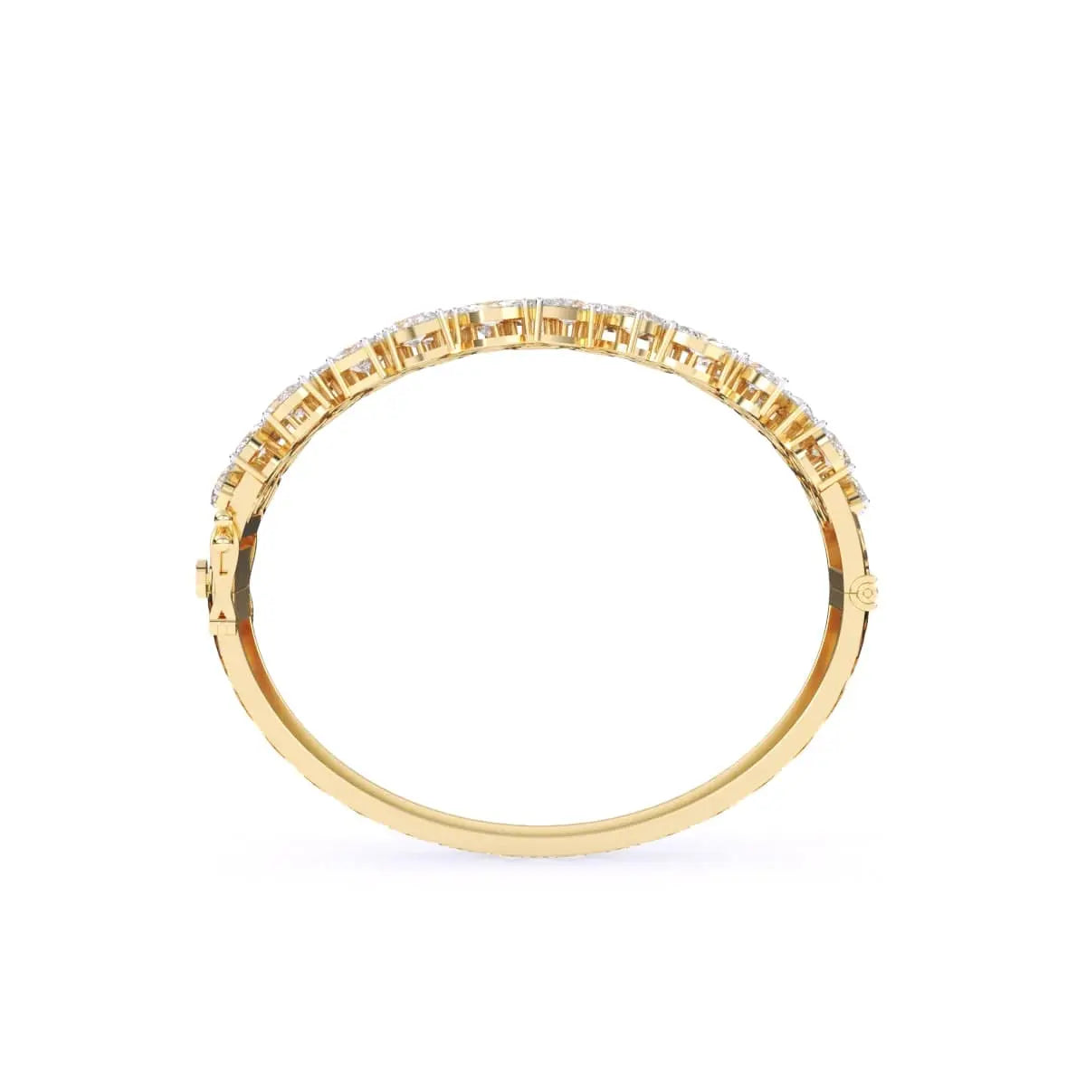 The Glorious Floral Diamond Bangle showcases the brilliance of lab grown diamonds set in an elegant floral motif. This sophisticated piece offers a sustainable alternative without compromising on sparkle, making it an exquisite choice for those who appreciate refined beauty and ethical luxury. Perfect for adding a touch of grace to any occasion.