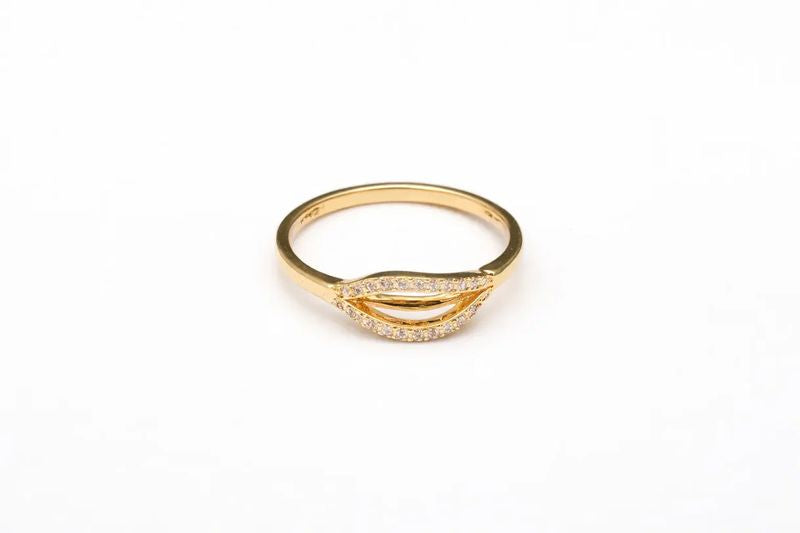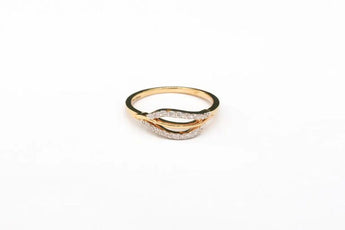 Gold Diamond Leaf Bypass Ring with Pave Accents