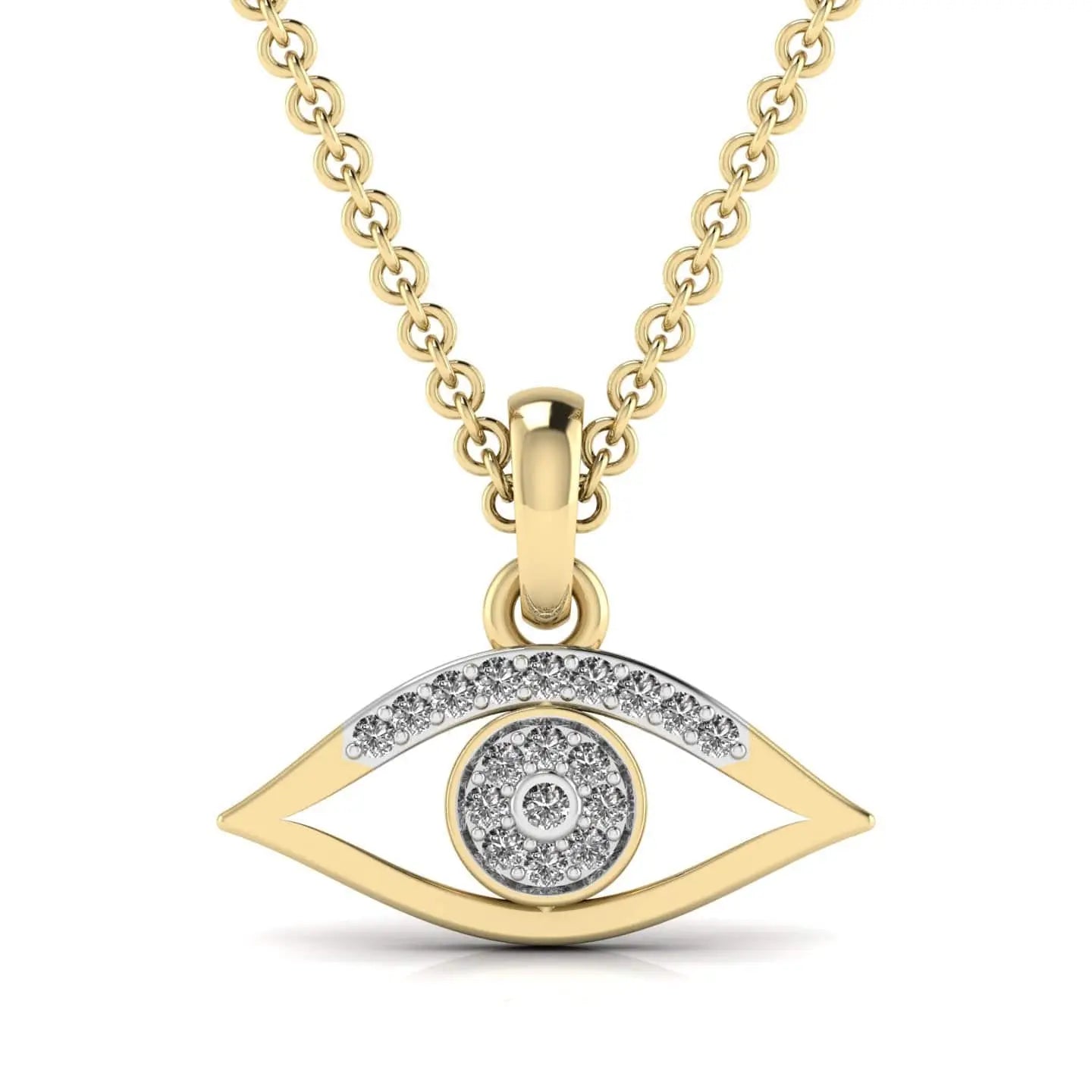 This Solid Gold Evil Eye Pendant features a stunning lab grown diamond, combining ethical brilliance with timeless elegance. Crafted from premium solid gold, it offers a sophisticated design that symbolizes protection while adding a refined sparkle to your look. Perfect for those who appreciate meaningful luxury and modern craftsmanship.