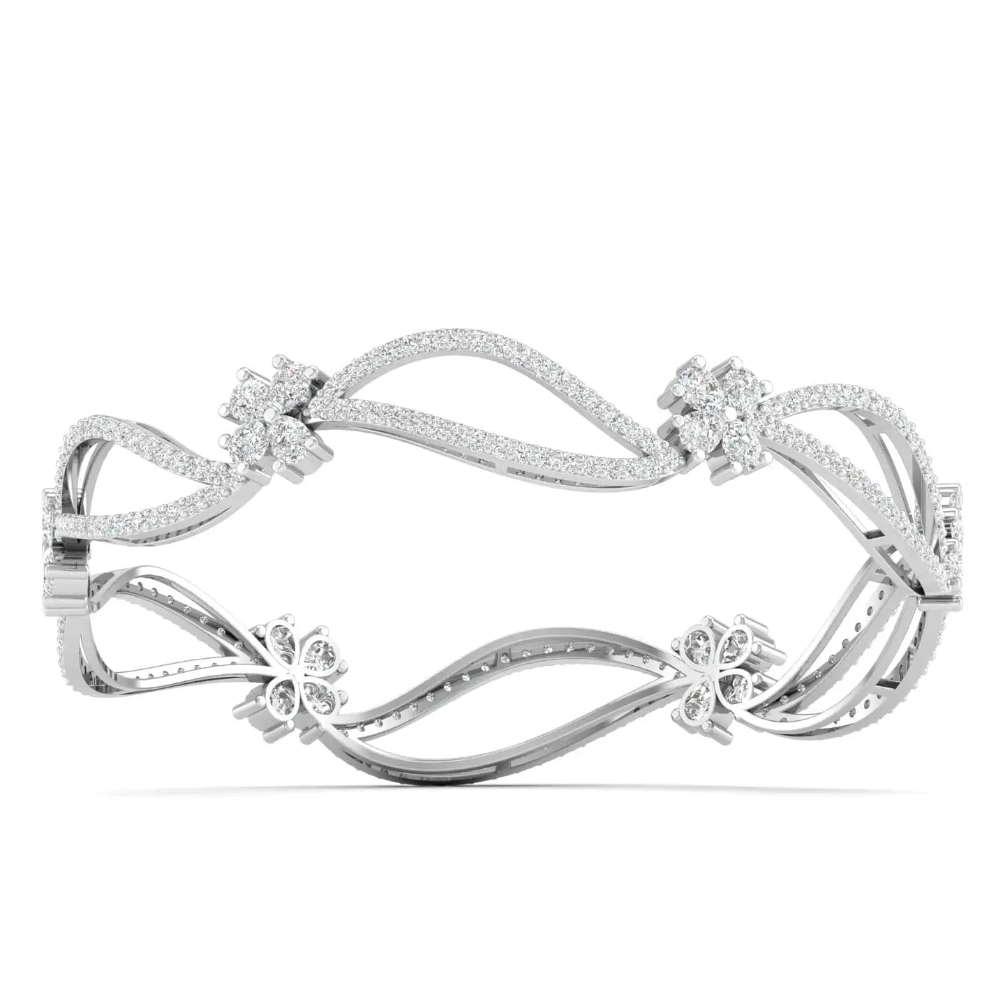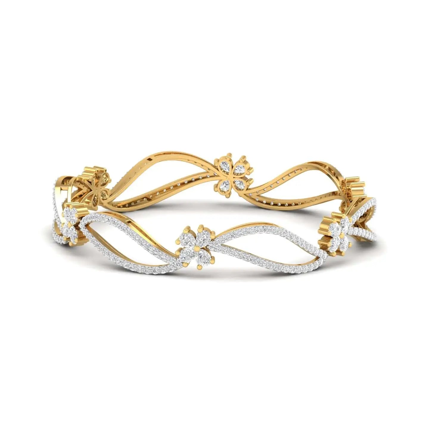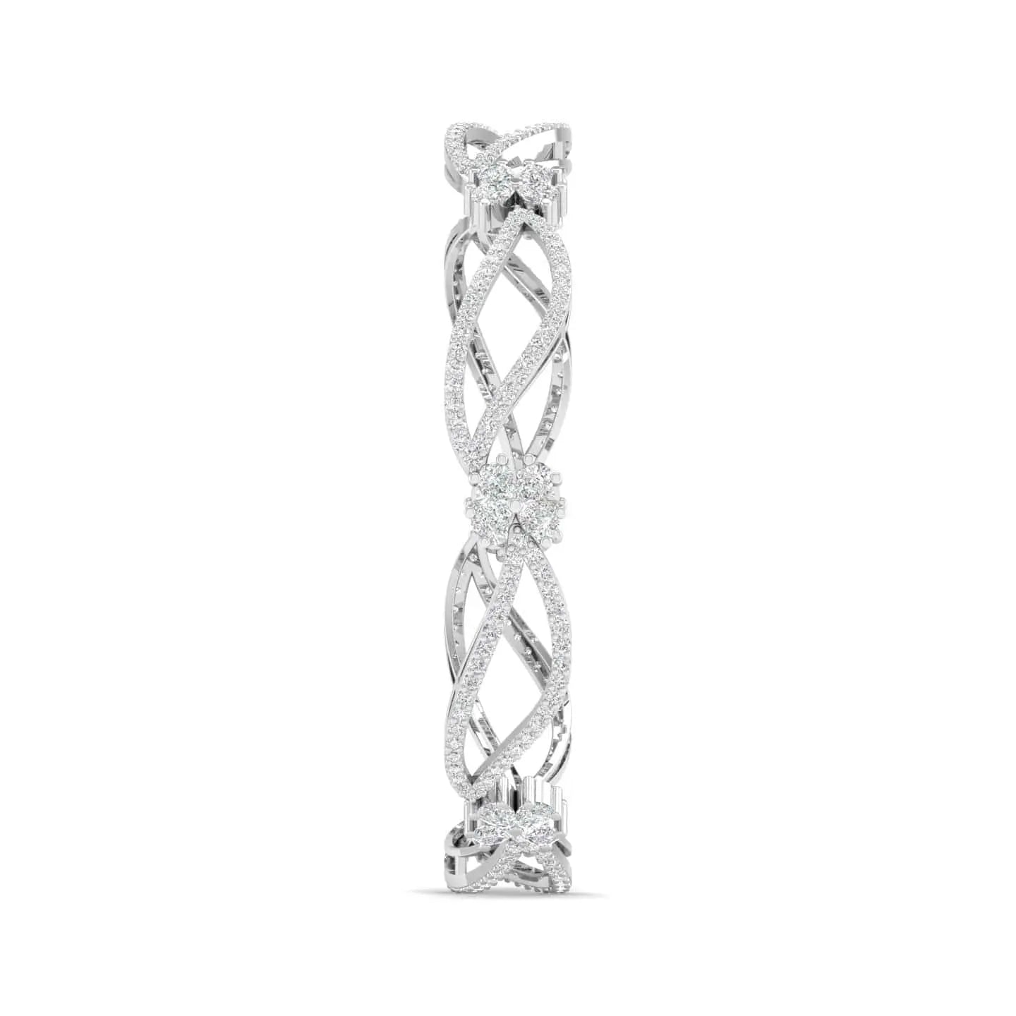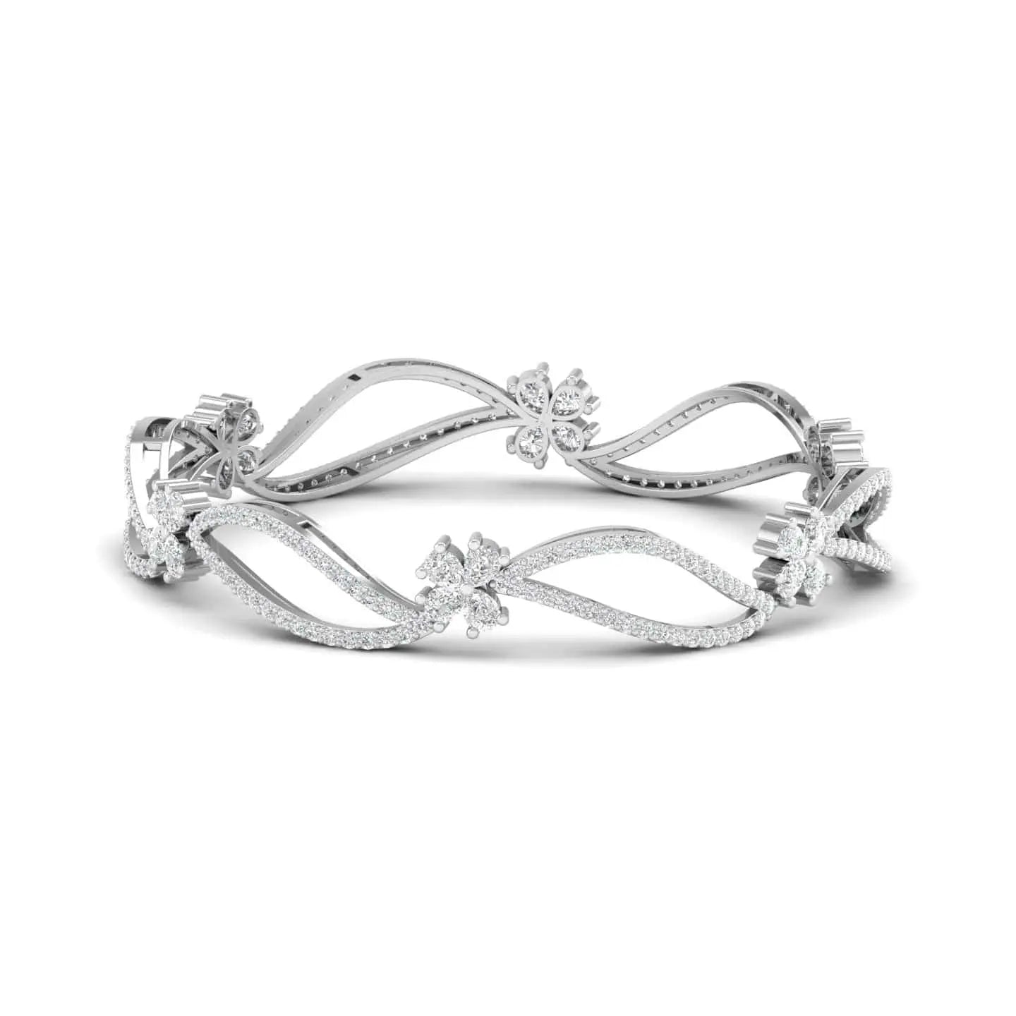 The Eternal Bloom Floral Diamond Bangle showcases the brilliance of lab grown diamonds set in an elegant floral design. This sophisticated piece combines ethical craftsmanship with timeless beauty, perfect for adding a refined touch to any ensemble. Its delicate artistry and sustainable sparkle make it an exquisite choice for those who appreciate both style and responsibility.
