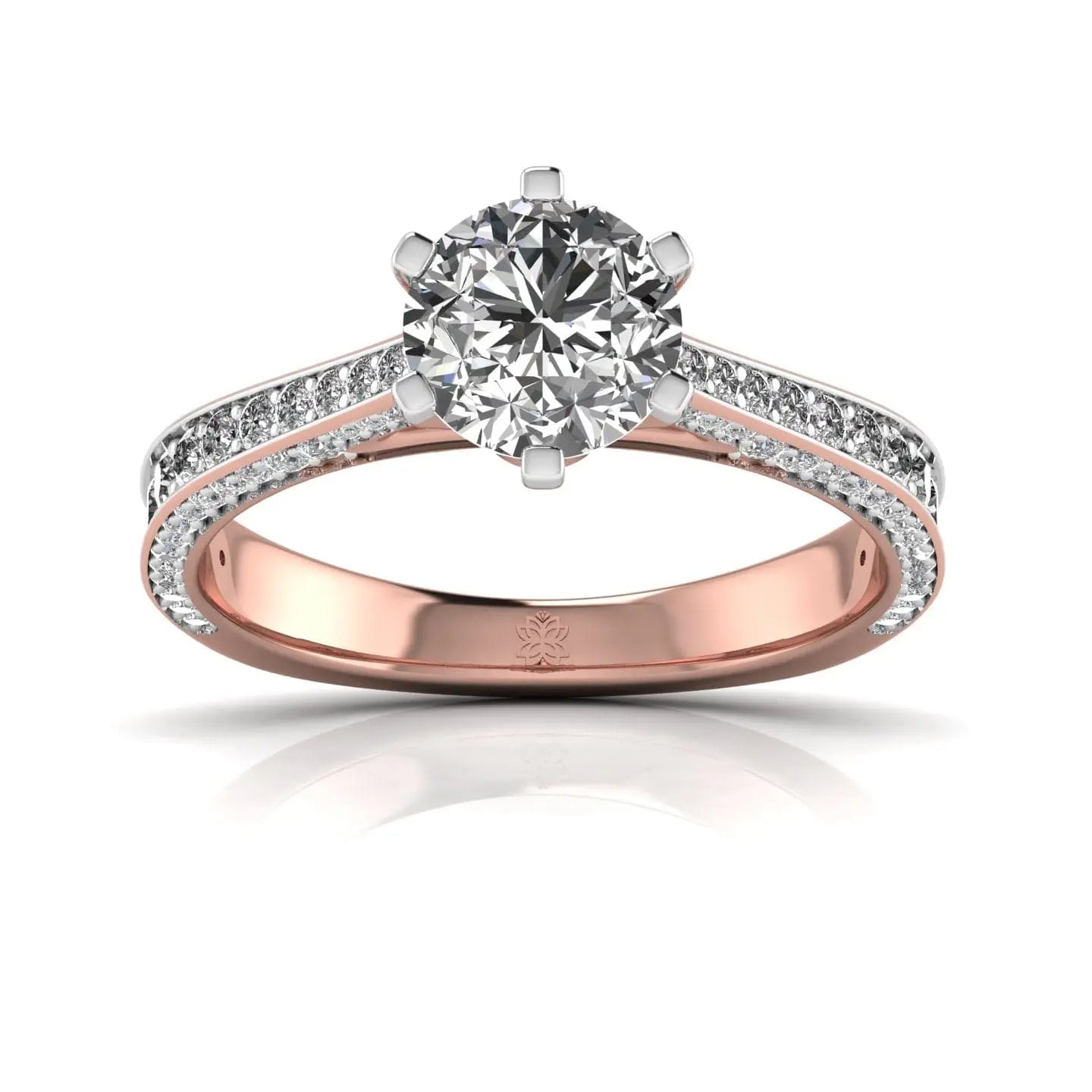This 1 Carat Round Cut Solitaire Engagement Ring features a stunning lab grown diamond, combining ethical craftsmanship with timeless elegance. Its brilliant cut maximizes sparkle, making it a refined and sophisticated choice for celebrating your special commitment.