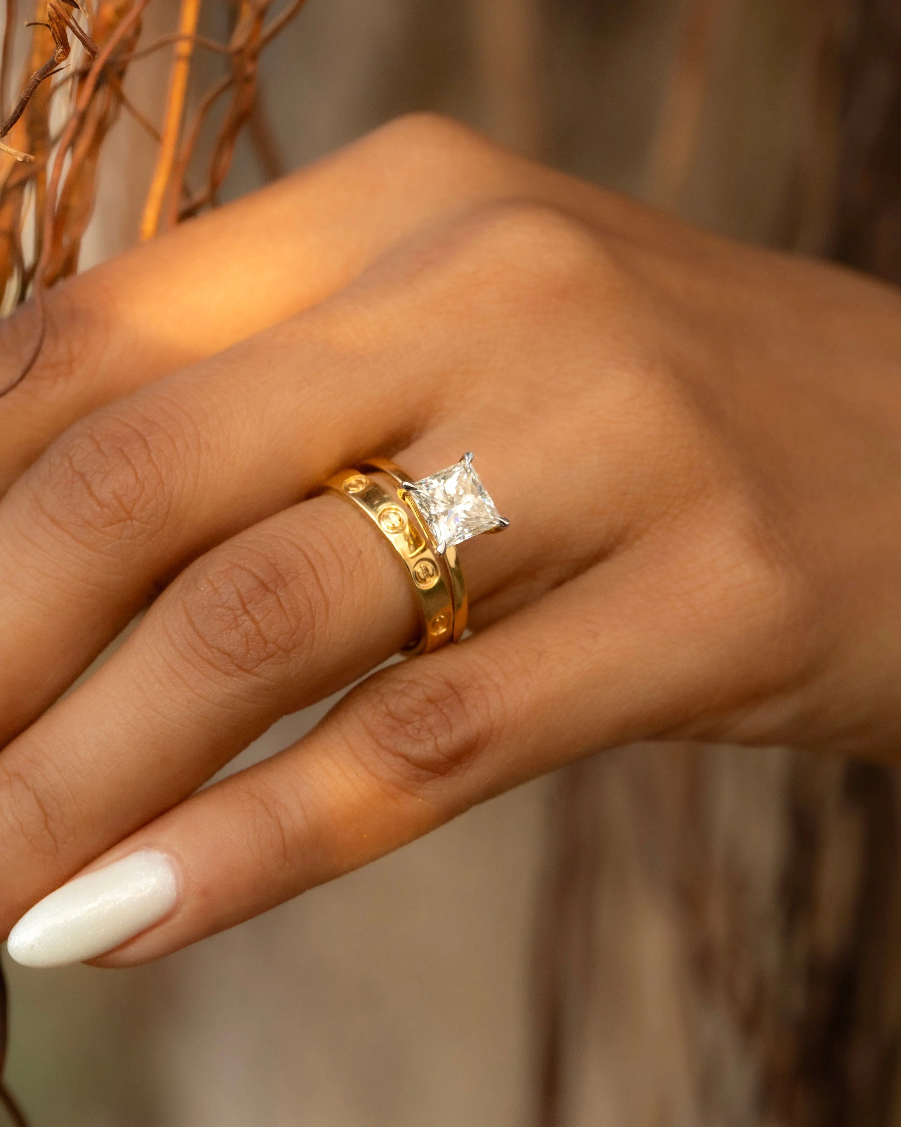 The Lab Grown Diamond Princess Ring Set features a stunning princess cut diamond, designed to showcase exceptional brilliance and clarity. This elegant solitaire ring reflects sophisticated style and sustainable luxury perfect for those who appreciate timeless beauty and ethical craftsmanship.