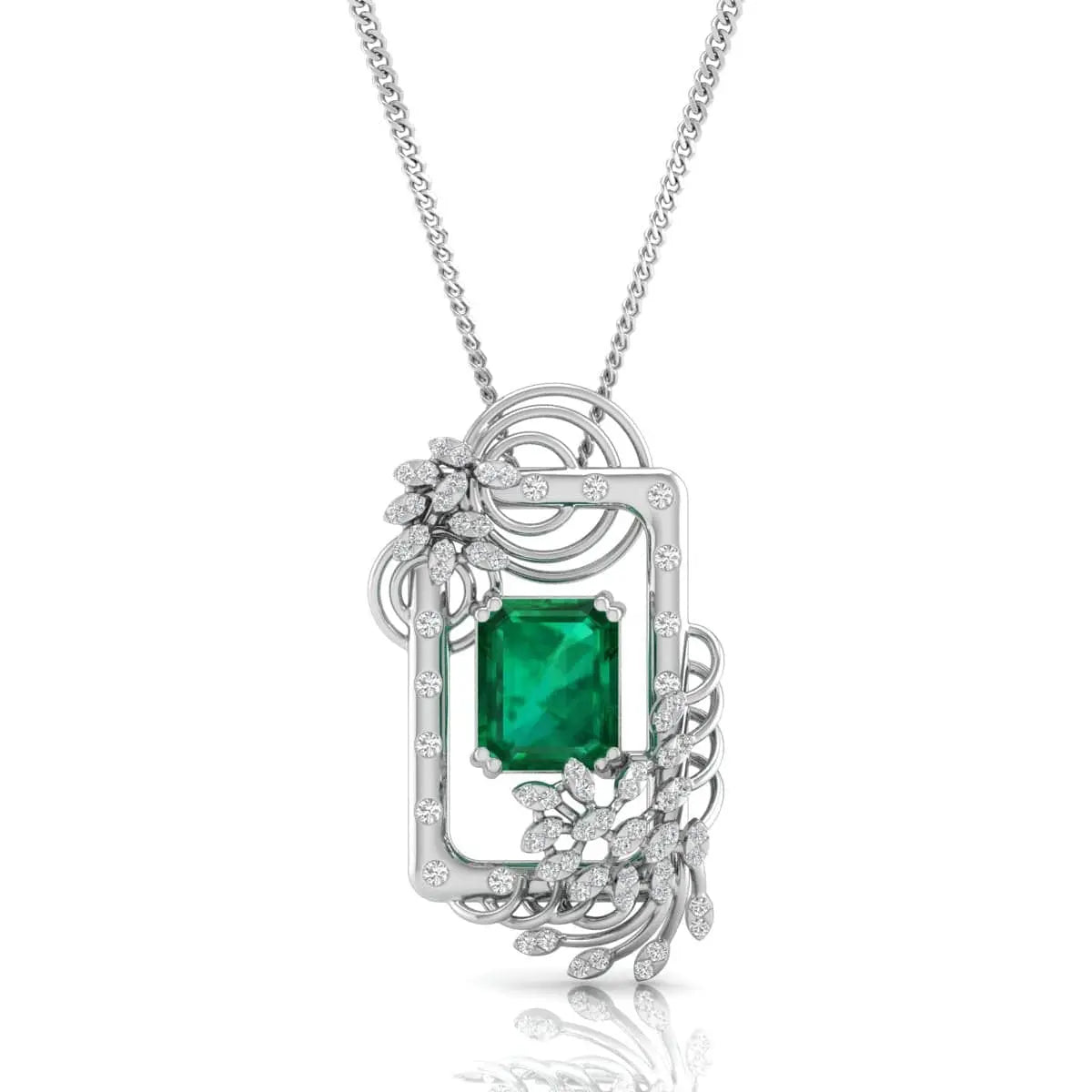 This Vivid Emerald and Diamond Pendant showcases a brilliant lab grown diamond paired with a rich emerald, combining ethical craftsmanship with timeless sophistication. Its elegant design enhances any ensemble, making it a perfect choice for those who appreciate refined beauty and responsible luxury.