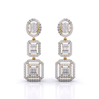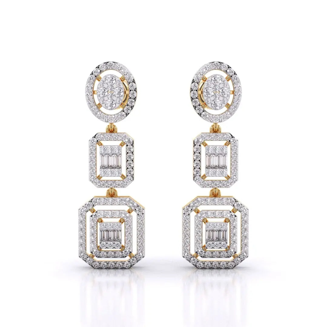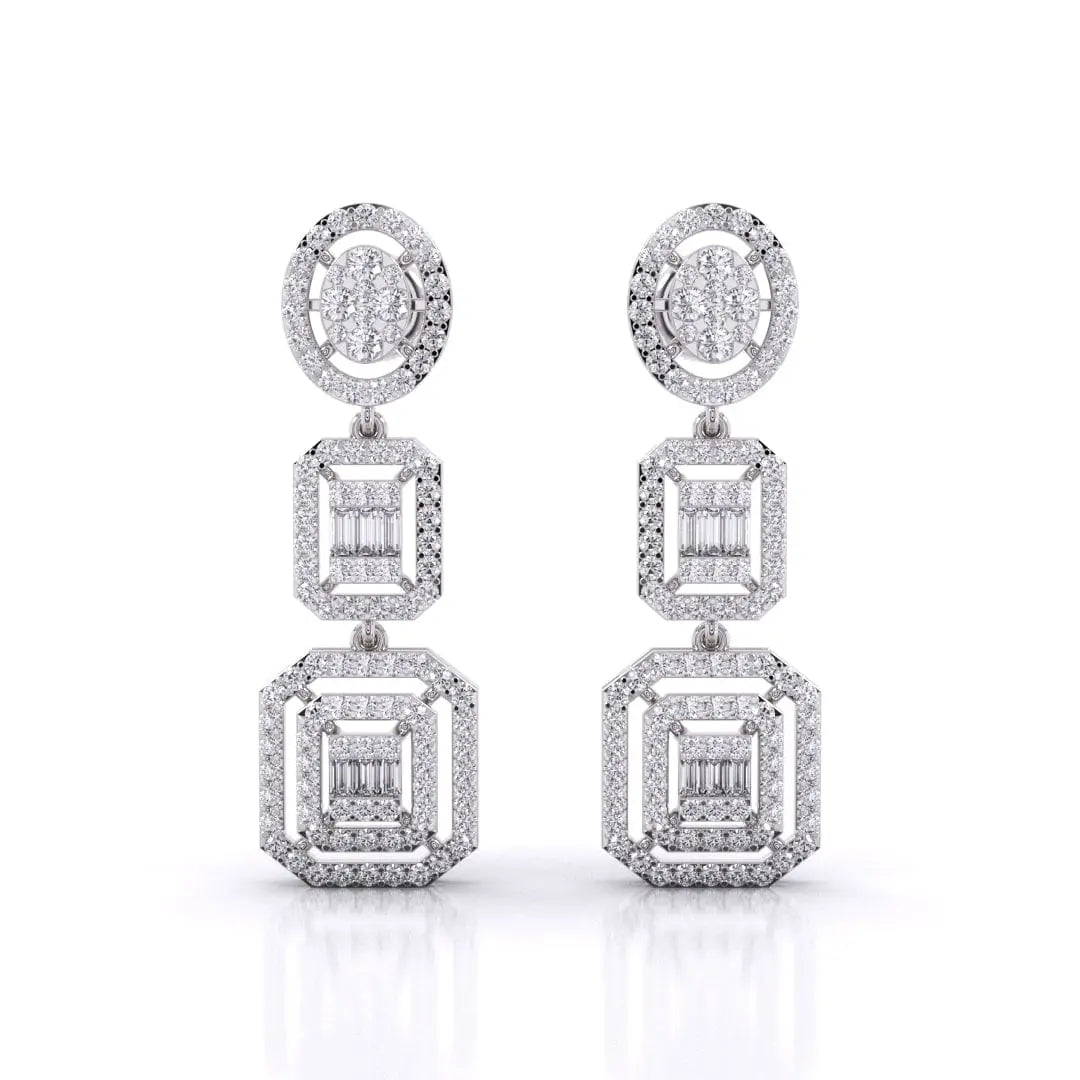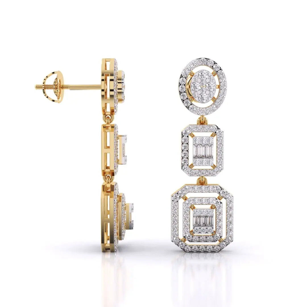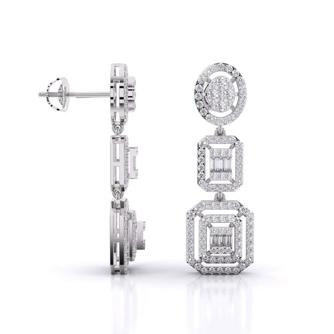 These Three-Tier Diamond Earrings feature a stunning halo cluster of lab grown diamonds, designed to deliver a radiant and sophisticated sparkle. Crafted for those who value both glamour and conscious luxury, they offer an elegant statement piece that shines with ethical brilliance.