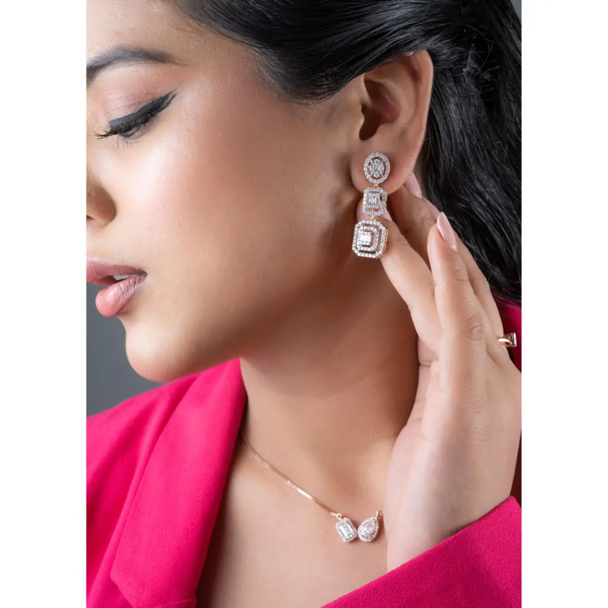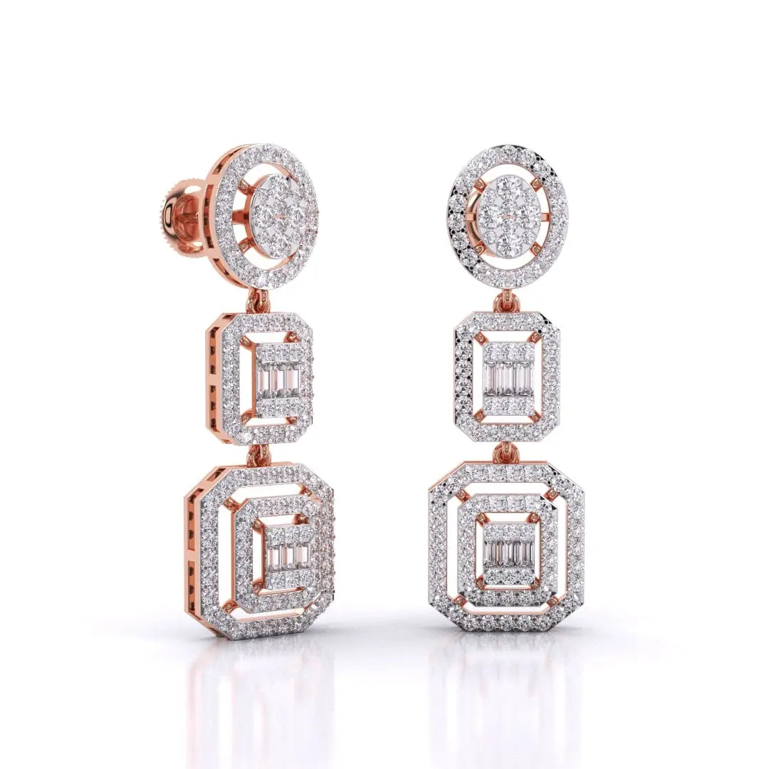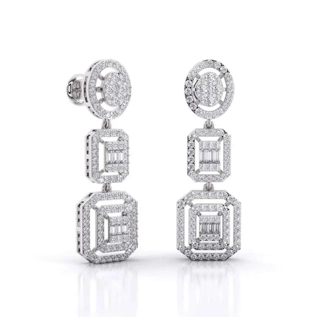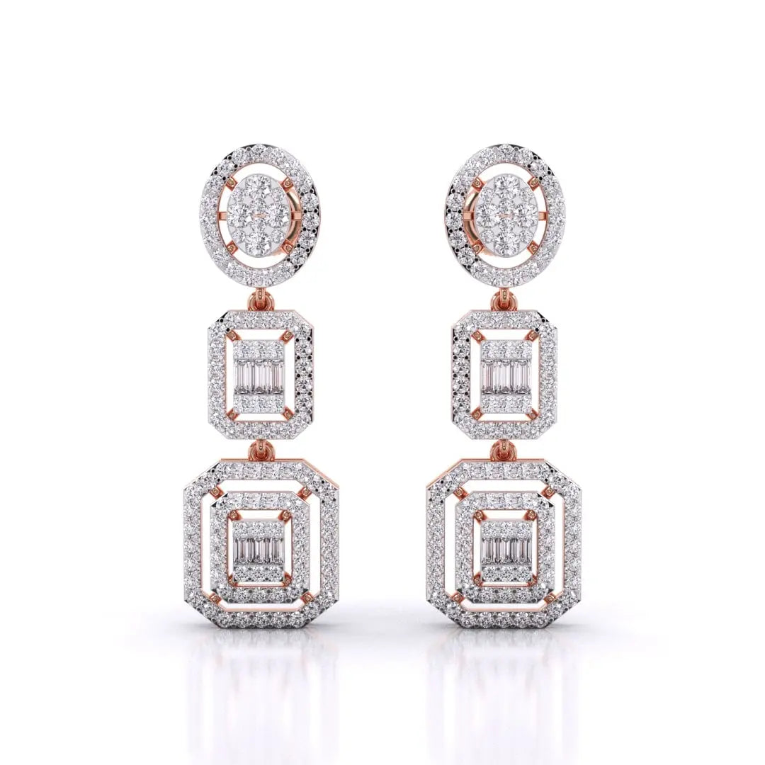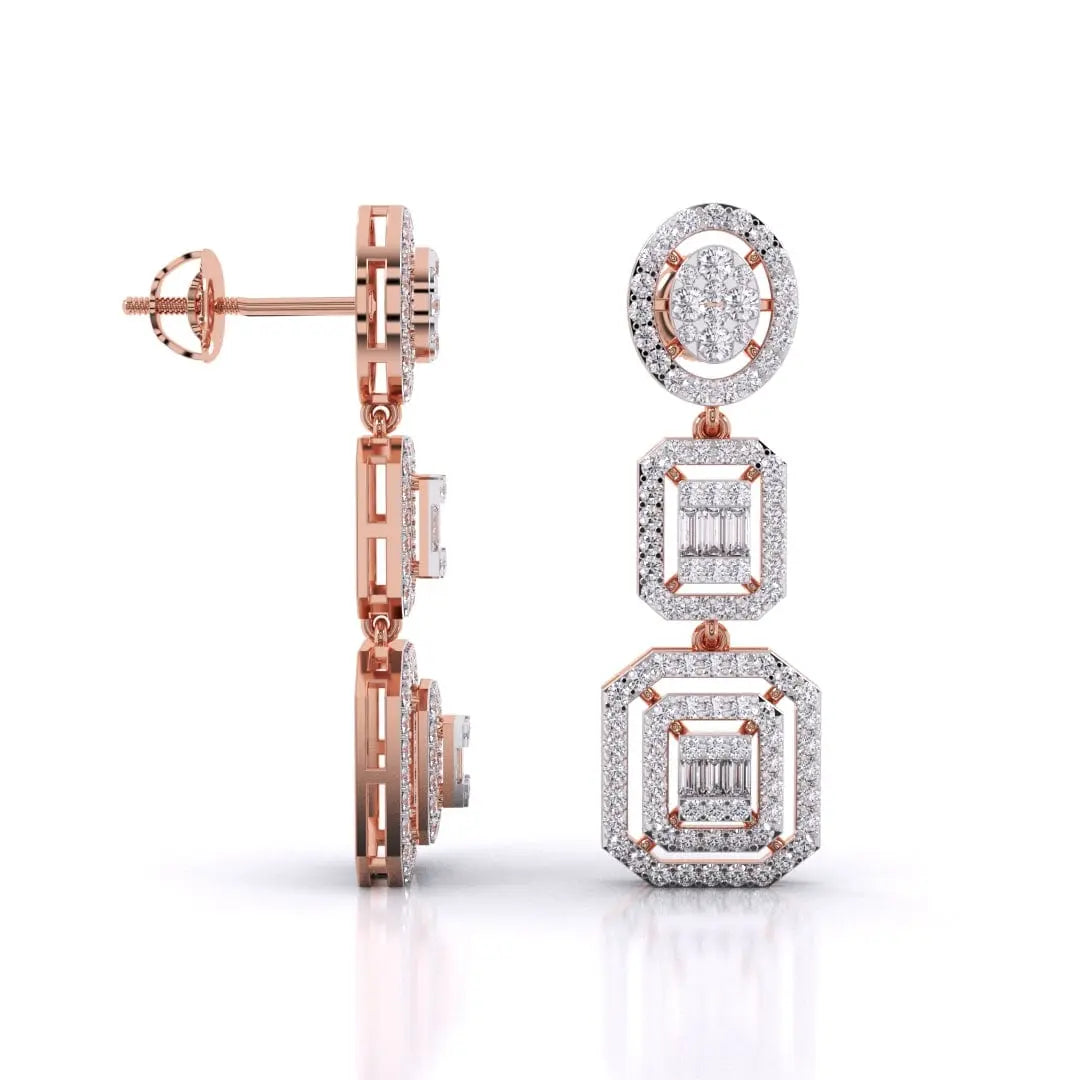 These Three-Tier Diamond Earrings feature a stunning halo cluster of lab grown diamonds, designed to deliver a radiant and sophisticated sparkle. Crafted for those who value both glamour and conscious luxury, they offer an elegant statement piece that shines with ethical brilliance.
