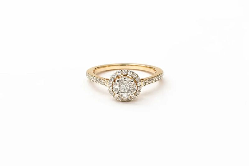 Halo Diamond Ring with Round Center Stone and Paved Band