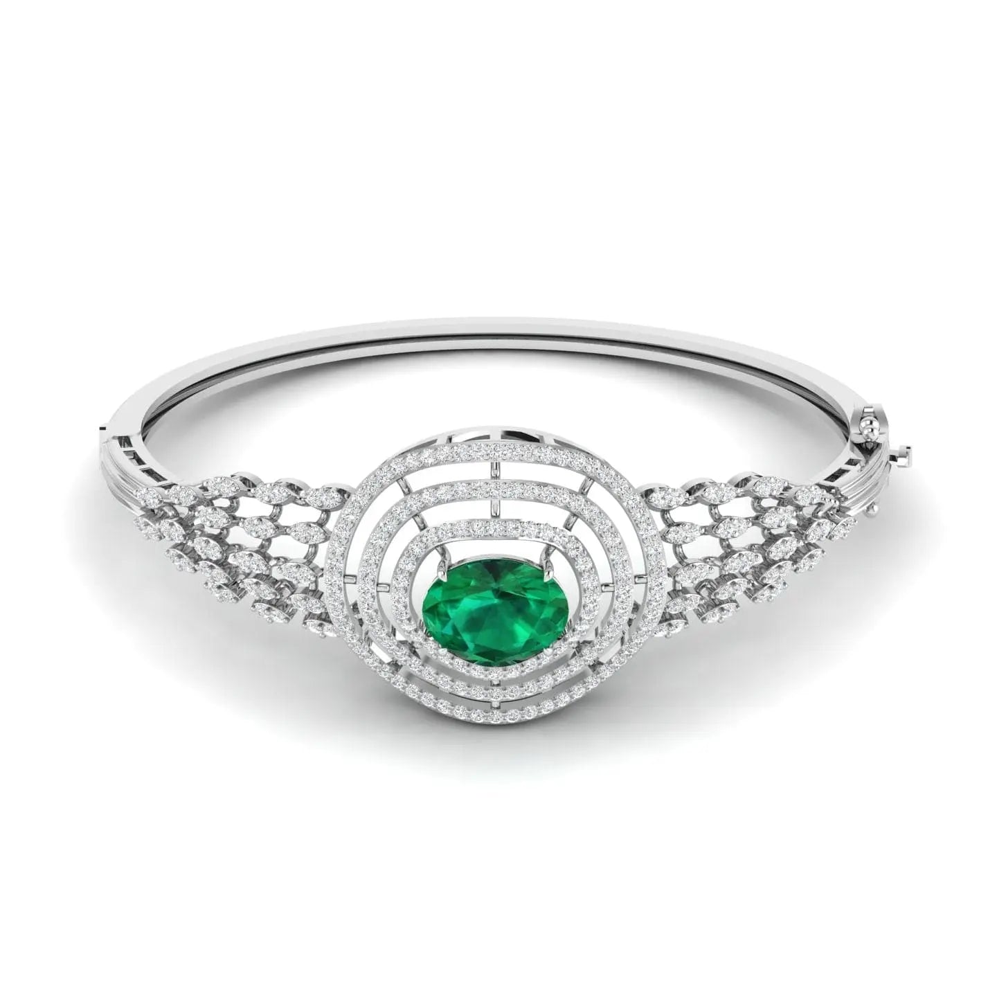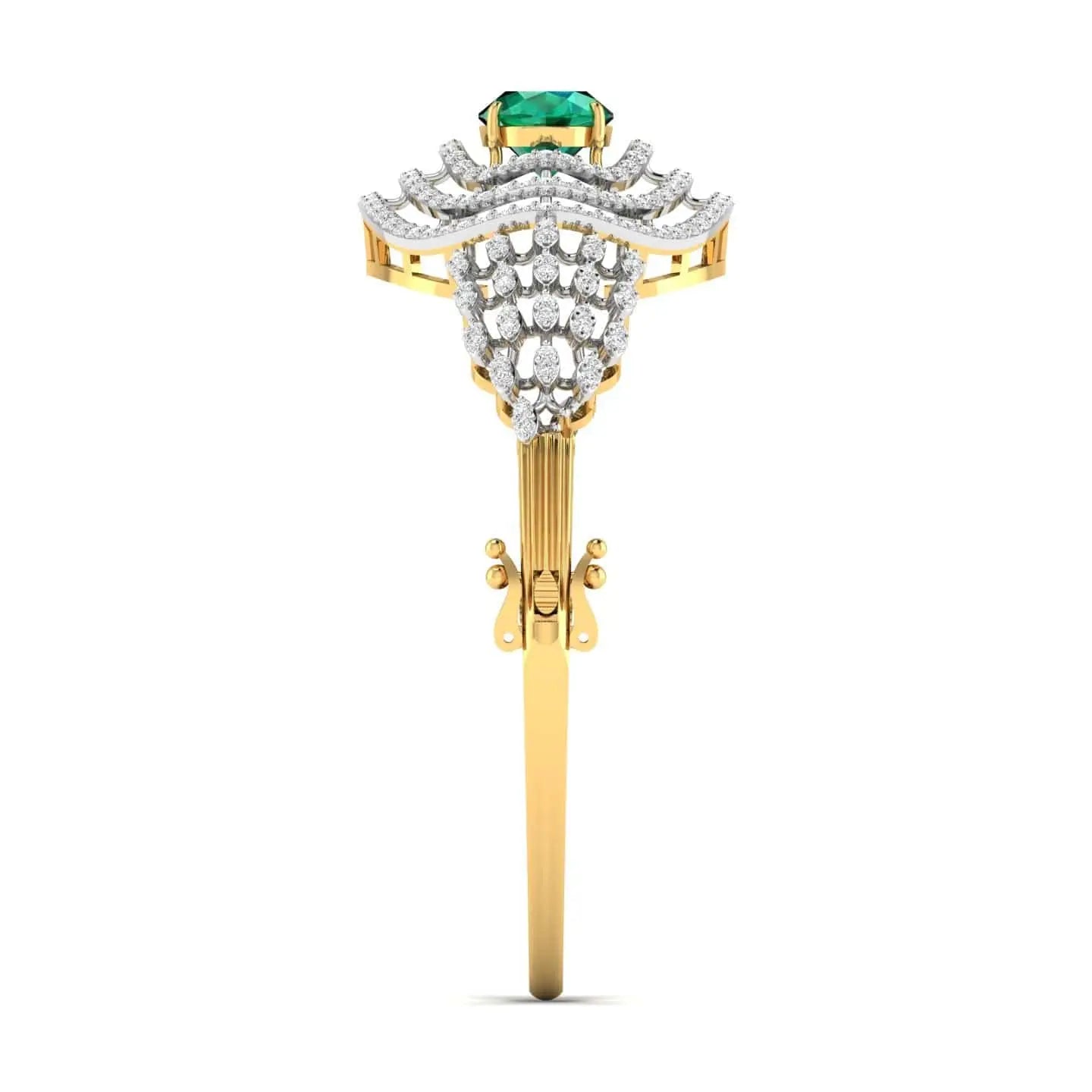 The Halo Emerald Diamond Bangle showcases the brilliance of lab grown diamonds set in an elegant design. This sophisticated accessory offers a sustainable alternative without compromising on luxury, adding a refined sparkle to elevate any outfit with timeless grace.
