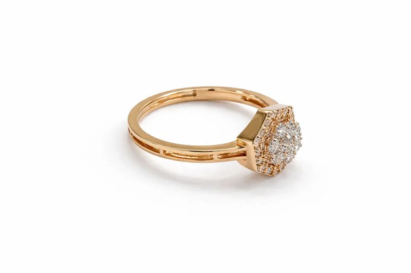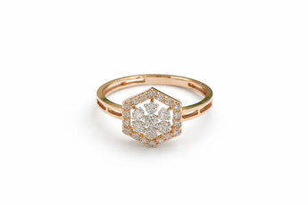 Hexagonal Halo Diamond Statement Ring