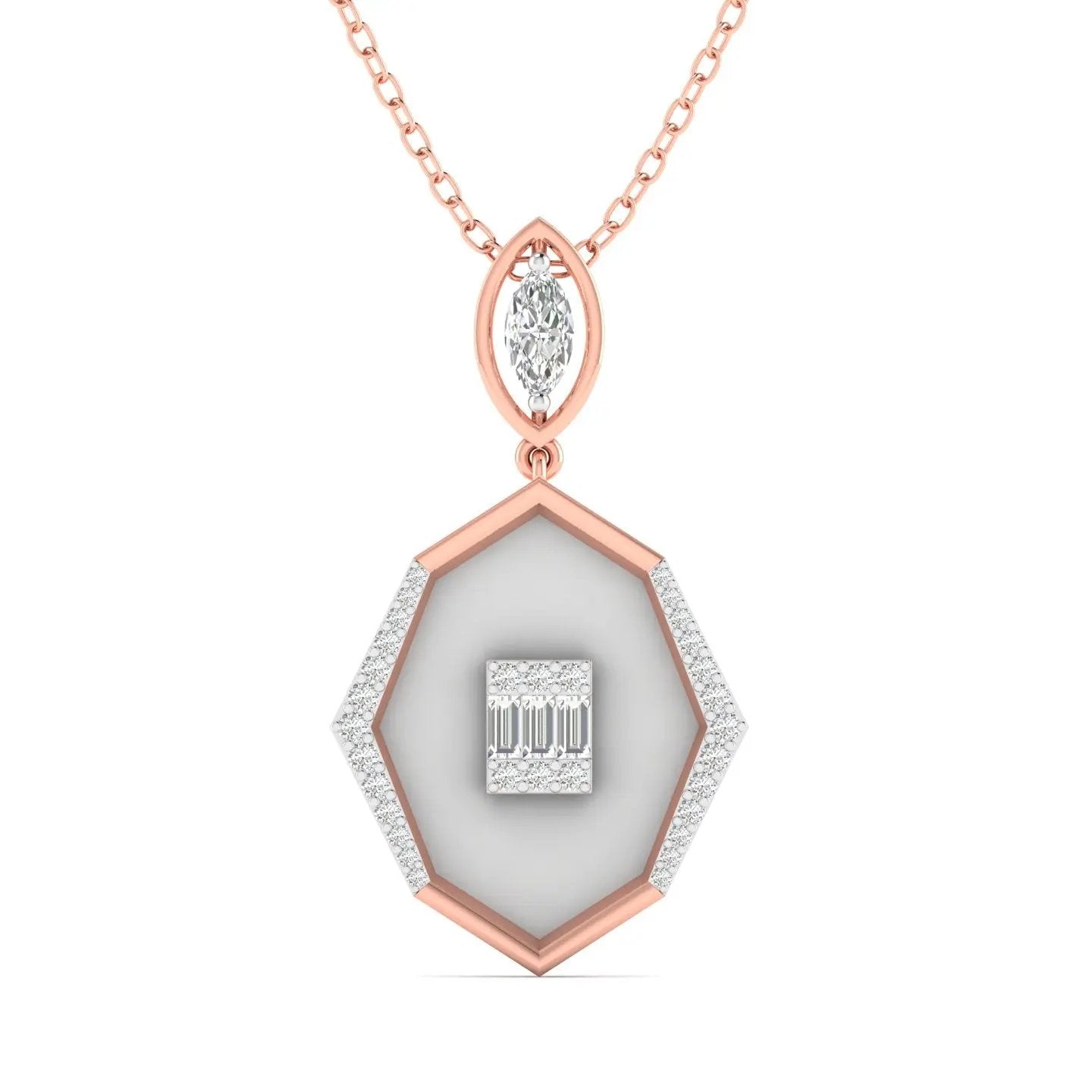Elevate your elegance with this Hexagonal Marquise Diamond Pendant, crafted in refined 14k gold. Its minimalistic design features a distinctive hexagonal shape that perfectly frames the sparkling marquise-cut diamond, offering a timeless yet contemporary touch. This pendant is an exquisite choice for women seeking subtle sophistication and lasting beauty.