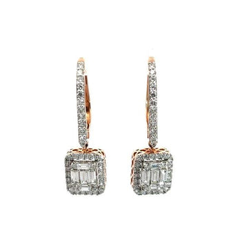 Illusion Set Baguette Diamond Halo Drop Earrings in Rose Gold