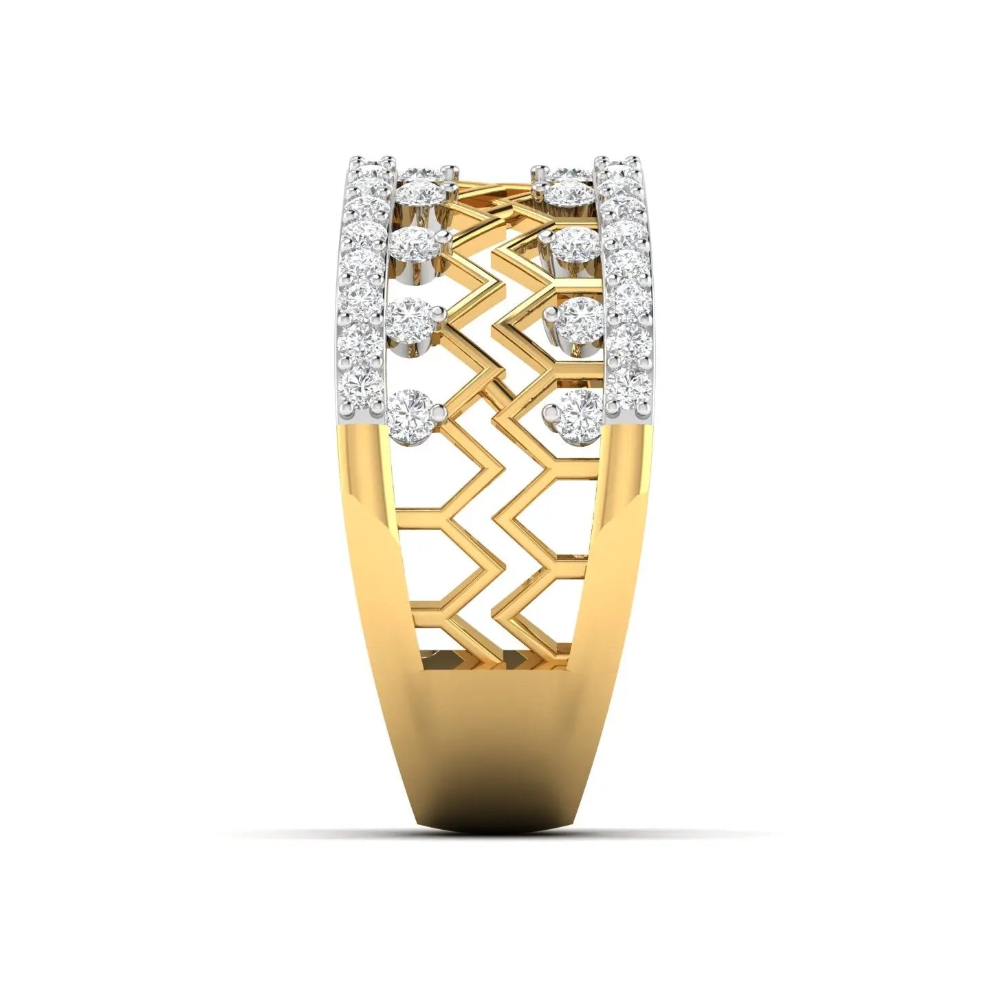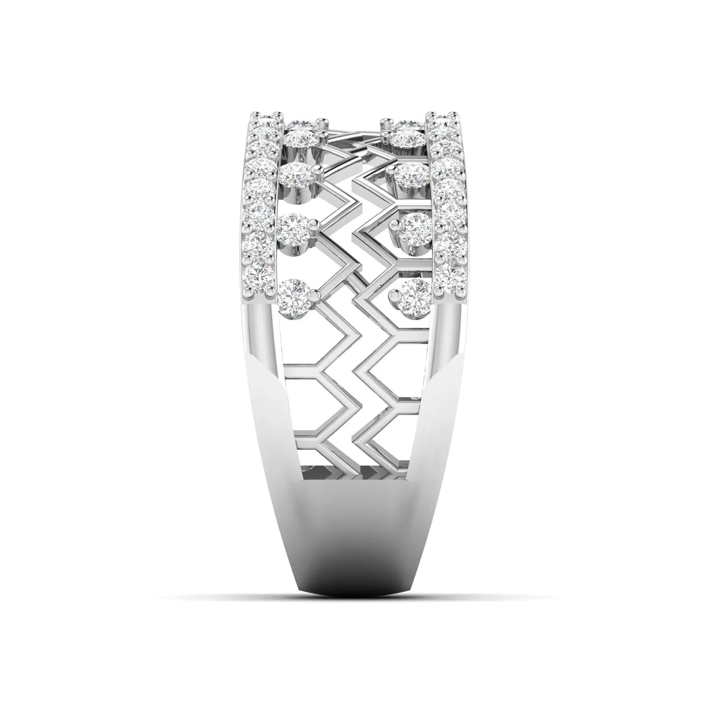 Experience the refined elegance of the Lab Grown Diamond Chevron Ring, featuring ethically crafted diamonds in a striking chevron pattern. This modern masterpiece blends sustainability with timeless style, offering a sophisticated choice for those who appreciate conscious luxury.