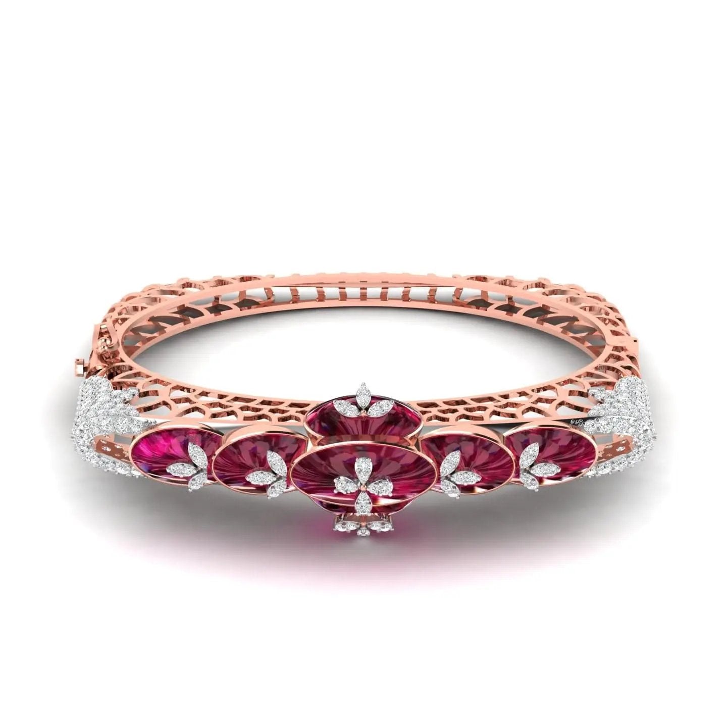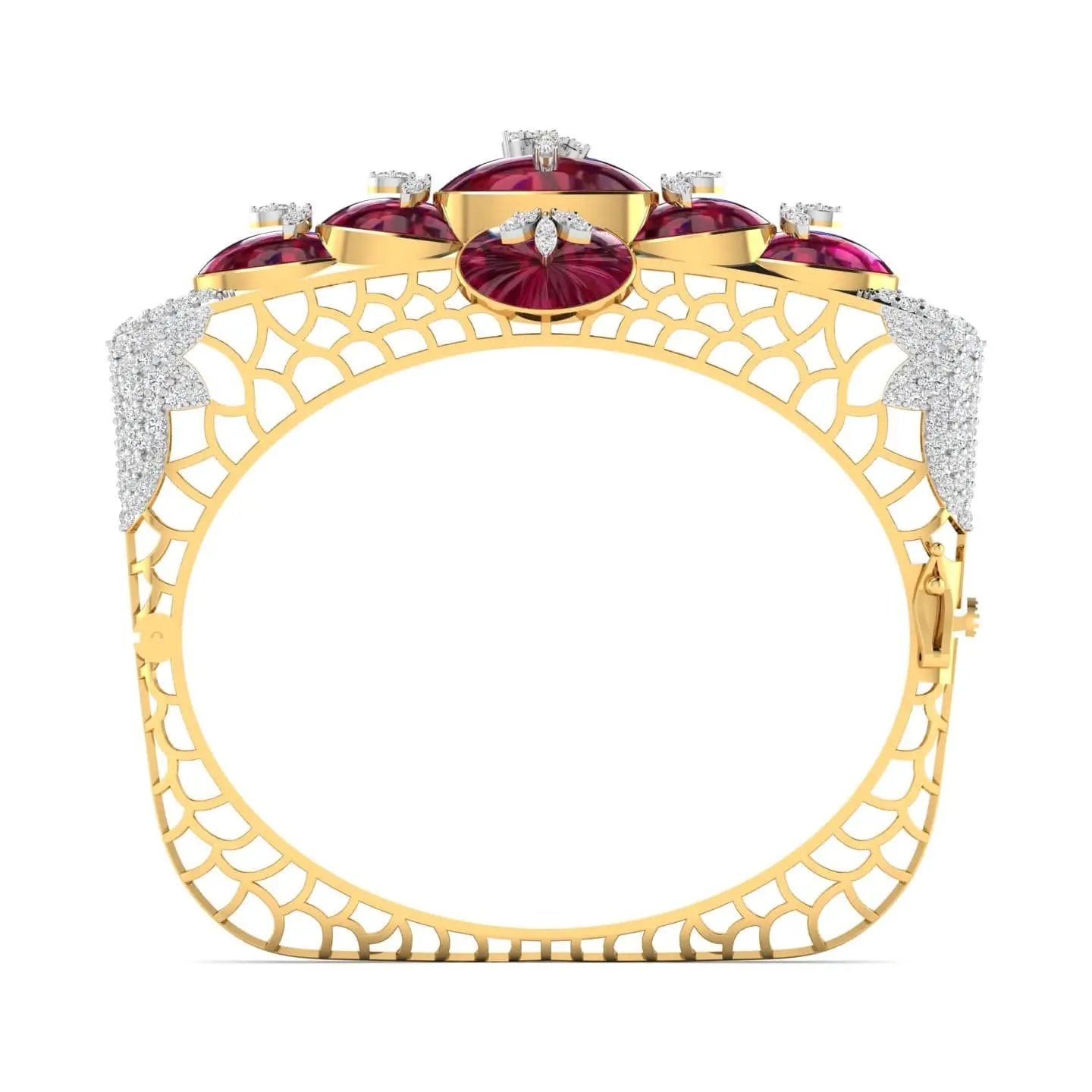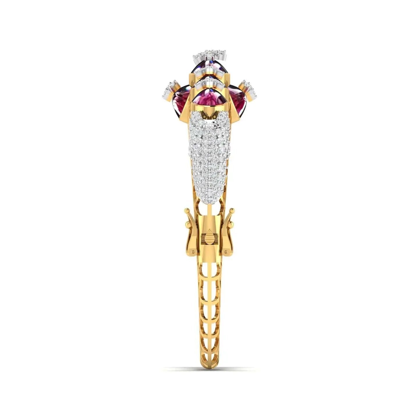 This Intricate Design Gold Bangle showcases the brilliance of lab grown diamonds, combining ethical craftsmanship with exquisite detail. Its sophisticated design enhances any ensemble, offering a refined touch of luxury that is both timeless and responsible. Perfect for those who appreciate elegance with a conscious choice.