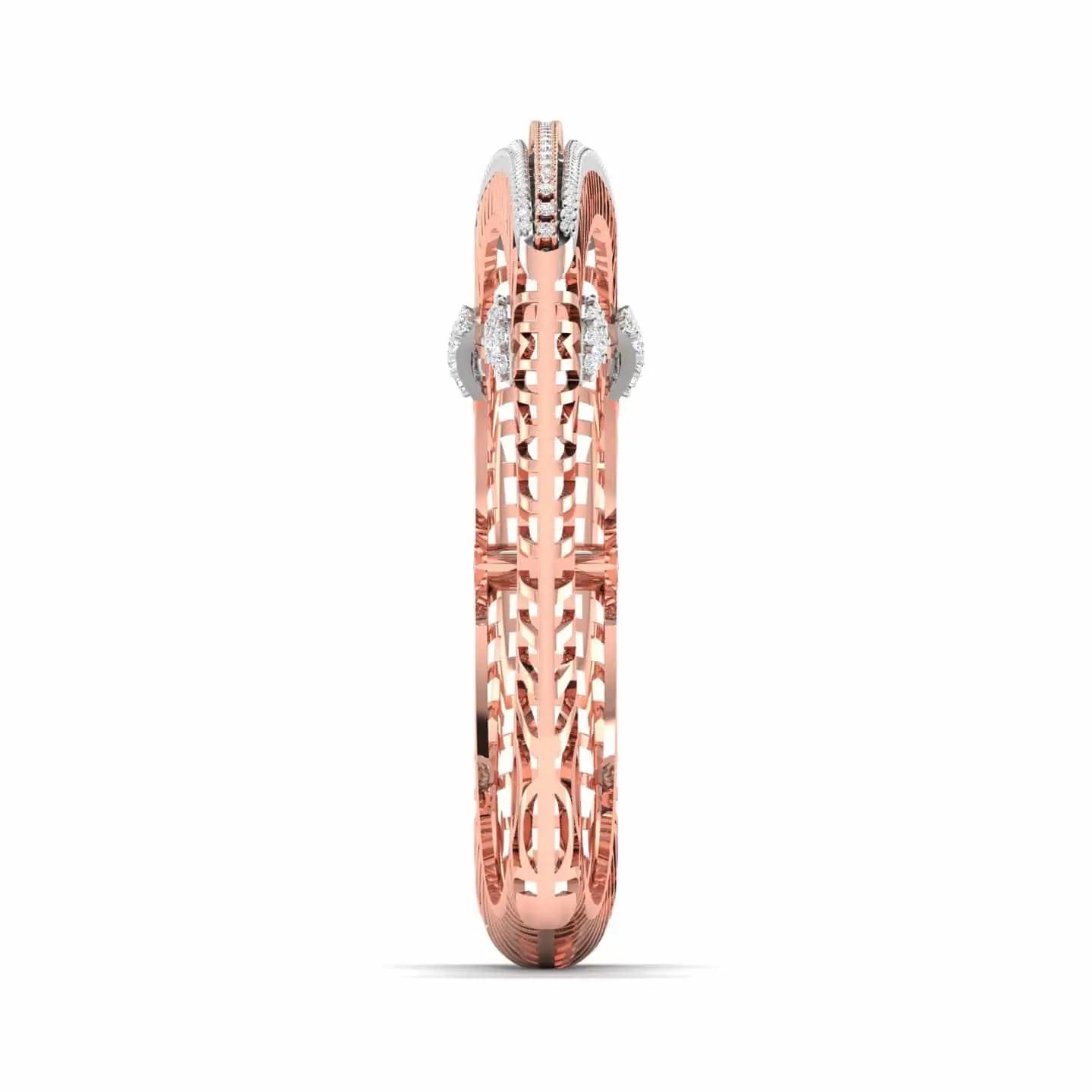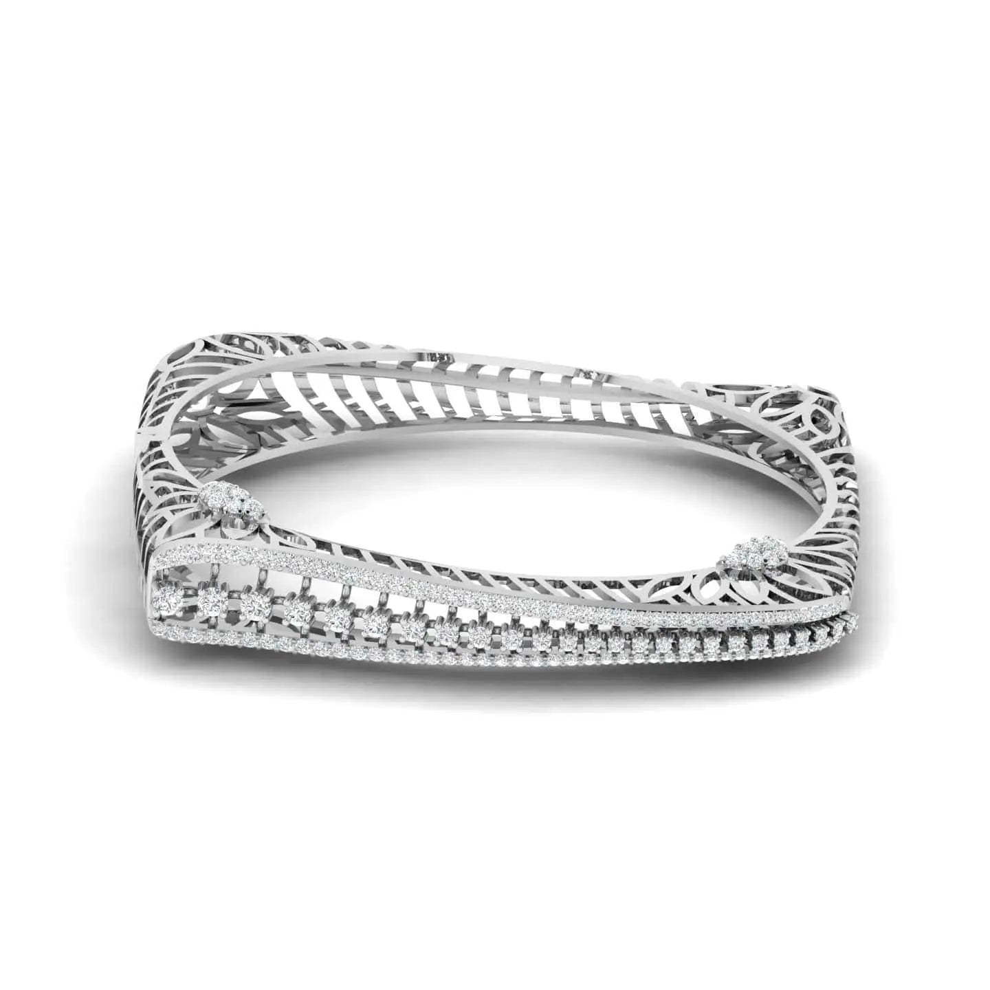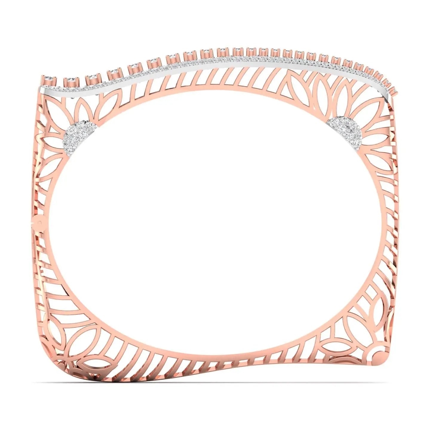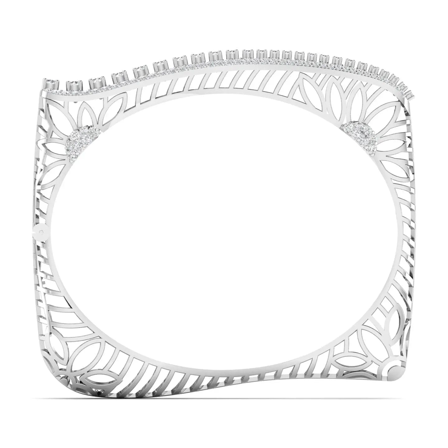 This Intricate Filigree Diamond Bangle features beautifully crafted lab grown diamonds set within an elegant filigree design. Its sophisticated style adds a delicate shimmer to your wrist, blending timeless artistry with modern sustainability. Perfect for enhancing both formal and everyday looks with subtle luxury.