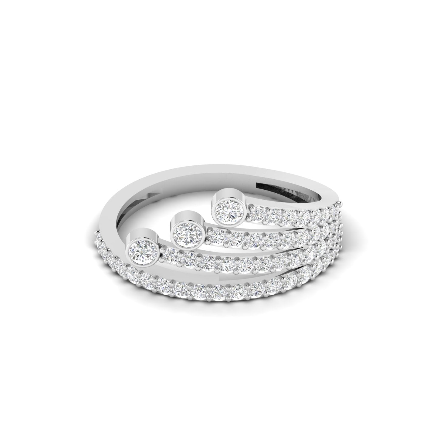 Elevate your elegance with this Intricate Multi-Band Diamond Gold Ring, featuring a stunning pave setting that delicately showcases brilliant diamonds across multiple intertwined bands. Perfect as a wedding ring or a statement piece, its refined craftsmanship and