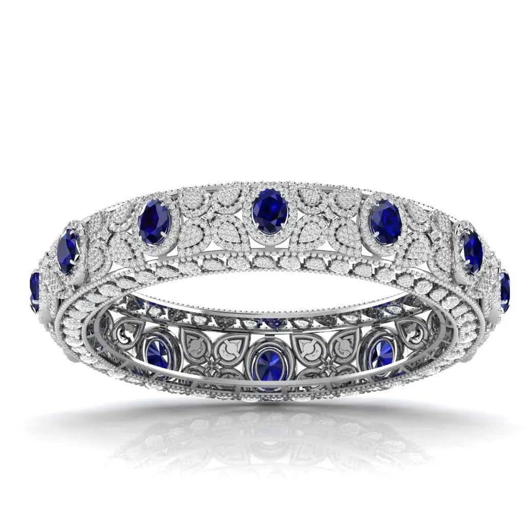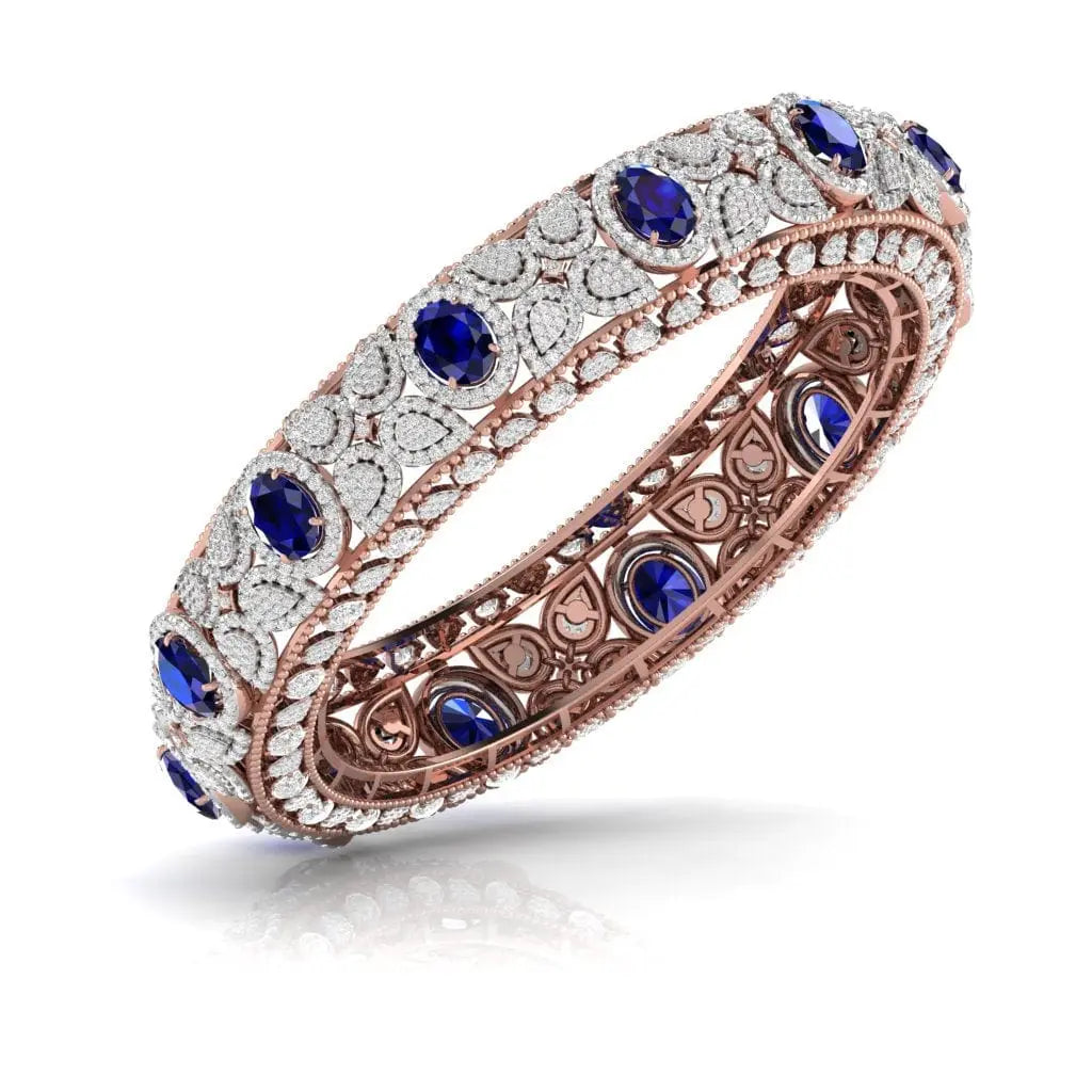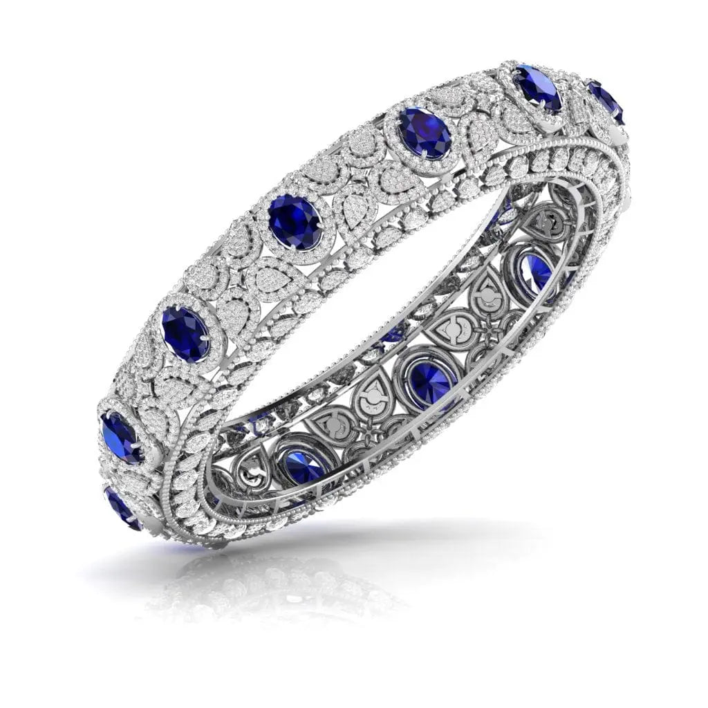 This sophisticated bangle features dazzling lab grown diamonds paired with striking blue gemstones, creating a timeless accessory that combines ethical craftsmanship with refined style. Perfect for adding a subtle yet luxurious touch to any outfit.