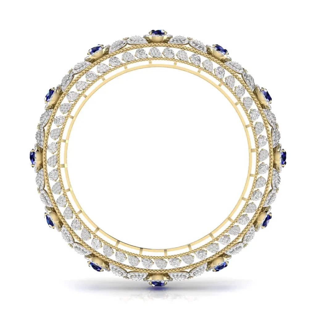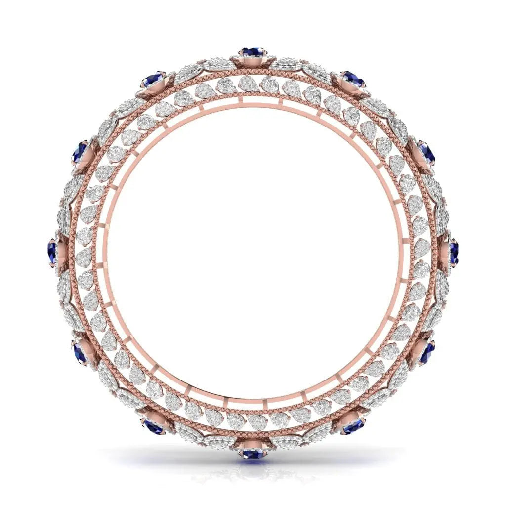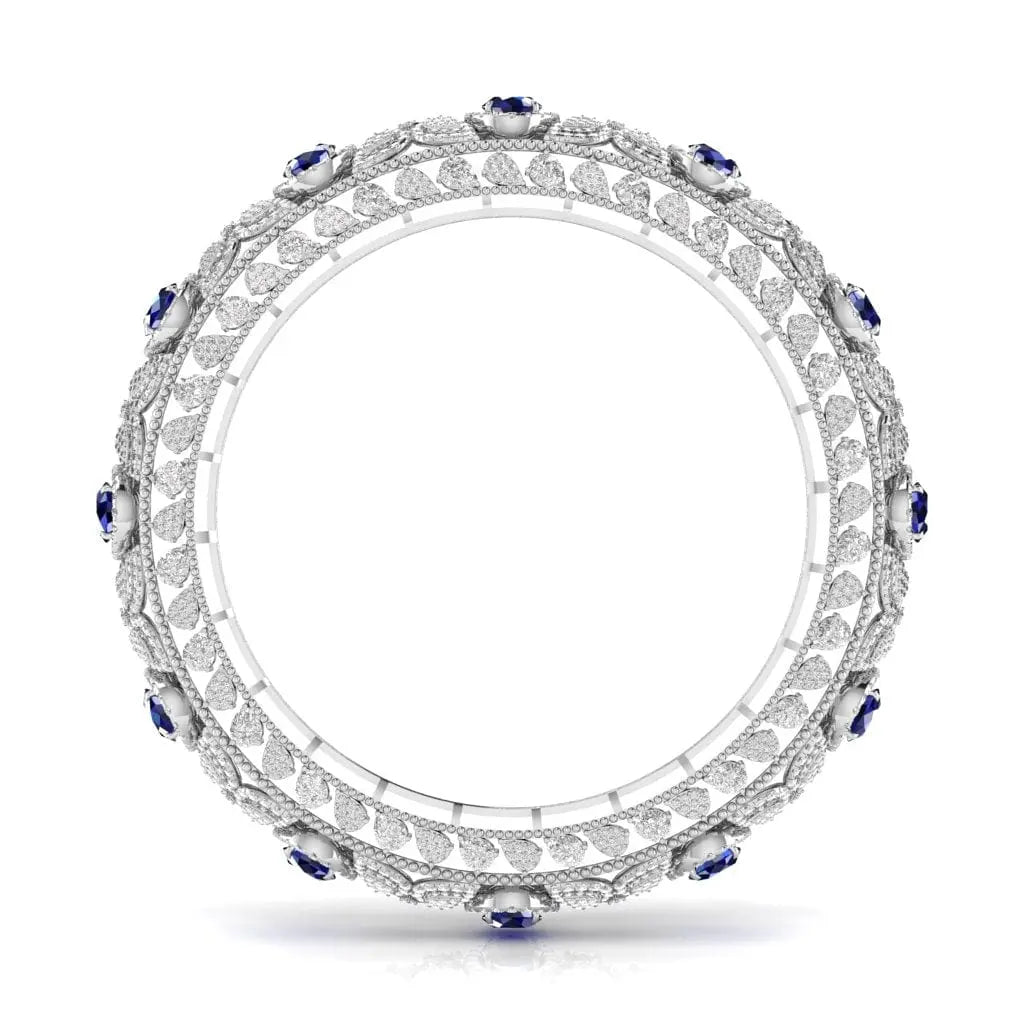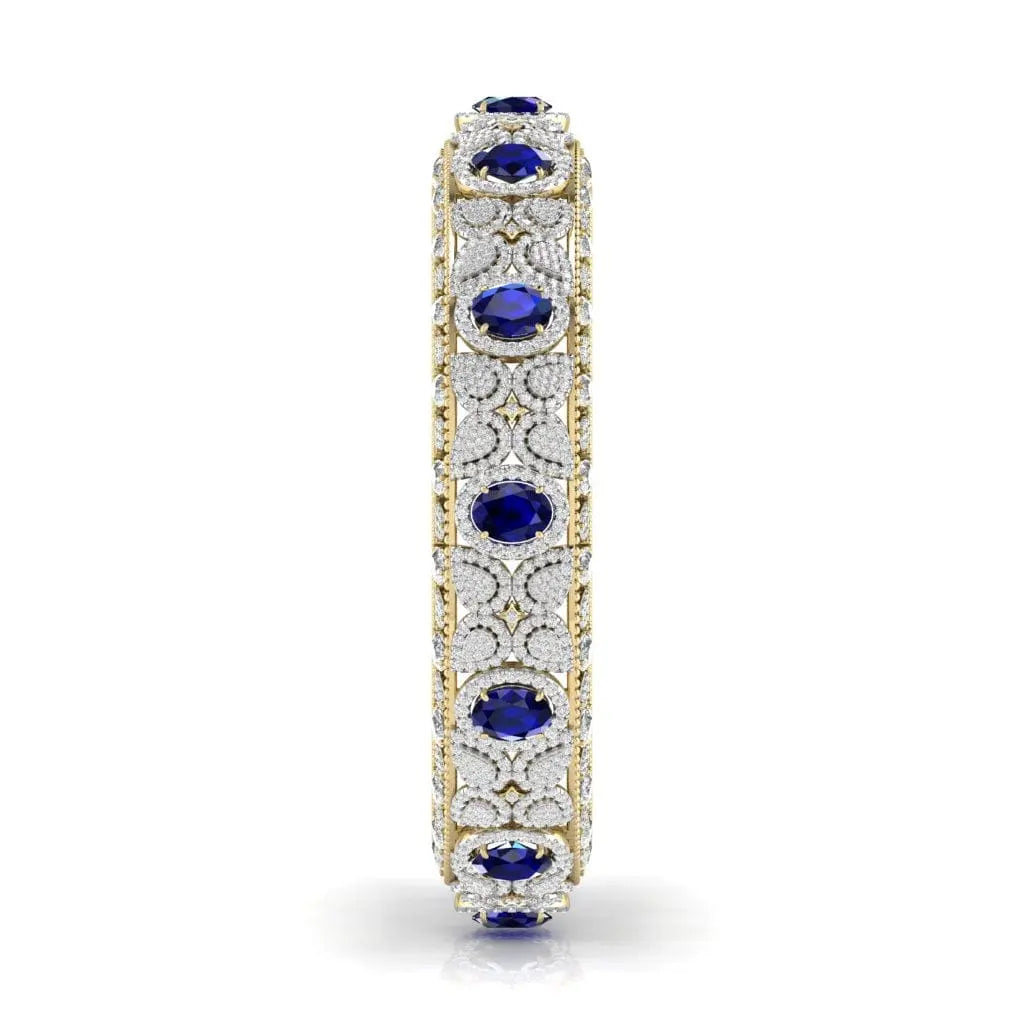 This sophisticated bangle features dazzling lab grown diamonds paired with striking blue gemstones, creating a timeless accessory that combines ethical craftsmanship with refined style. Perfect for adding a subtle yet luxurious touch to any outfit.