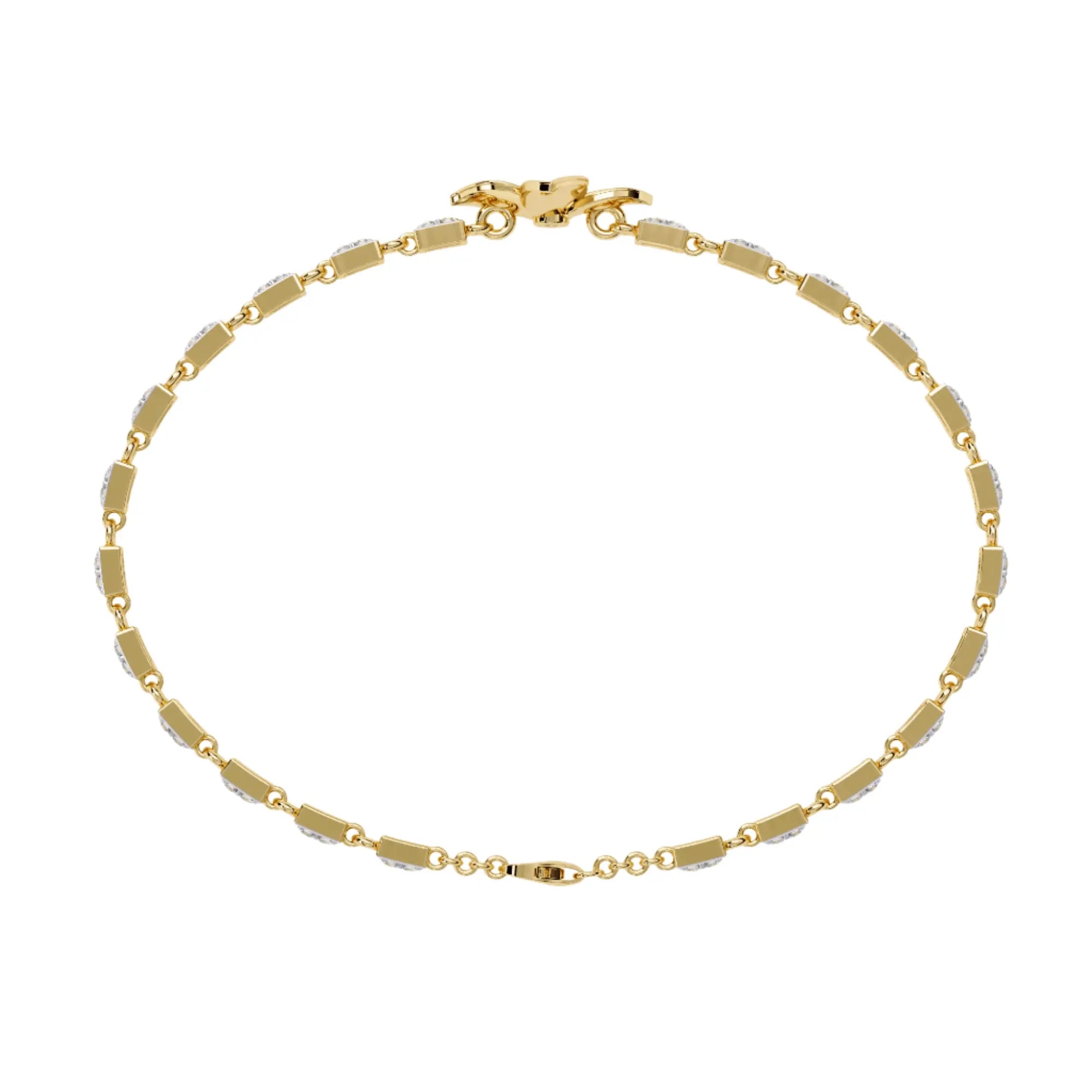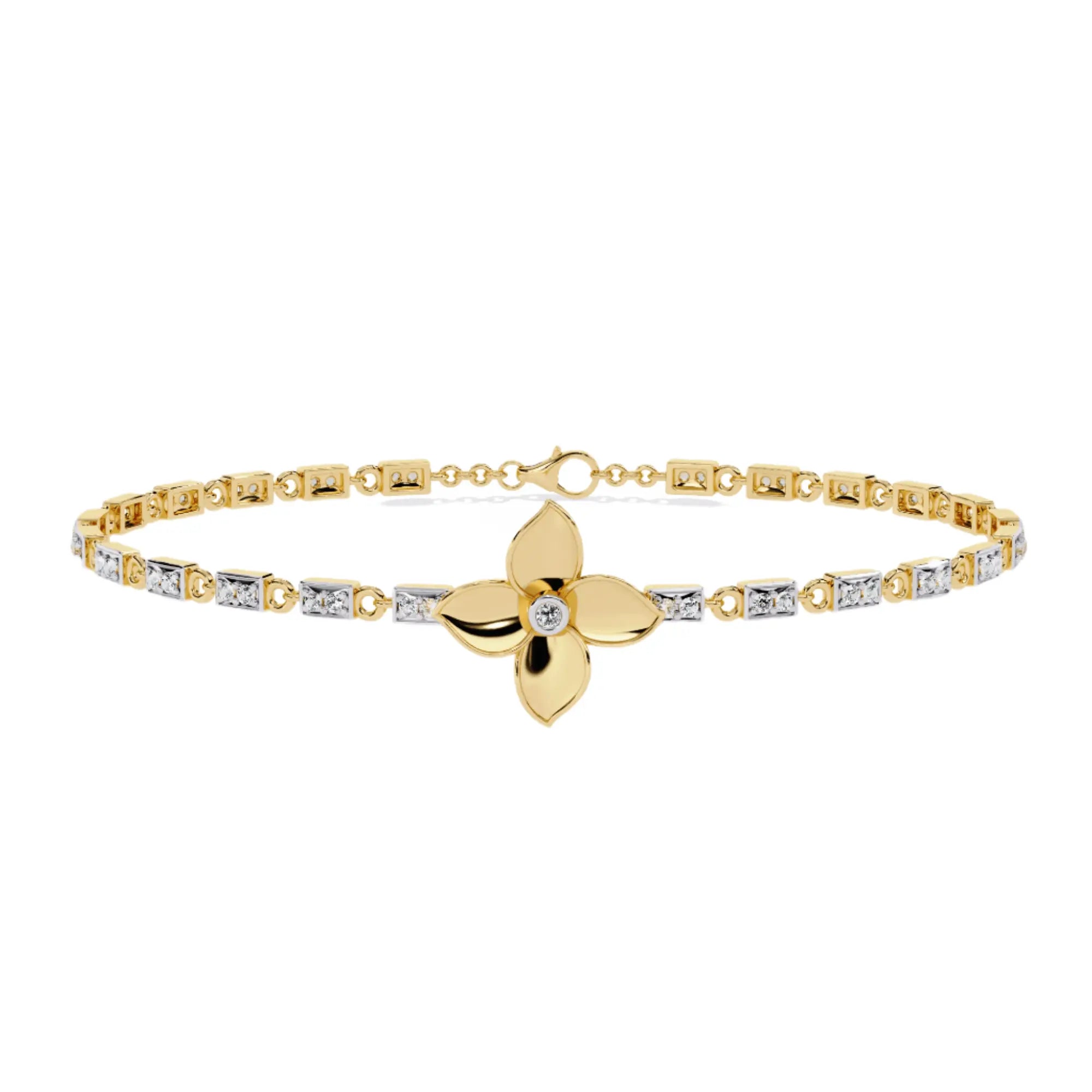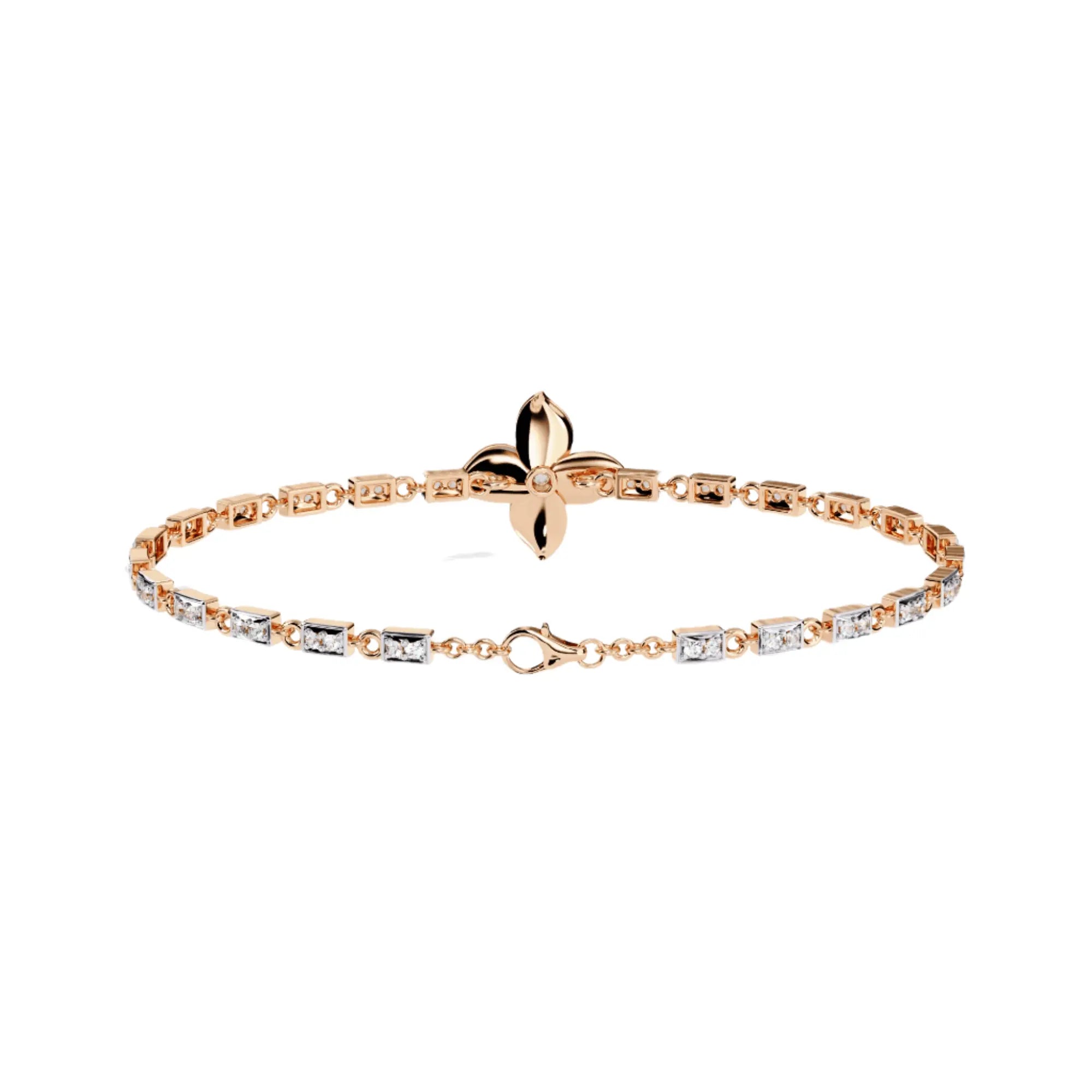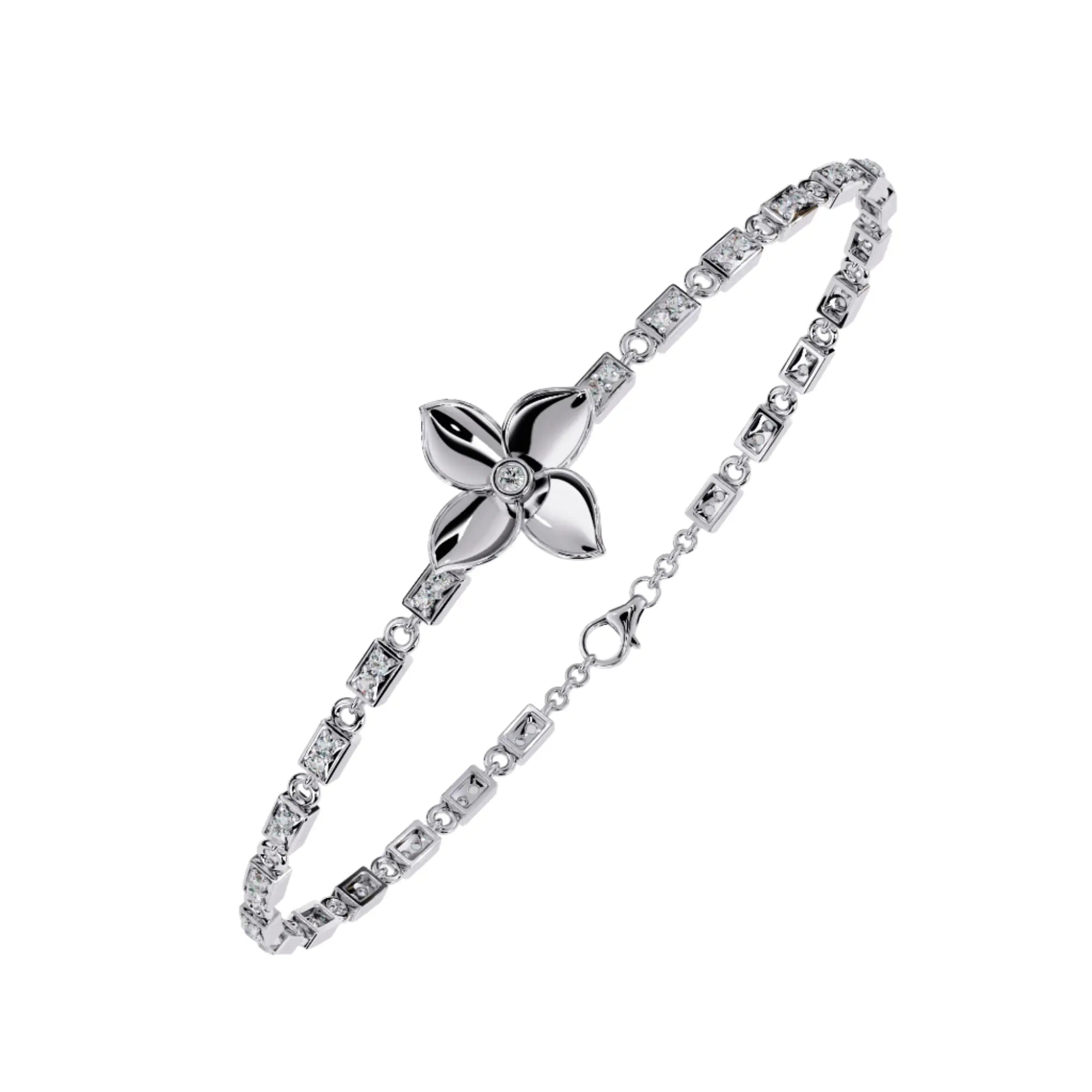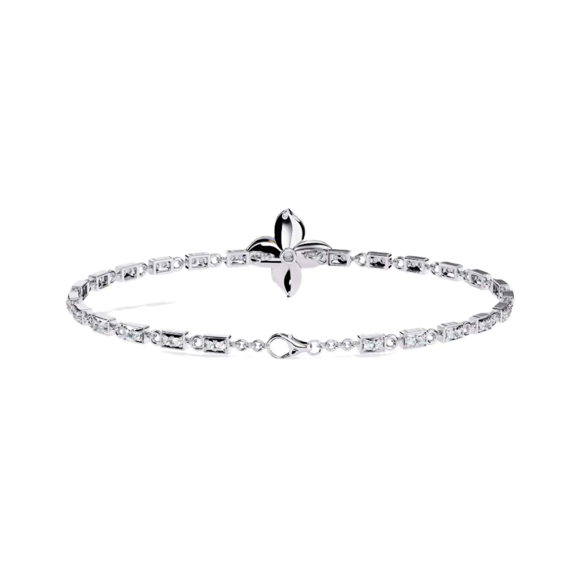 This elegant lab grown diamond chain bracelet features a delicate floral motif, adorned with sparkling lab-grown diamonds. A perfect blend of timeless beauty and ethical craftsmanship, it adds graceful charm to any outfit for those who value elegance and sustainability.