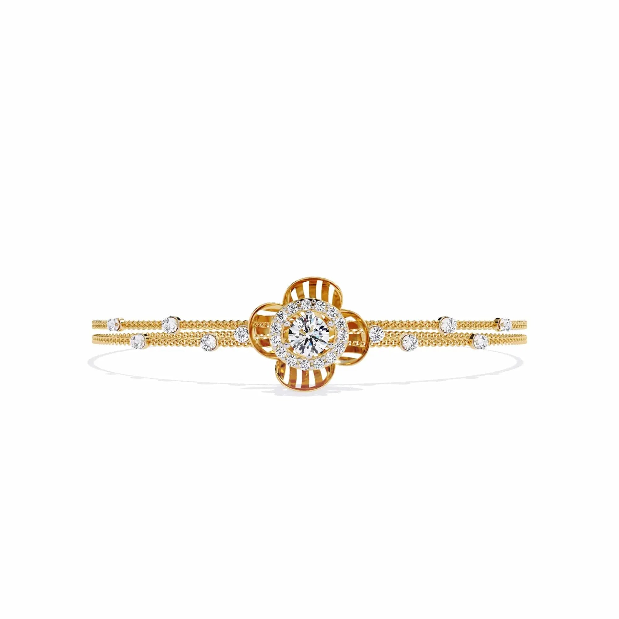 The Diamond Flower Lab Grown Diamond Chain Bracelet features dazzling lab-grown diamonds set on two delicate chains. A graceful, elegant piece that brings refined sparkle and sustainable luxury to any look.