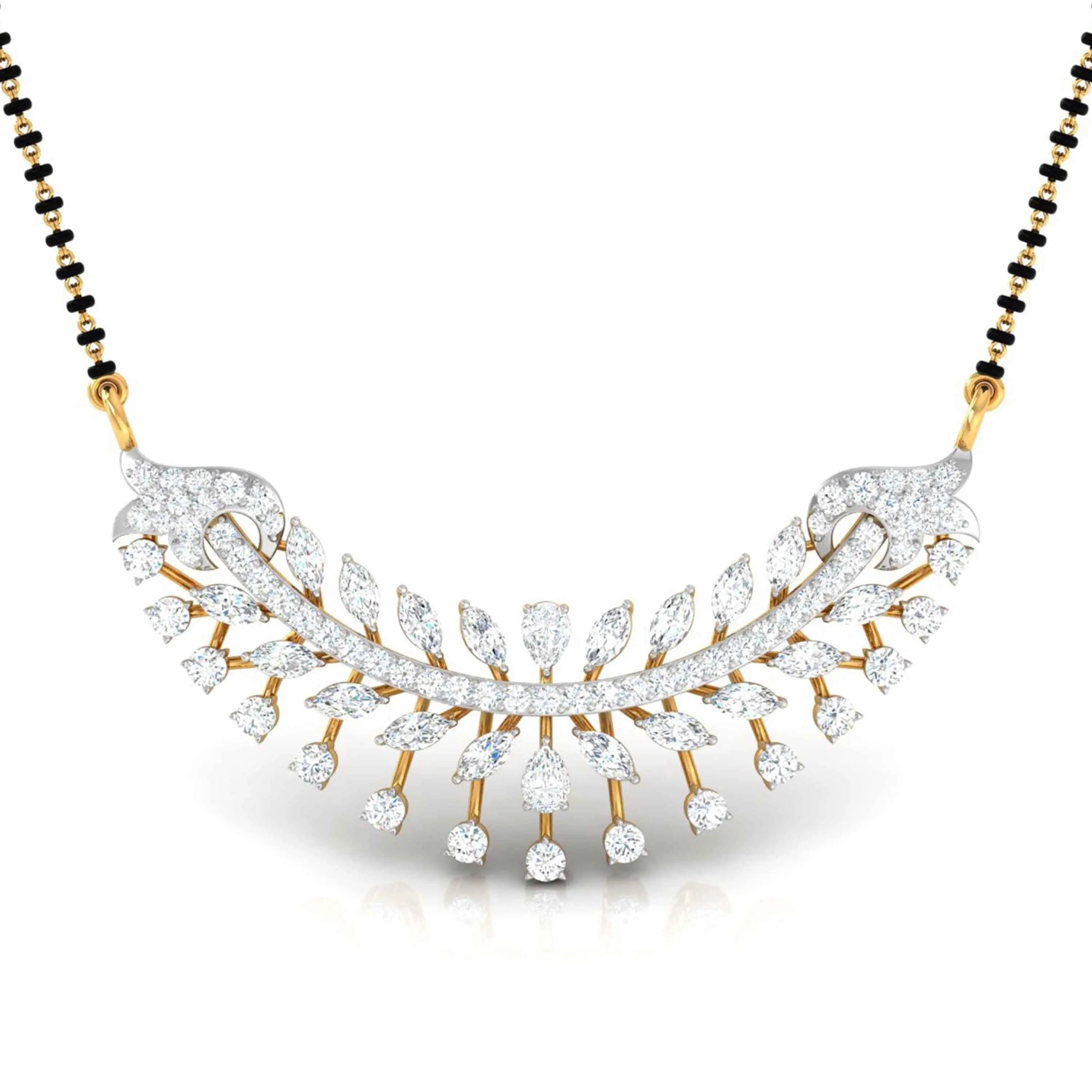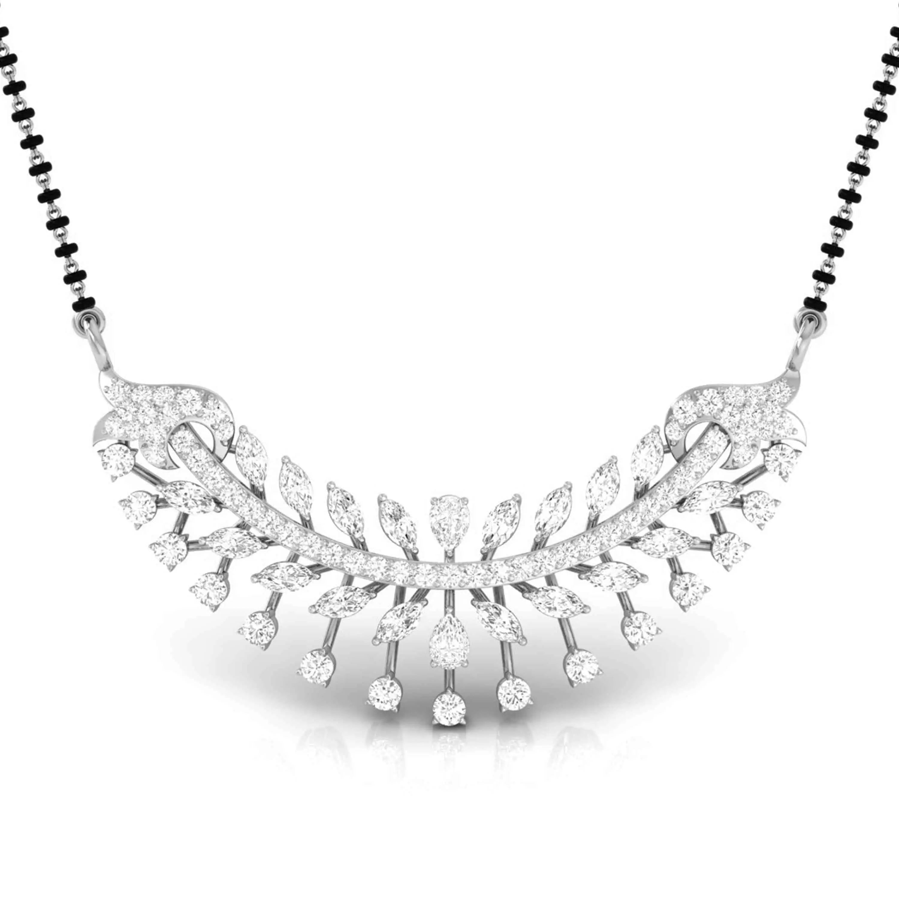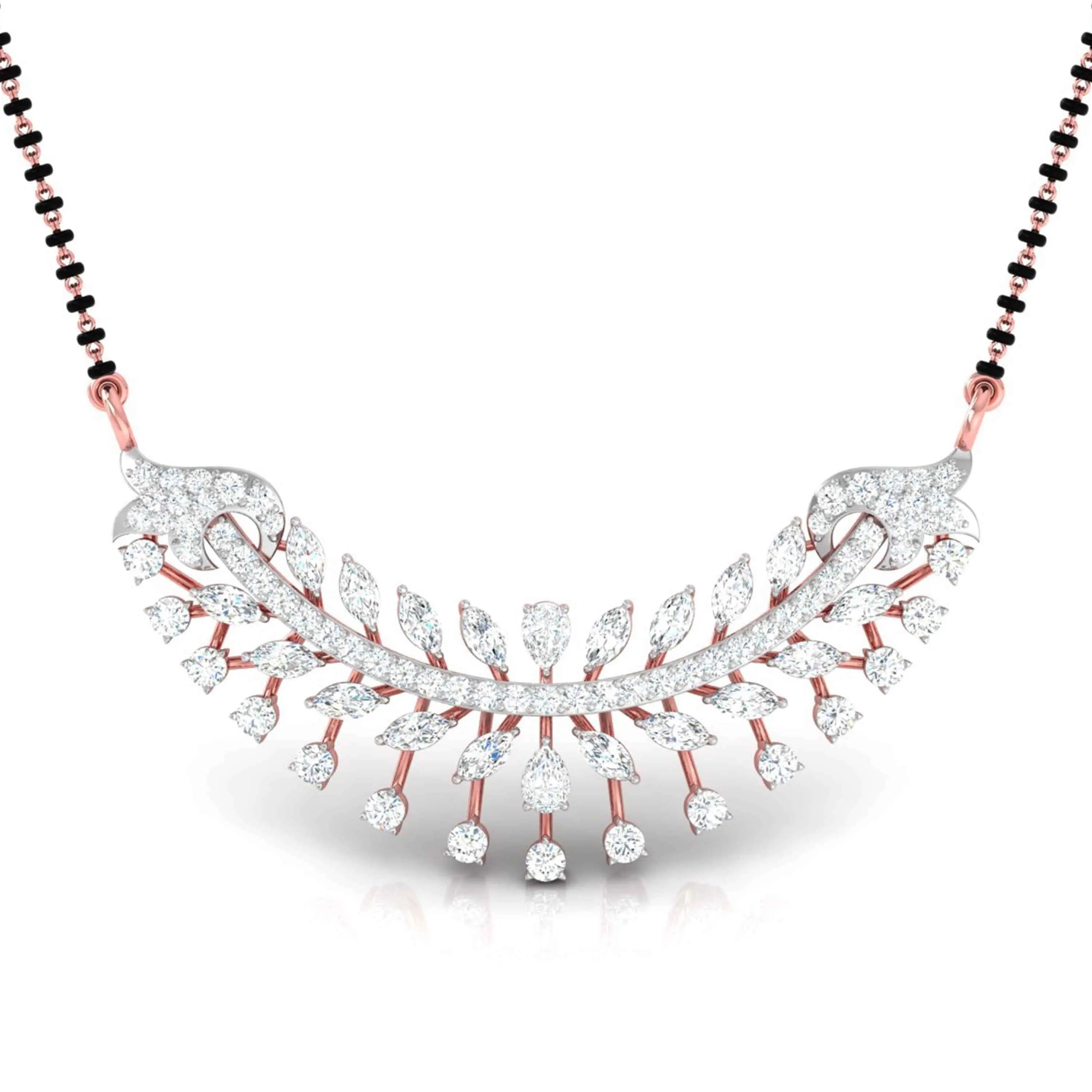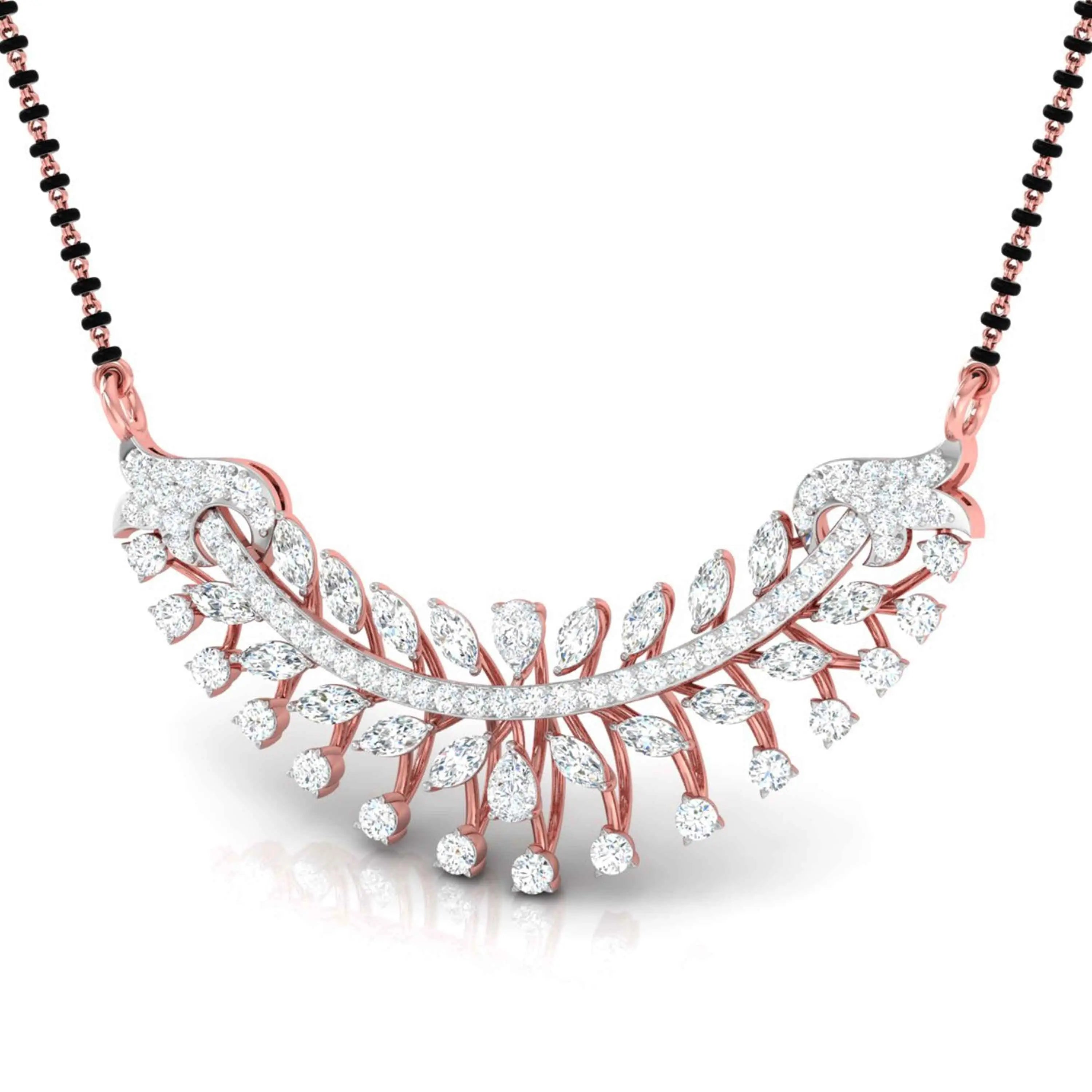 The Fancy & Round Diamond Leaf Mangalsutra showcases the brilliance of lab grown diamonds in a refined design that symbolizes love and tradition. Its elegant leaf motif and sparkling round diamonds create a sophisticated accessory that complements any attire, offering both ethical beauty and timeless charm. Perfect for celebrating meaningful moments with grace.