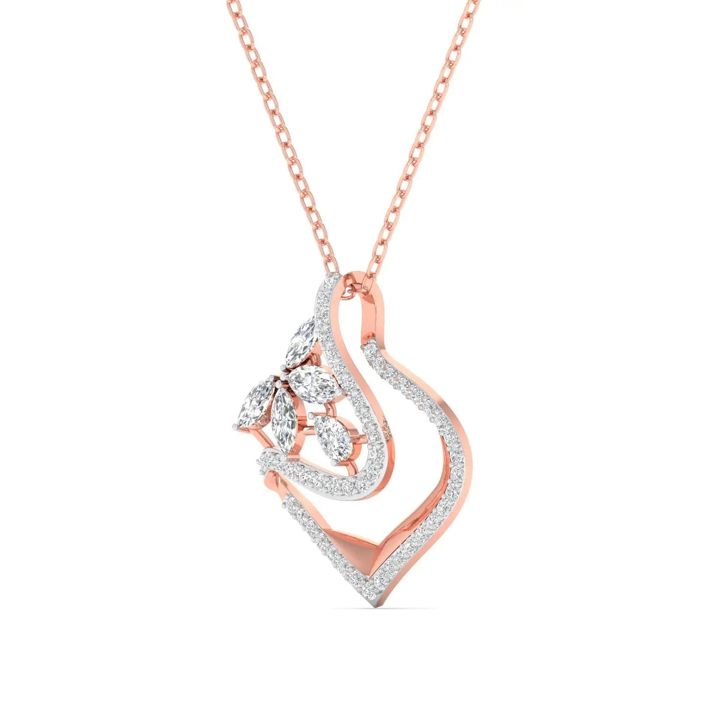 This Diamond Rose Gold Abstract Pendant showcases a brilliant lab grown diamond set in a sleek, modern design. Crafted in warm rose gold, it offers a sophisticated blend of contemporary style and ethical luxury. Perfect for adding a subtle yet striking accent to your ensemble, this pendant embodies elegance and conscious beauty.