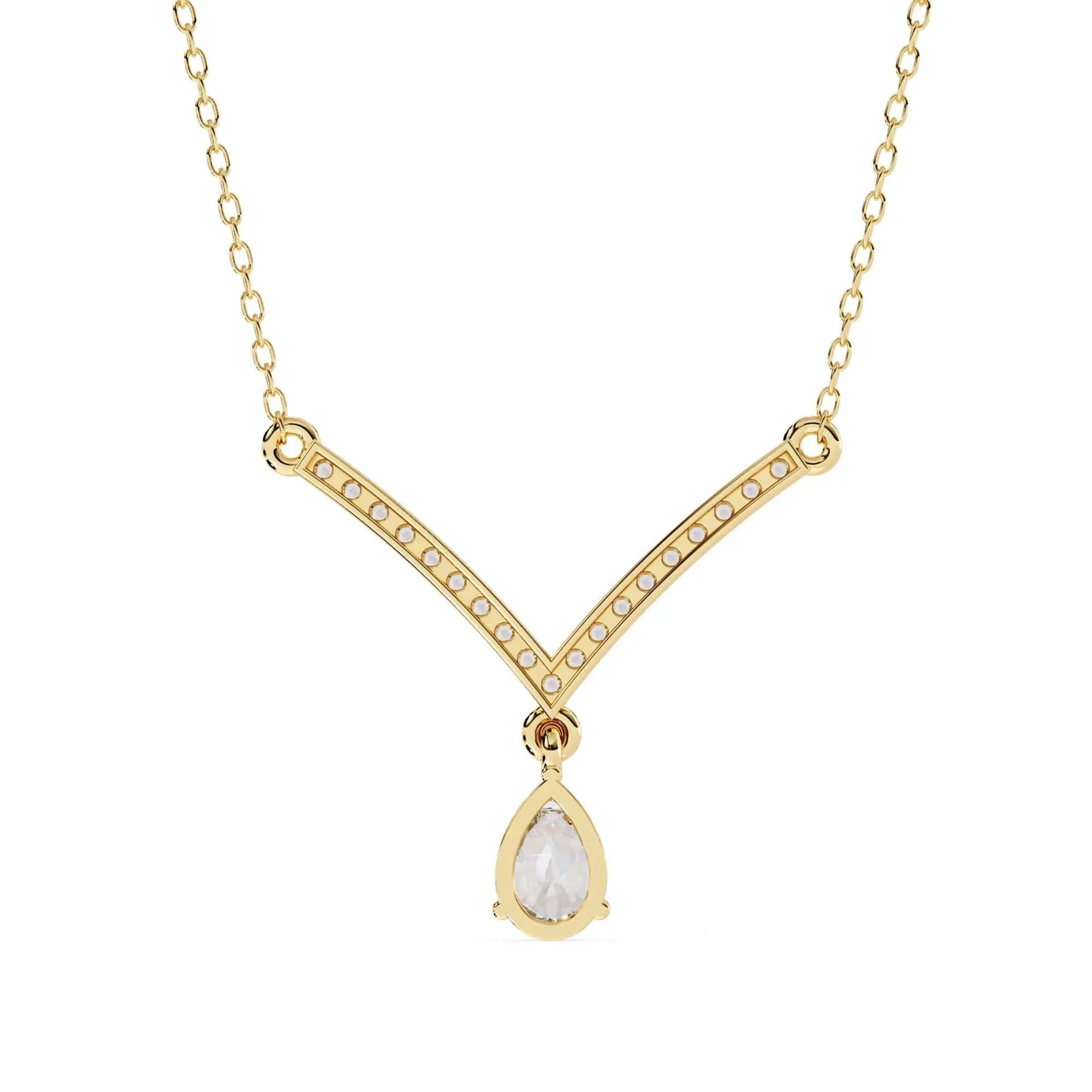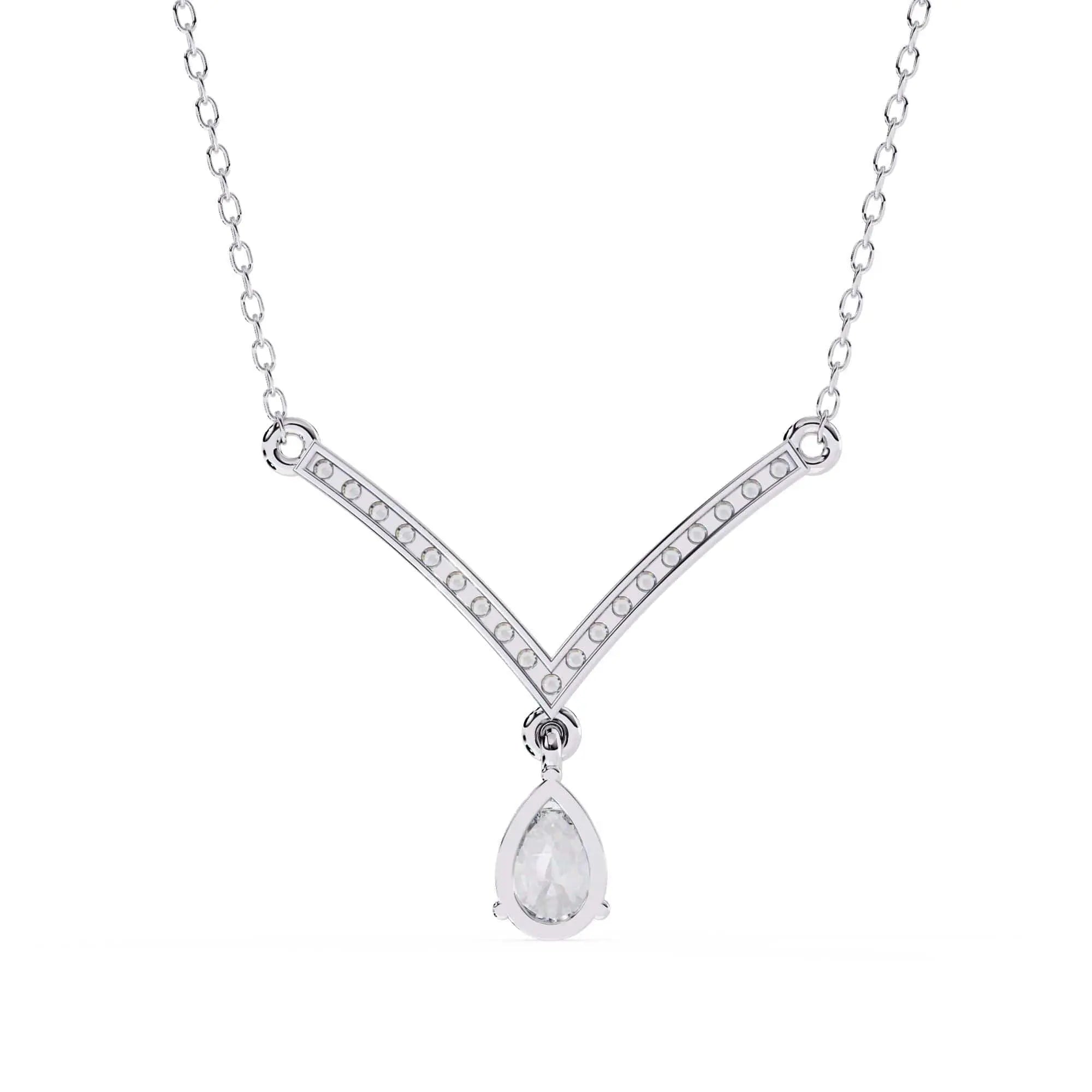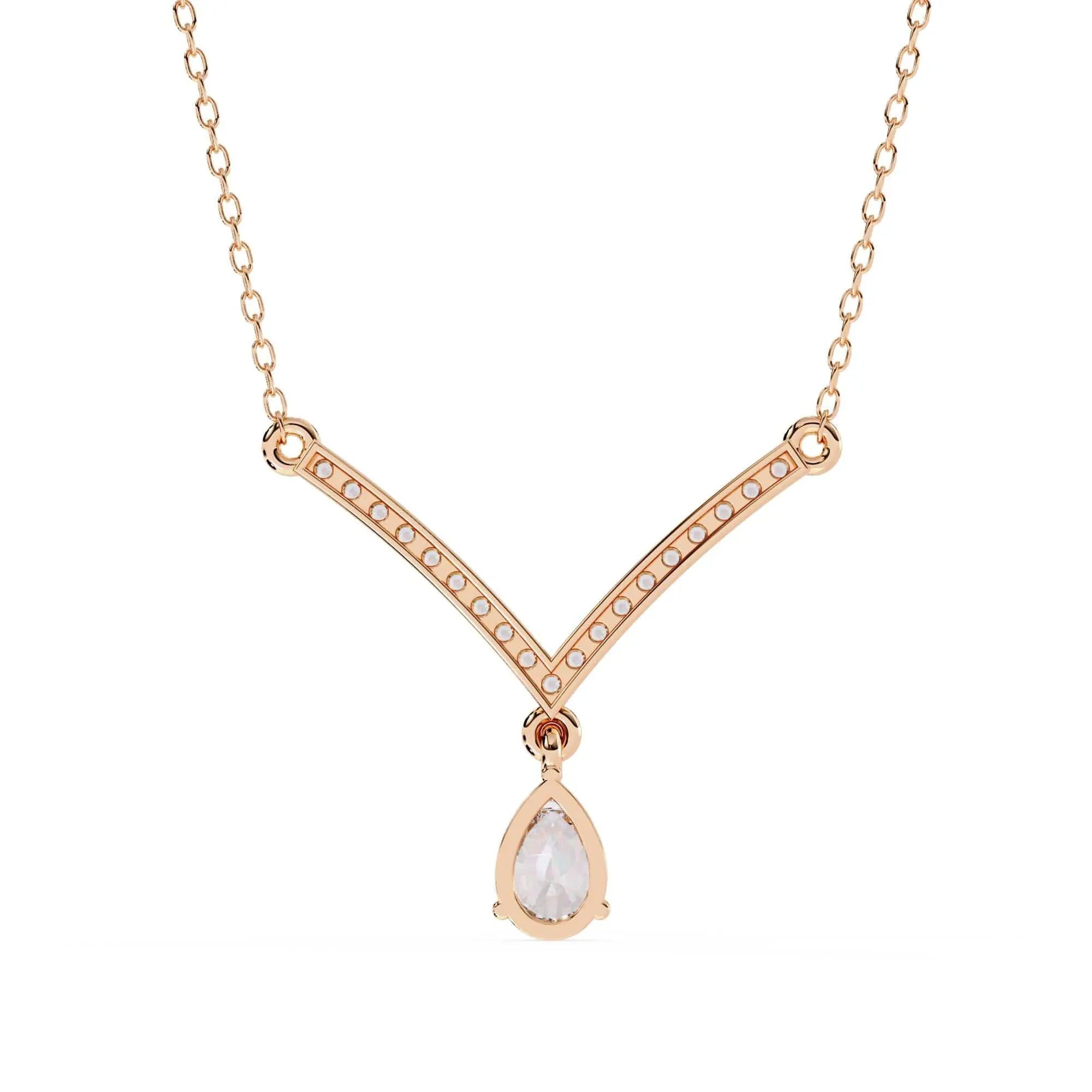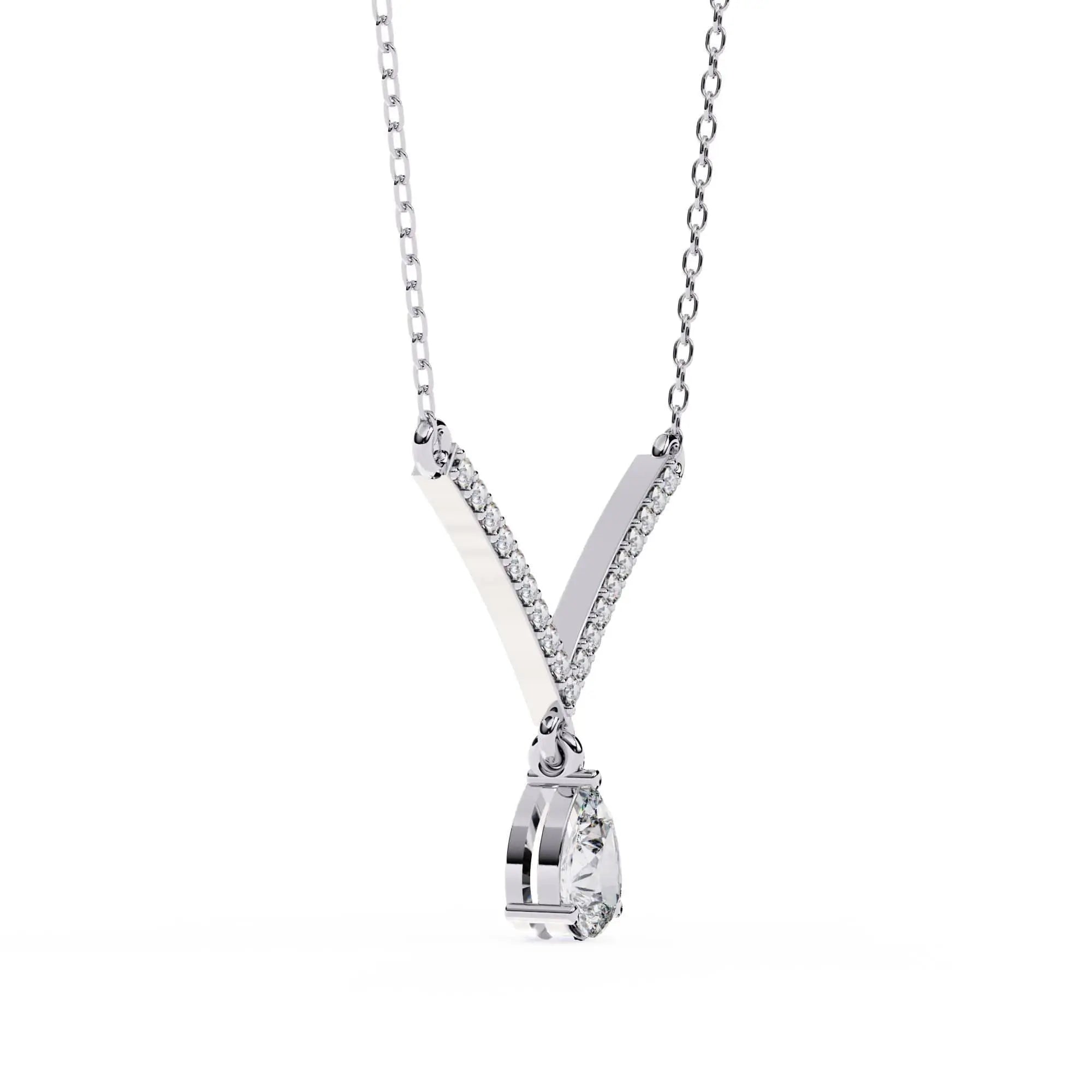 This Diamond V-Pendant Necklace showcases a brilliant lab grown diamond set in a sleek V-shaped design. Combining modern elegance with ethical craftsmanship, it offers a refined accessory that enhances any outfit with subtle sophistication and sustainable luxury.
