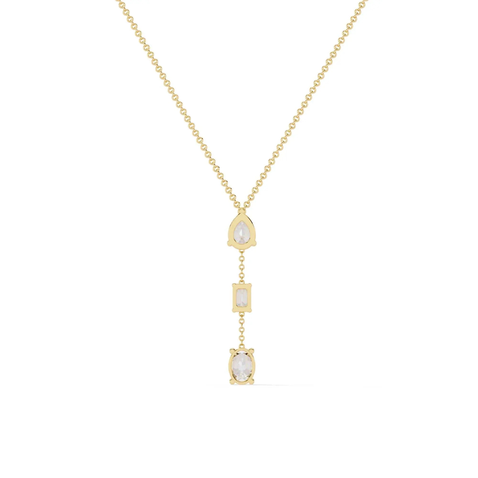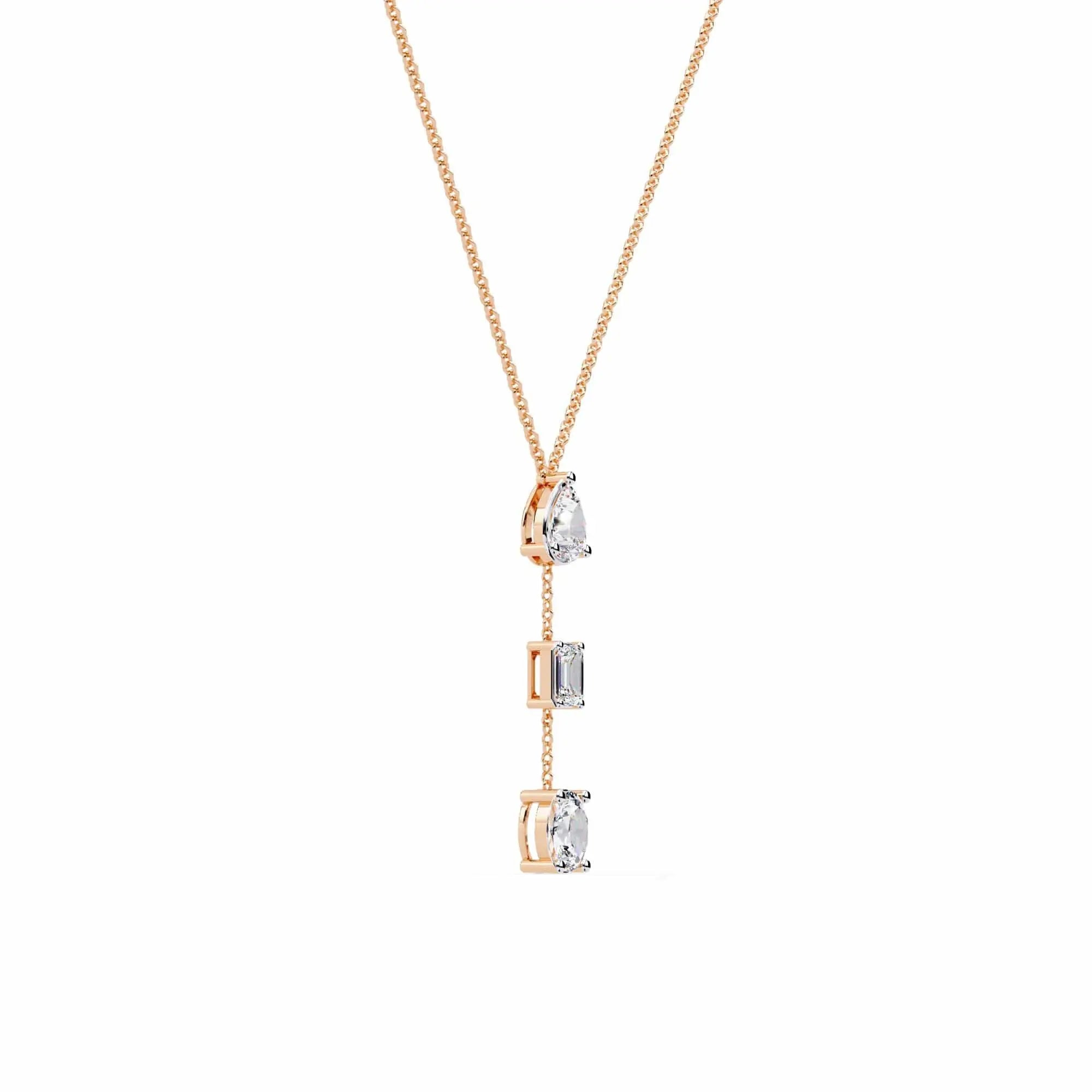 This exquisite Y-necklace showcases a harmonious blend of pear, baguette, and oval lab grown diamonds, each carefully selected for their clarity and brilliance. Designed to enhance your sophisticated style, it offers a graceful sparkle that elevates any outfit while reflecting a commitment to sustainable luxury.