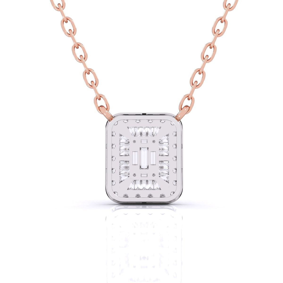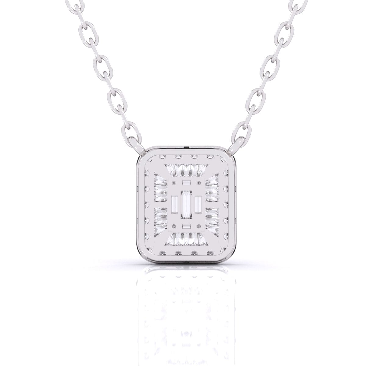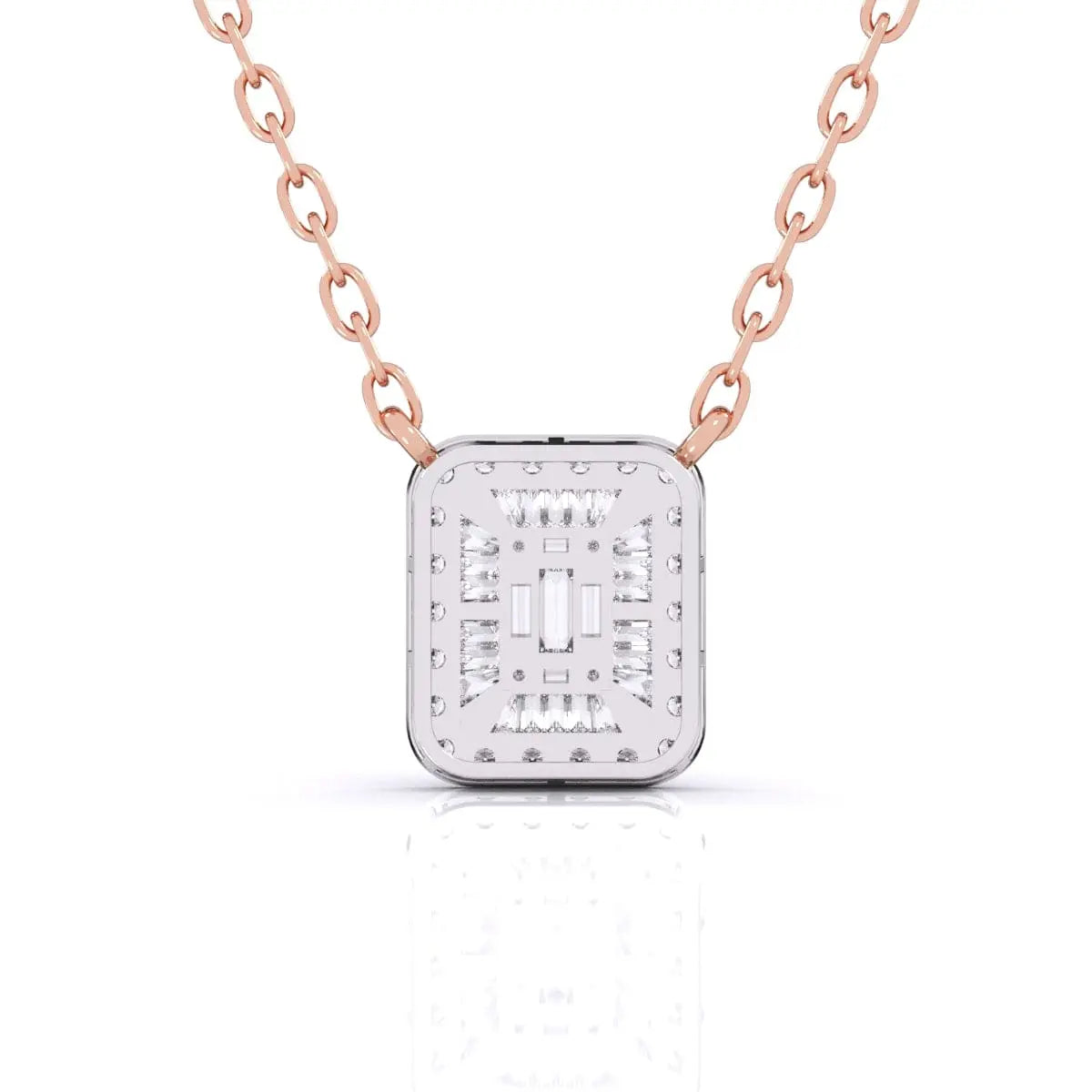 This Baguette Diamond Pave Setting Pendant showcases the refined brilliance of lab grown diamonds, expertly arranged in a sleek baguette design with a delicate pave setting. Combining sustainable craftsmanship with timeless elegance, it offers a sophisticated sparkle that enhances any outfit with understated luxury. Perfect for those who value both style and ethical beauty.