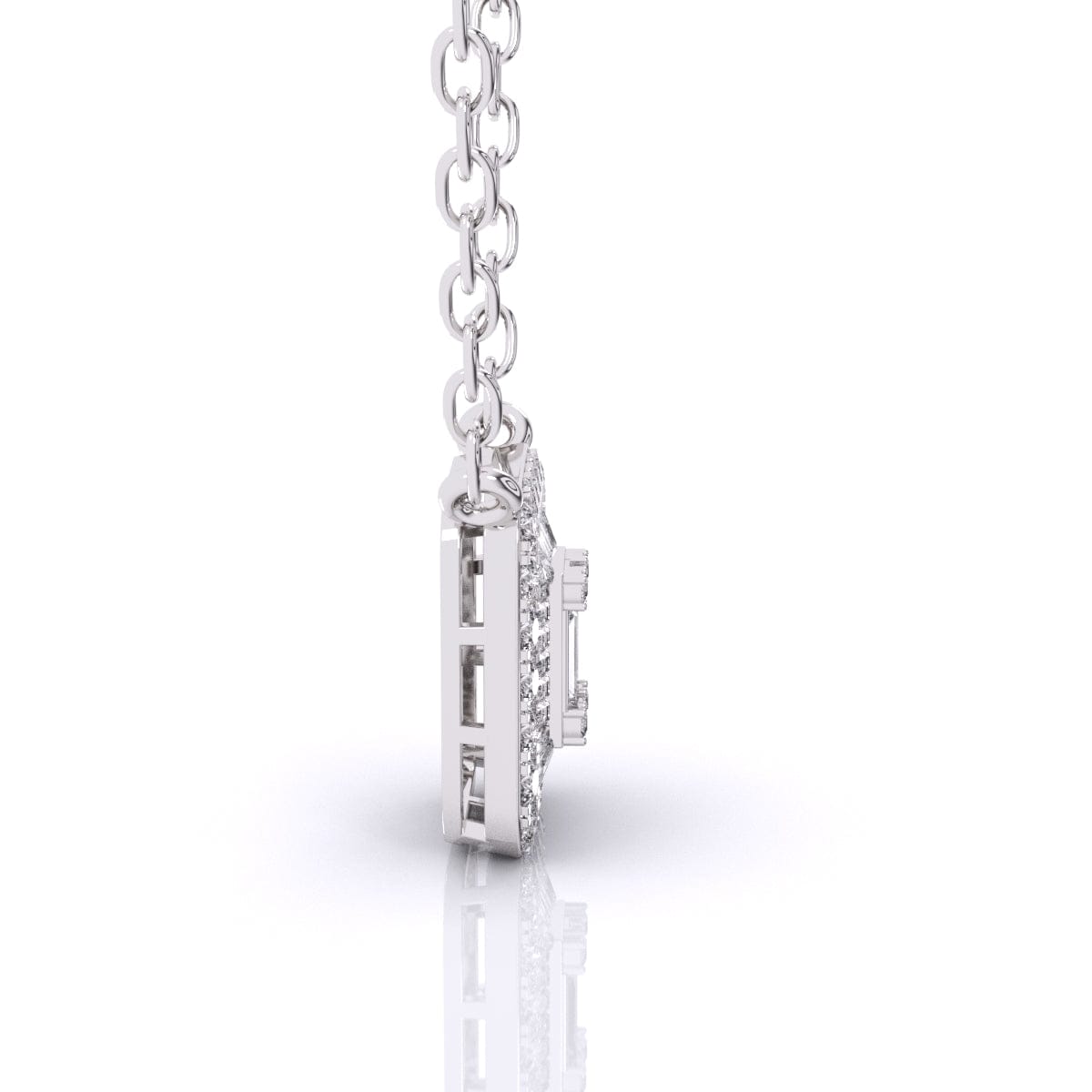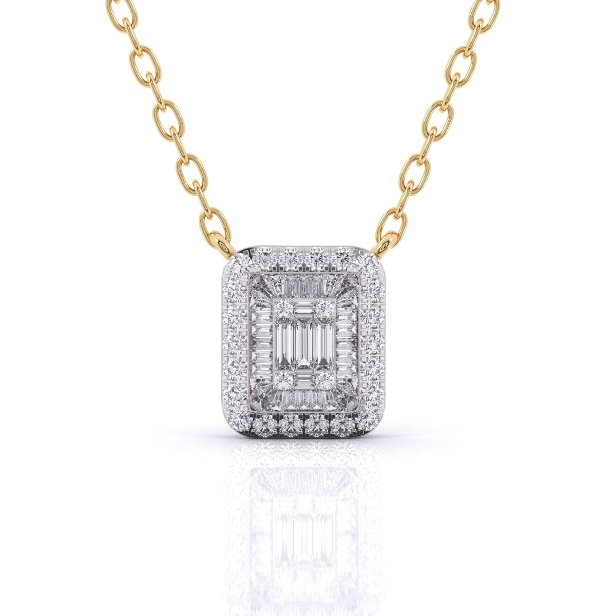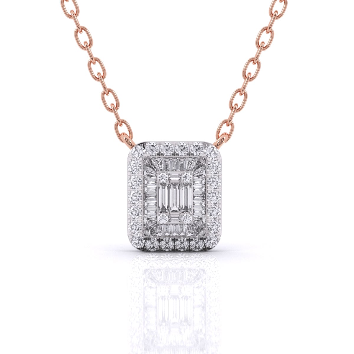 This Baguette Diamond Pave Setting Pendant showcases the refined brilliance of lab grown diamonds, expertly arranged in a sleek baguette design with a delicate pave setting. Combining sustainable craftsmanship with timeless elegance, it offers a sophisticated sparkle that enhances any outfit with understated luxury. Perfect for those who value both style and ethical beauty.