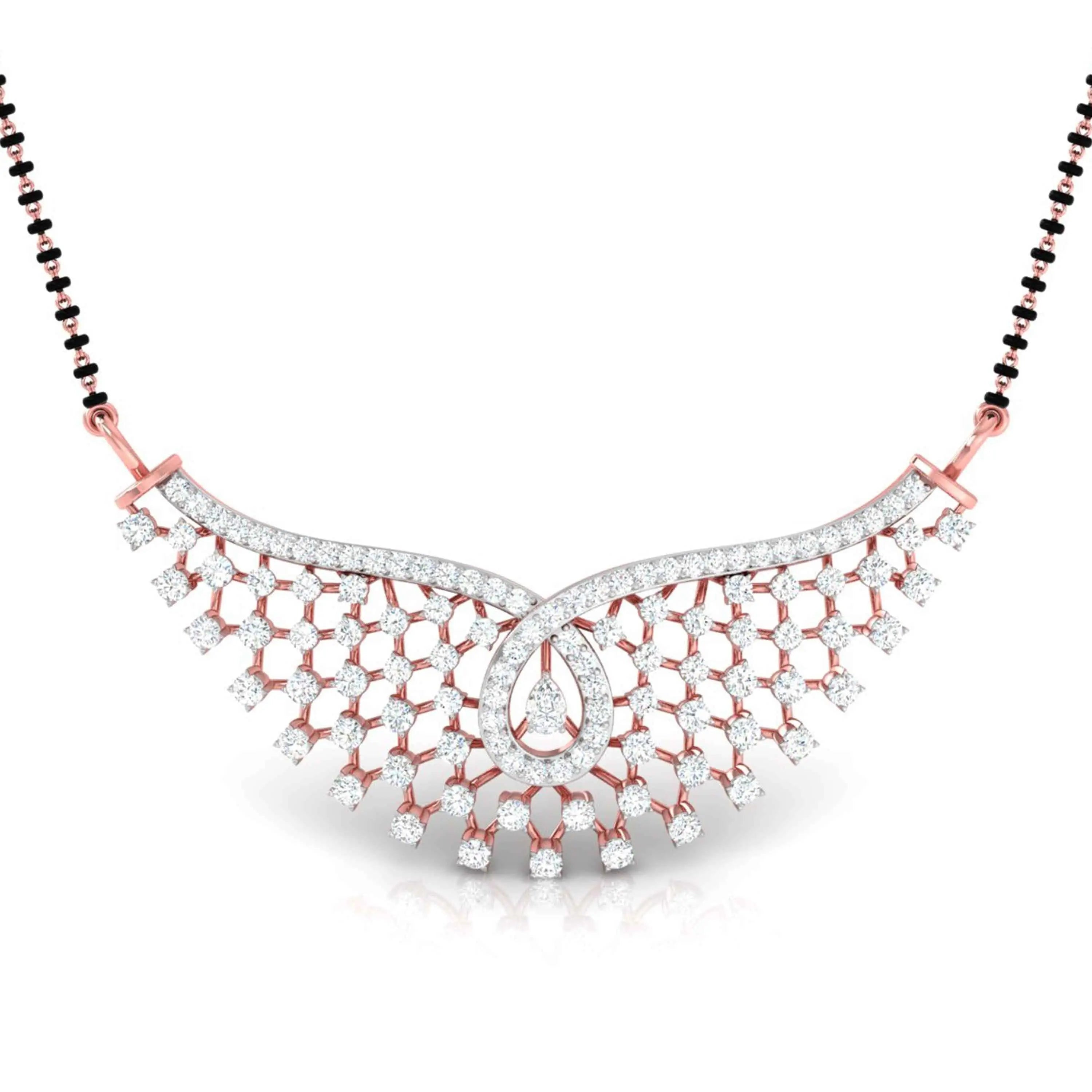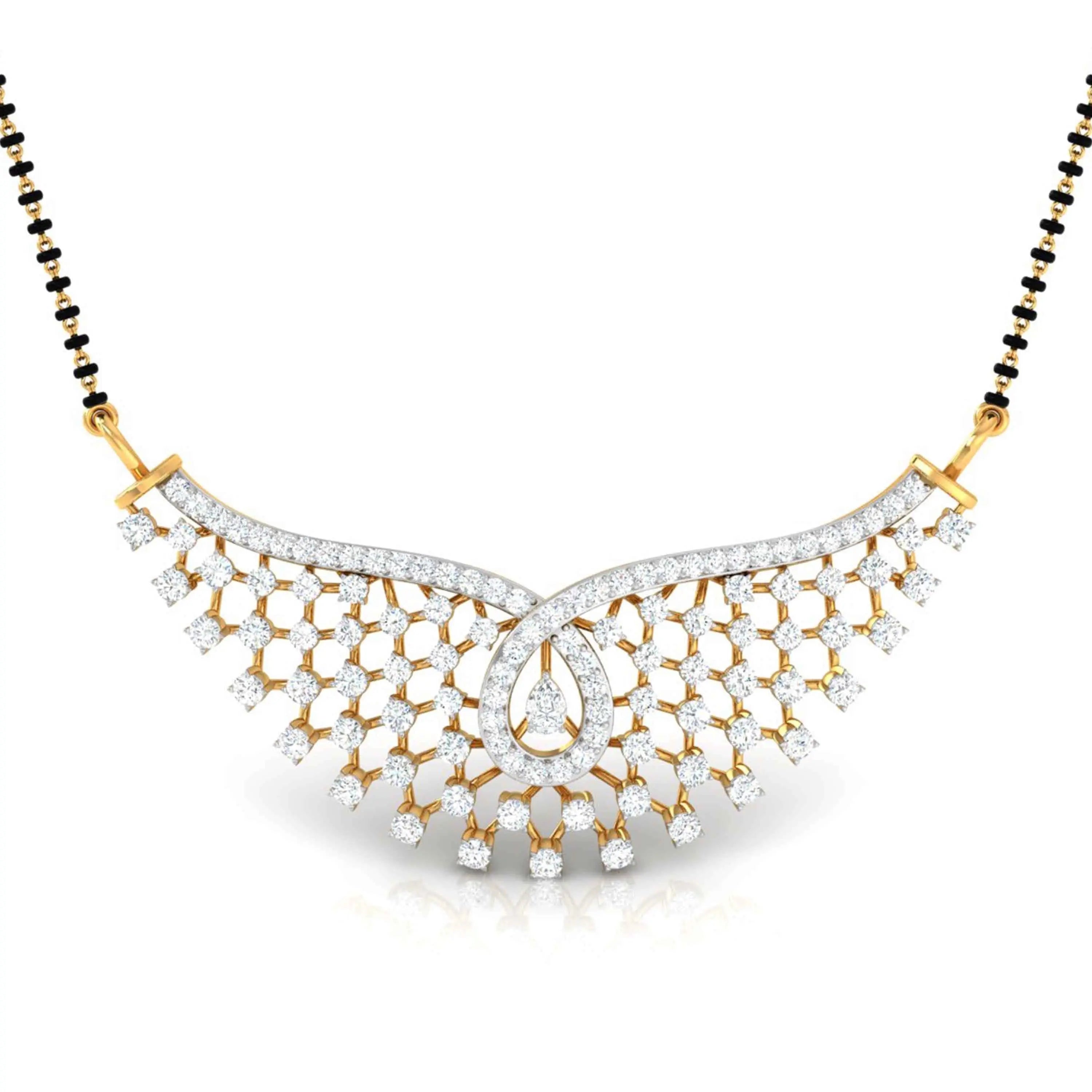 The Diamond Riviera Mangalsutra Necklace showcases stunning lab grown diamonds, combining ethical luxury with timeless tradition. Crafted to symbolize lasting commitment, this sophisticated piece offers a brilliant sparkle that enhances any look, perfect for both everyday elegance and special moments.