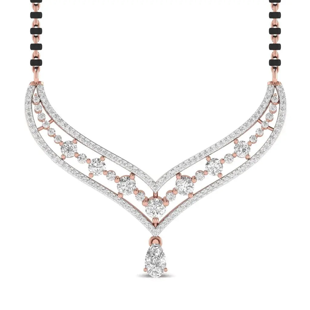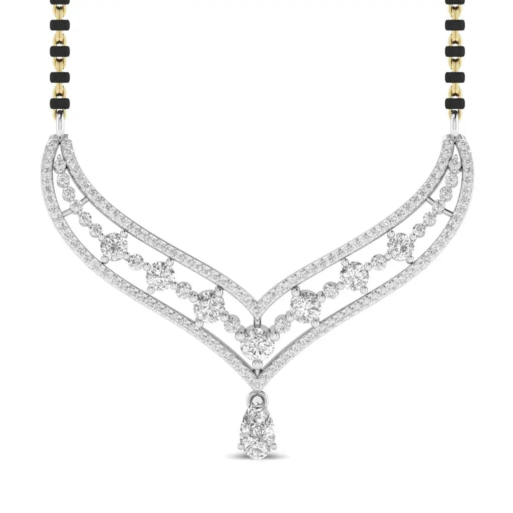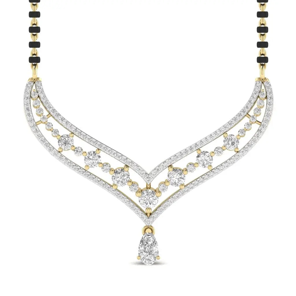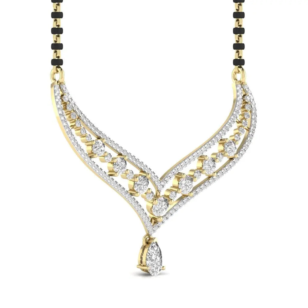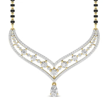 Elevate your traditional elegance with this Fancy Shape Pear Diamond Mangal Sutra Pendant, featuring a lab grown diamond that combines ethical craftsmanship with timeless beauty. Its unique pear shape adds a refined touch, making it a perfect symbol of love and commitment. Designed to complement any attire, this pendant offers lasting brilliance and sophistication for your special moments.