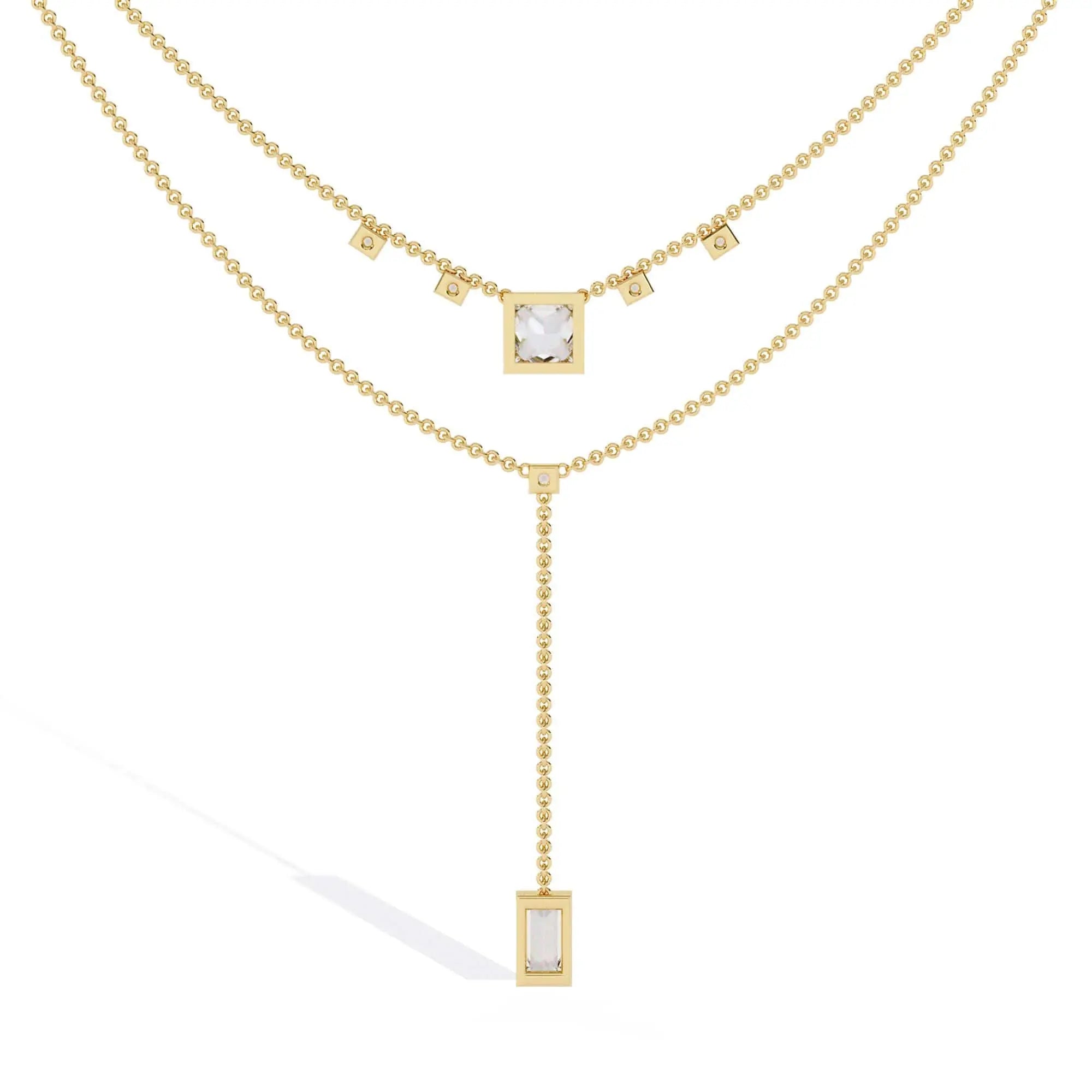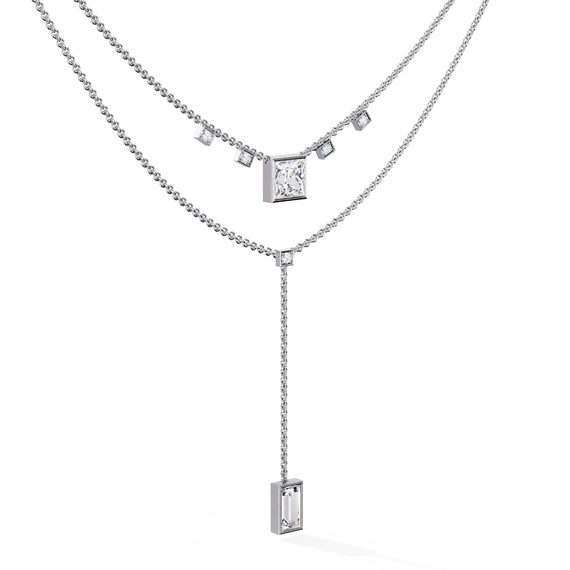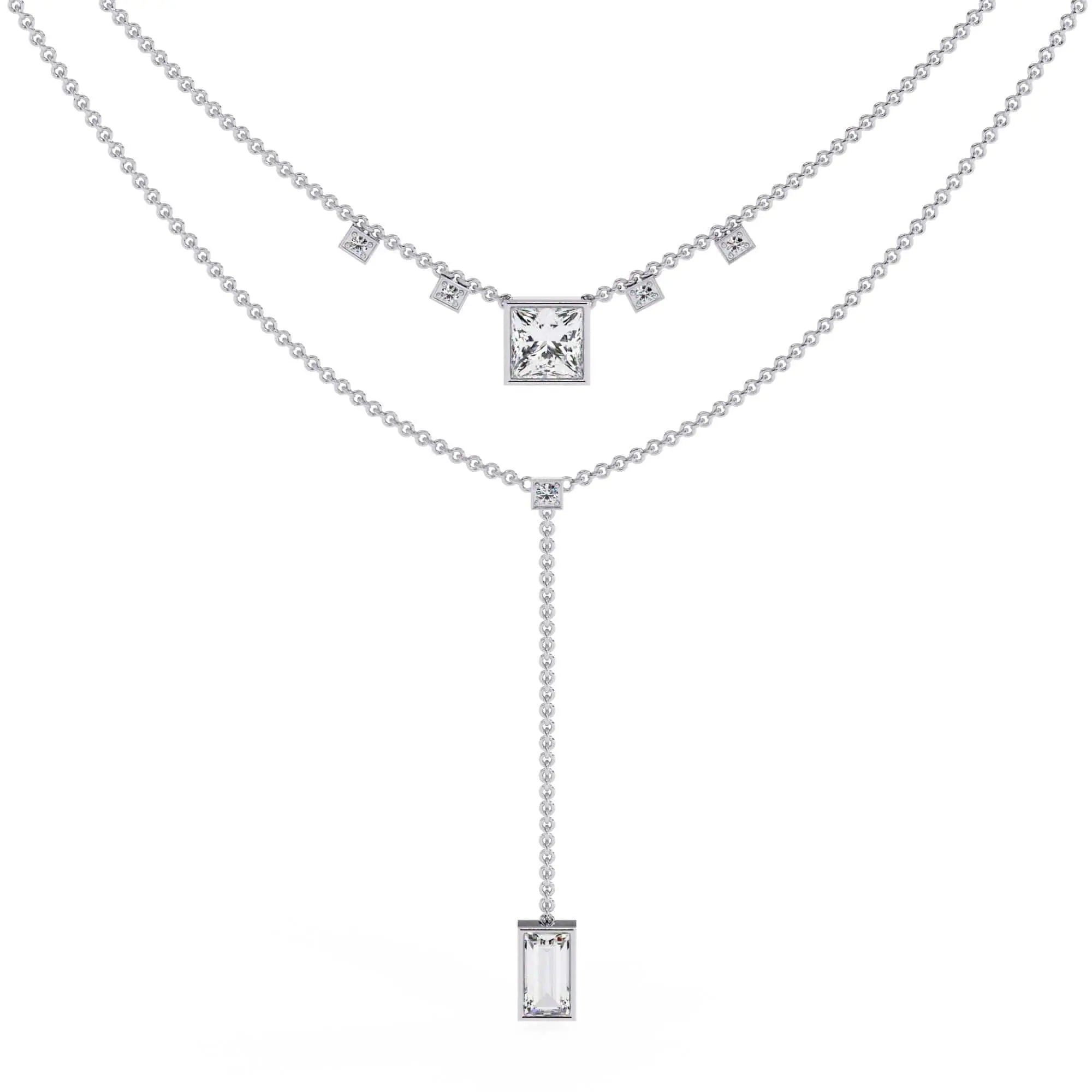 This elegant necklace features lab grown princess and baguette diamond accents, offering a brilliant and refined sparkle. Designed with sophistication in mind, it blends ethical craftsmanship with timeless style, making it an ideal accessory for any occasion.